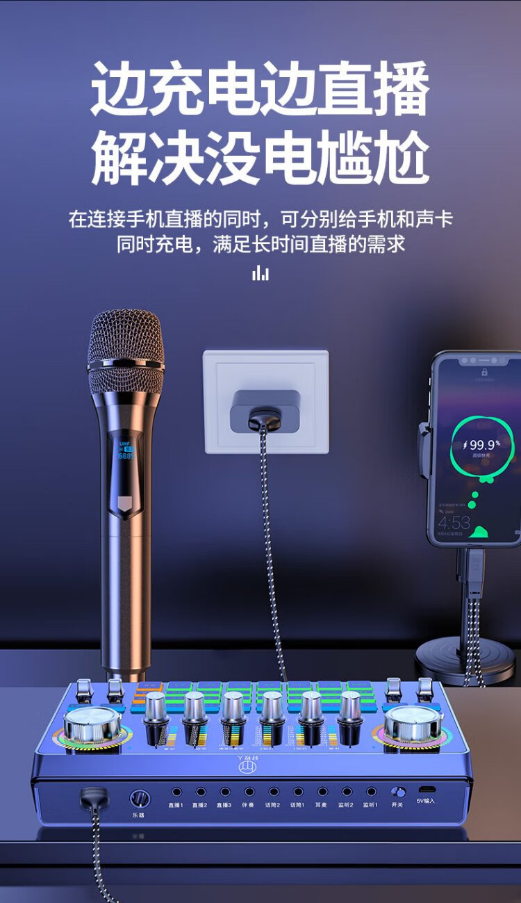 Good Shepherd live sound card equipment full set wireless monitoring Bluetooth headset microphone outdoor Douyin Internet celebrity anchor singing artifact recording karaoke microphone mobile phone special computer