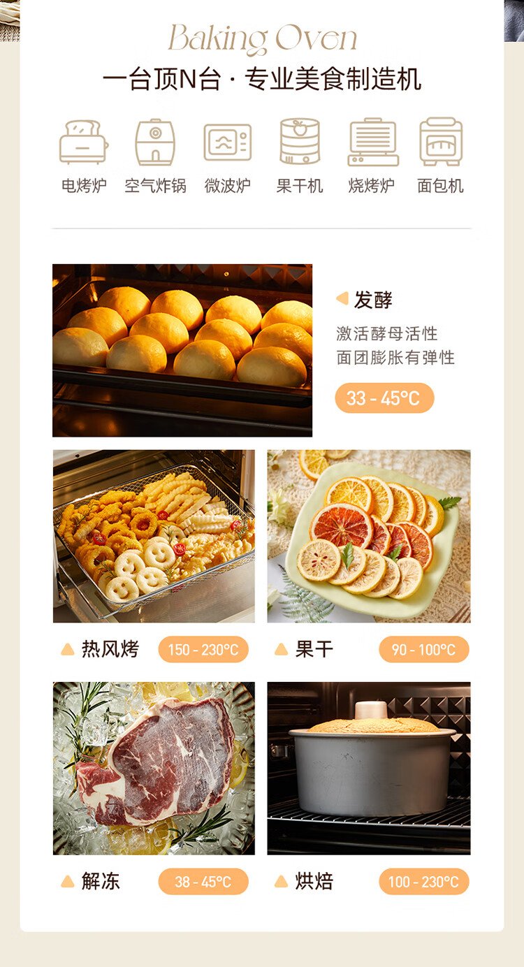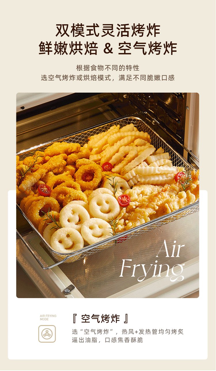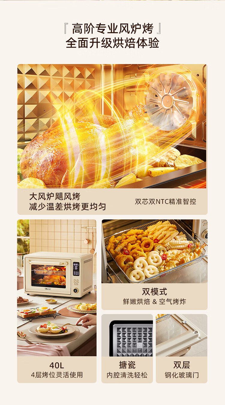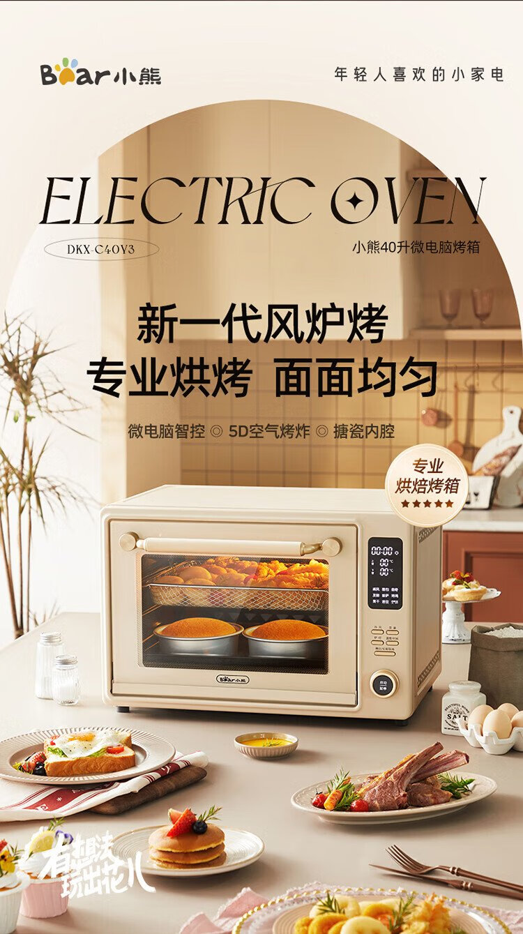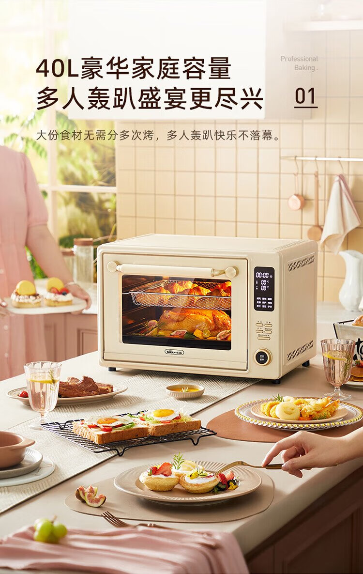 Bear household multifunctional electric oven 40L large capacity independent temperature control upgraded enamel liner smart menu hot air circulation grilling and frying all in one DKX-C40Y3