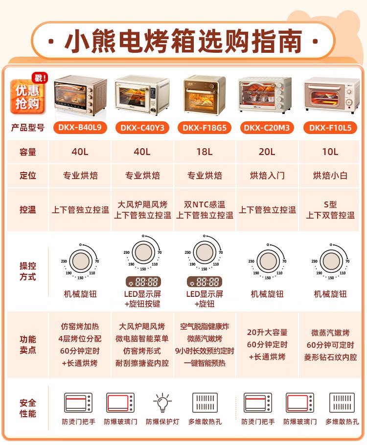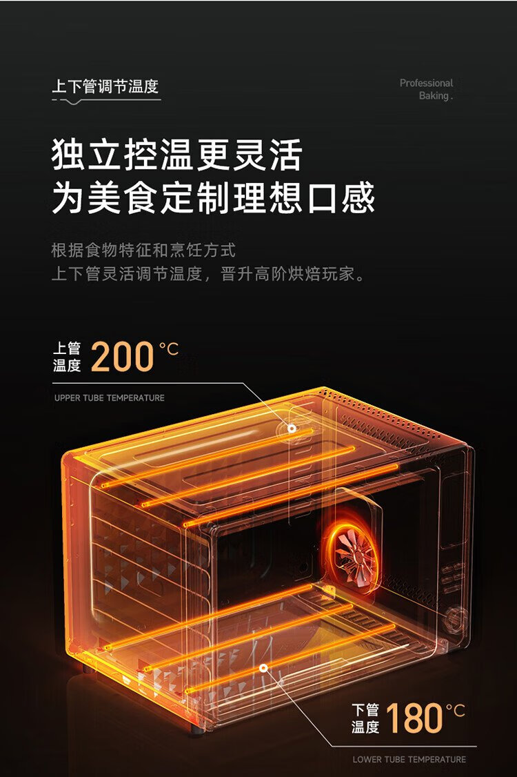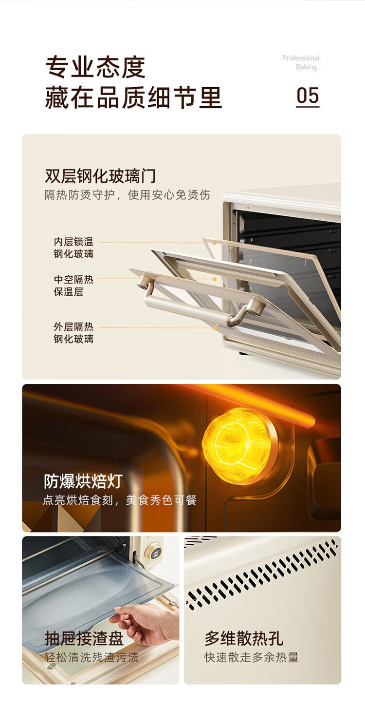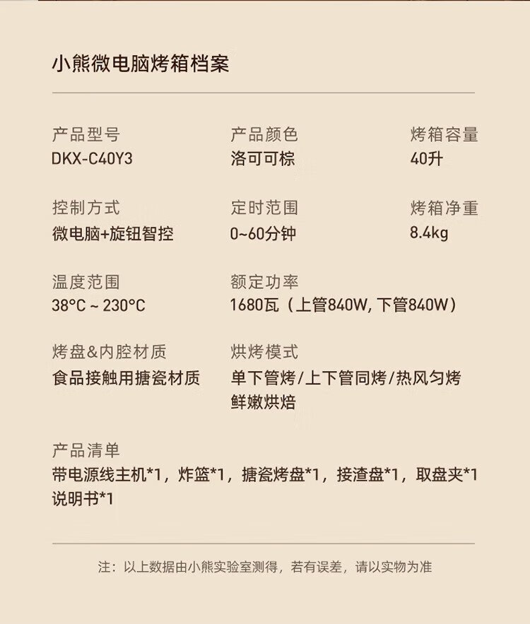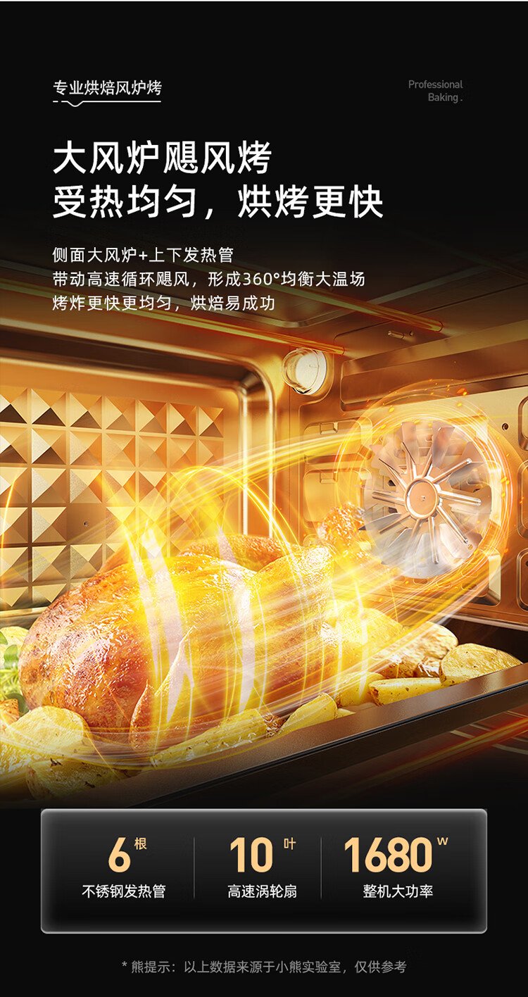 Bear household multifunctional electric oven 40L large capacity independent temperature control upgraded enamel liner smart menu hot air circulation grilling and frying all in one DKX-C40Y3