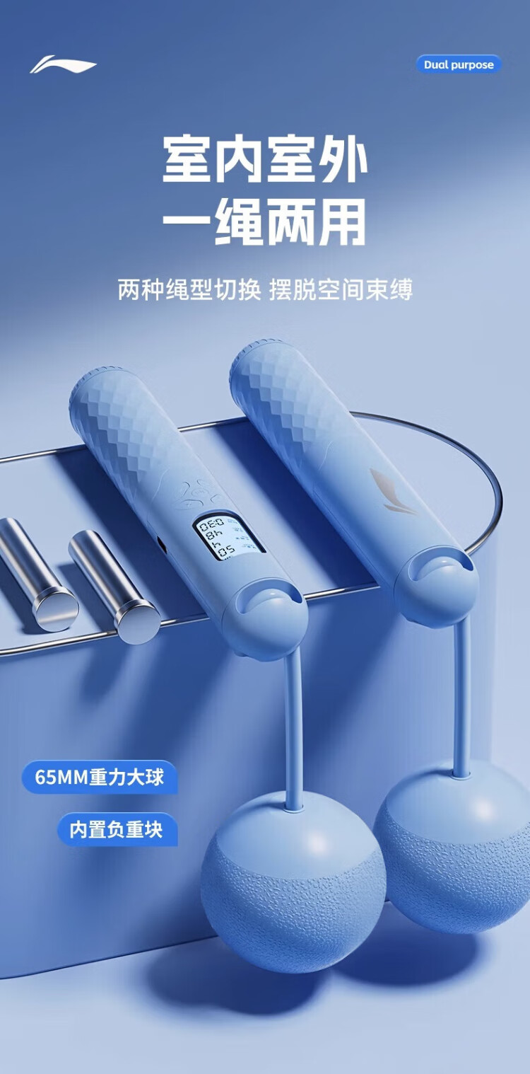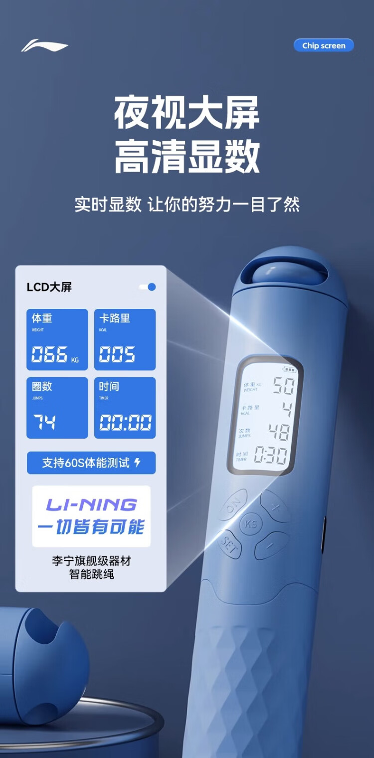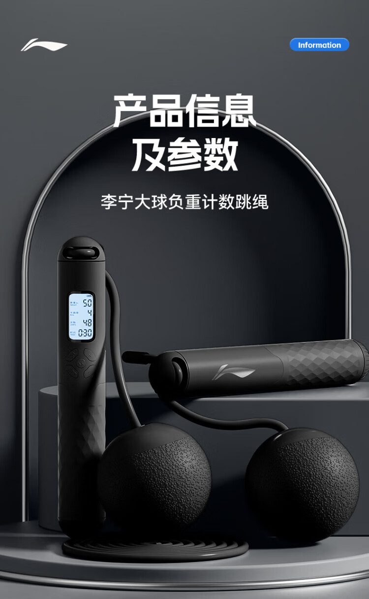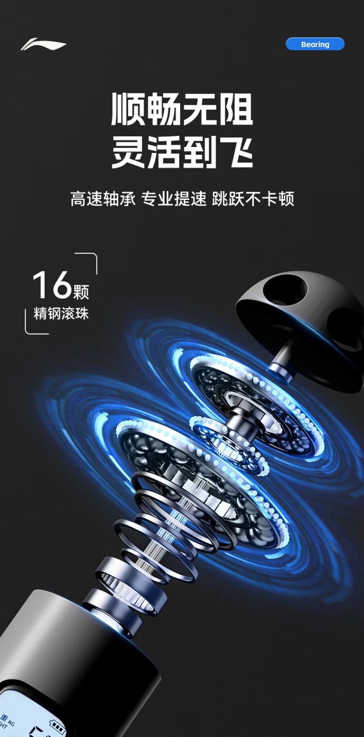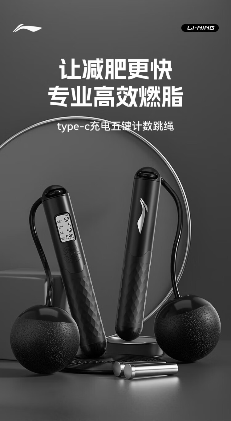 Li Ning (LI-NING) Seilloses Springseil, spezielles Fitnessmodell zur Gewichtsreduktion, professionelles Fettverbrennungs-Männerzähl-Elektronik-Big-Ball-Seil mit negativer Schwerkraft