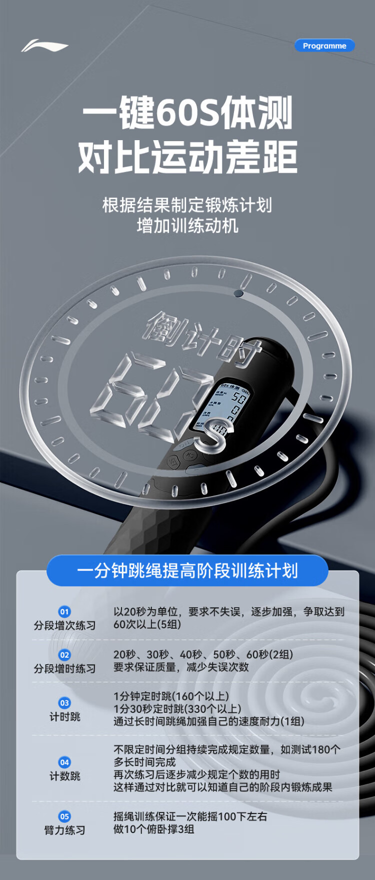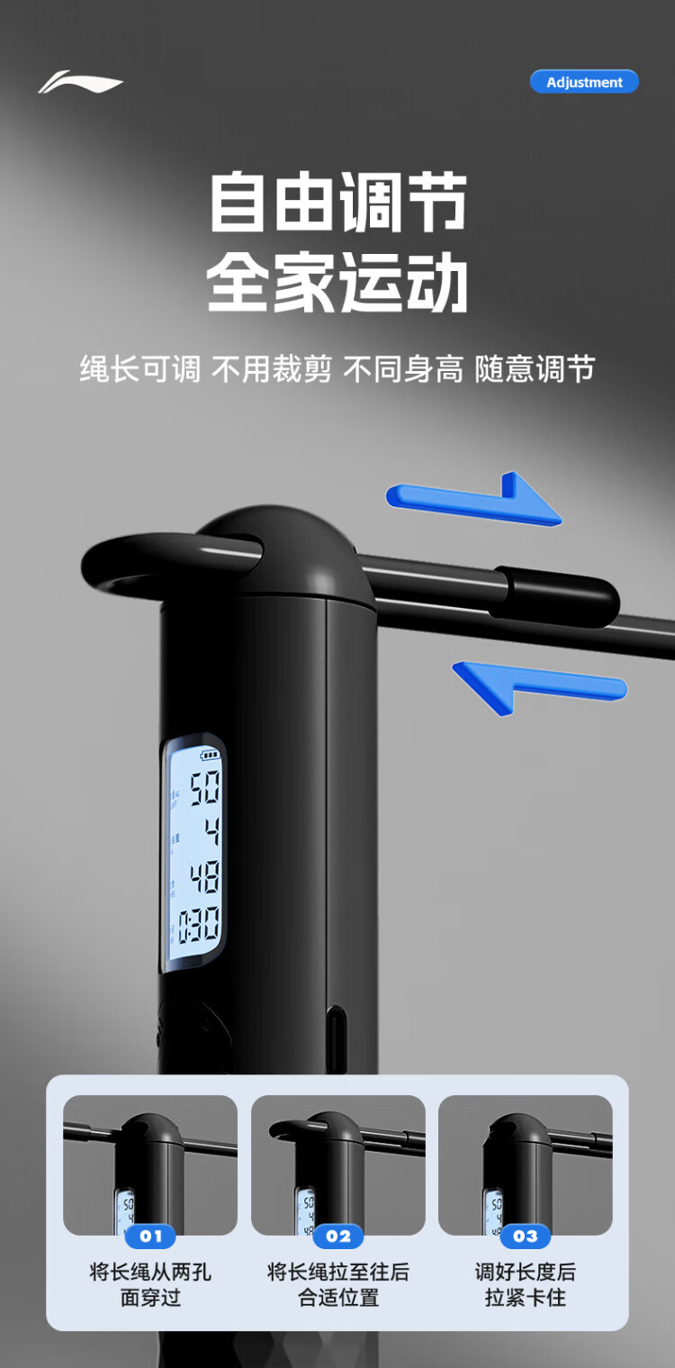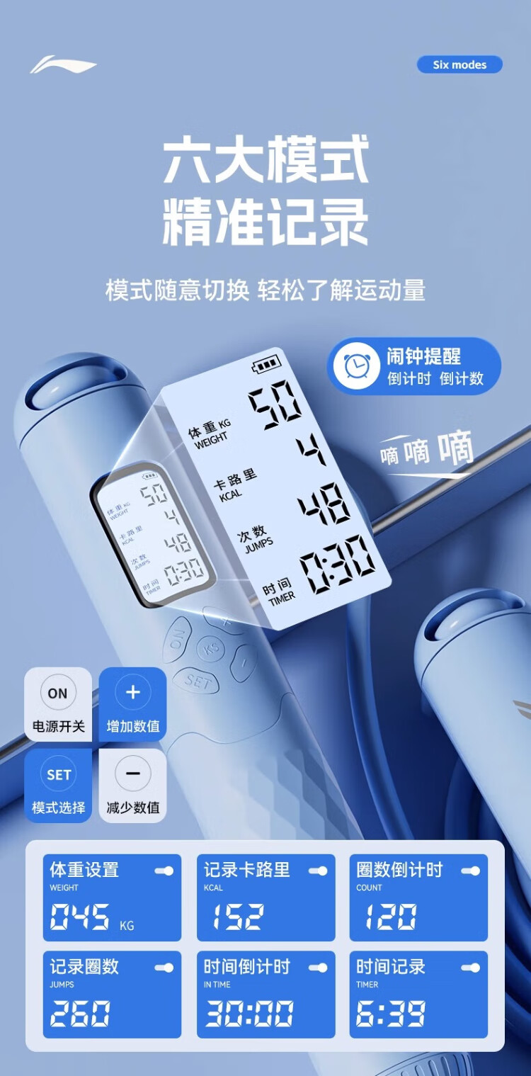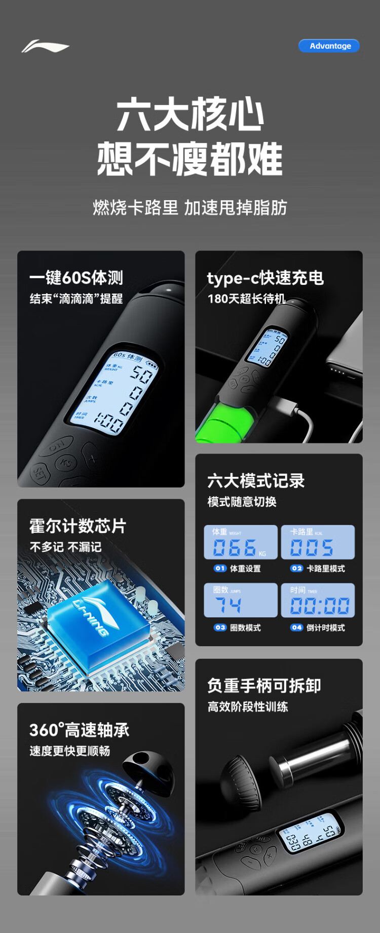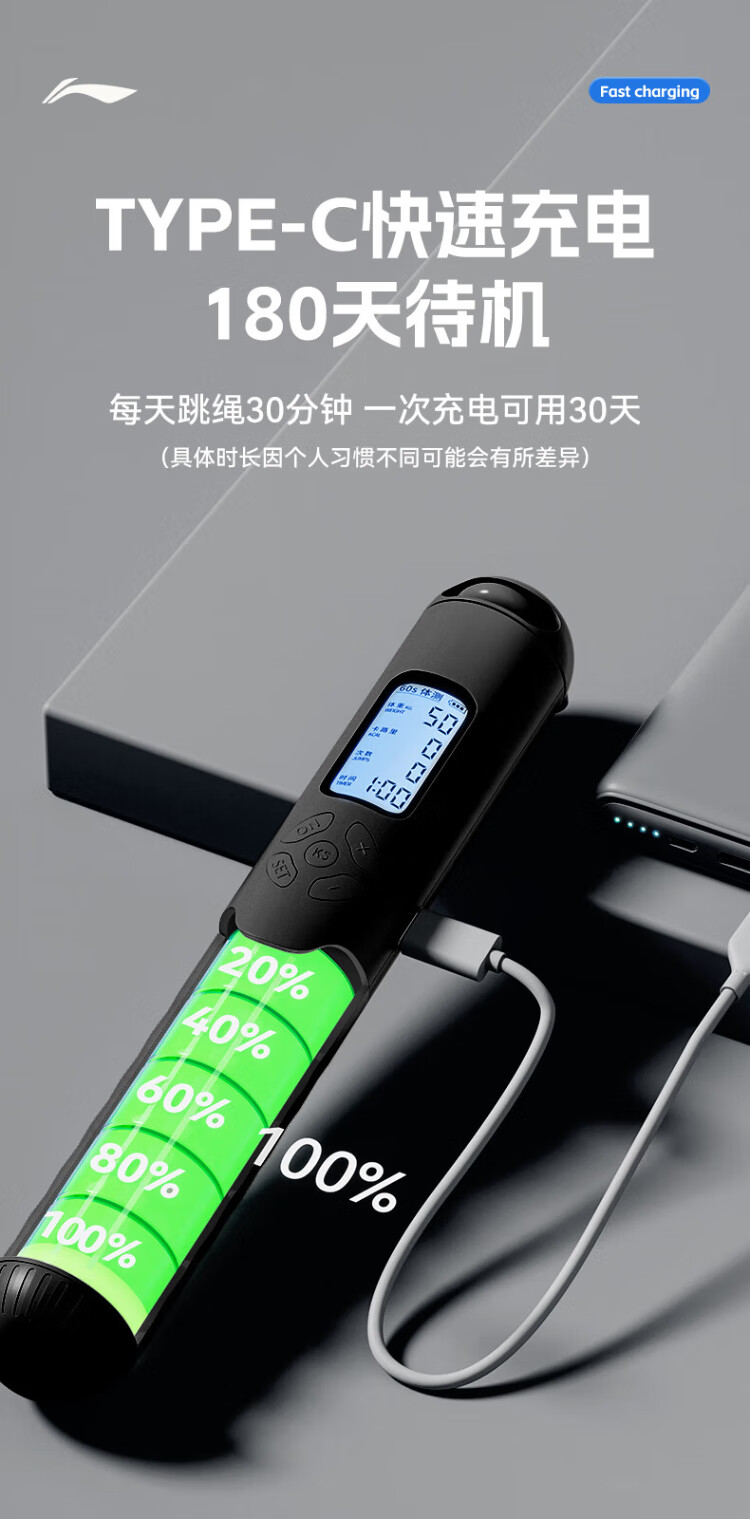 Li Ning (LI-NING) Seilloses Springseil, spezielles Fitnessmodell zur Gewichtsreduktion, professionelles Fettverbrennungs-Männerzähl-Elektronik-Big-Ball-Seil mit negativer Schwerkraft