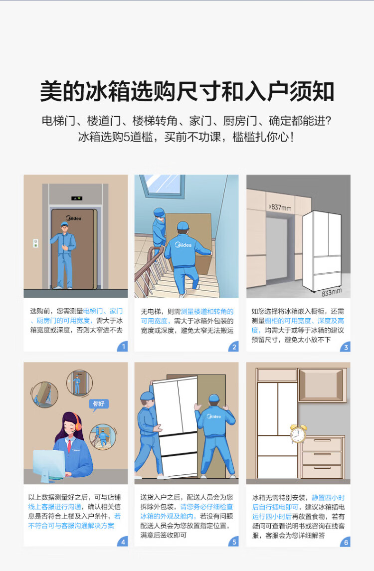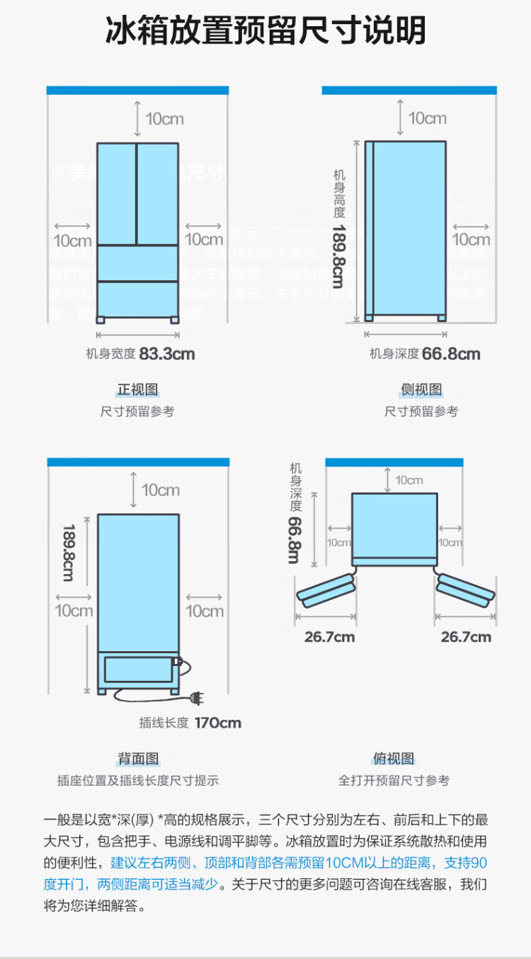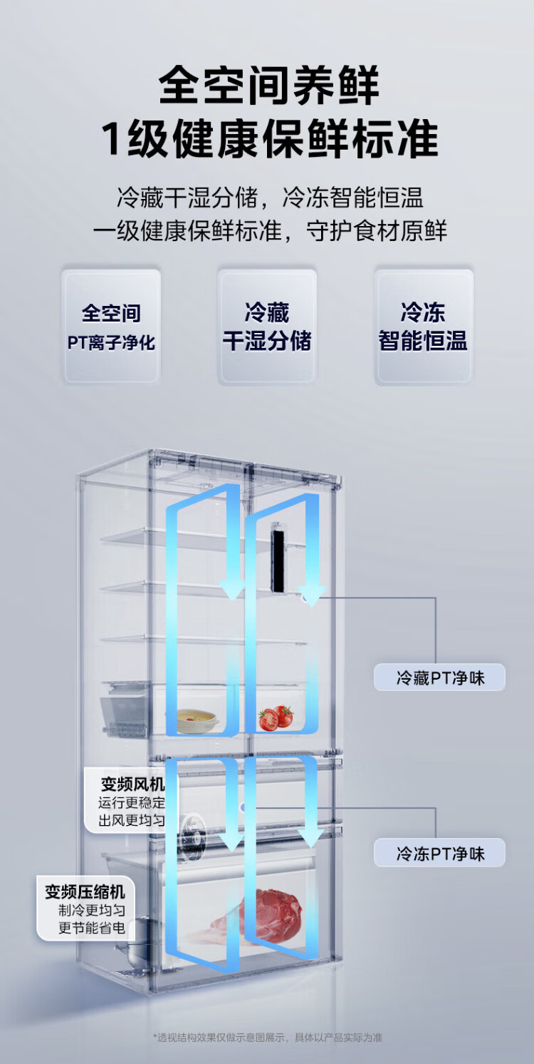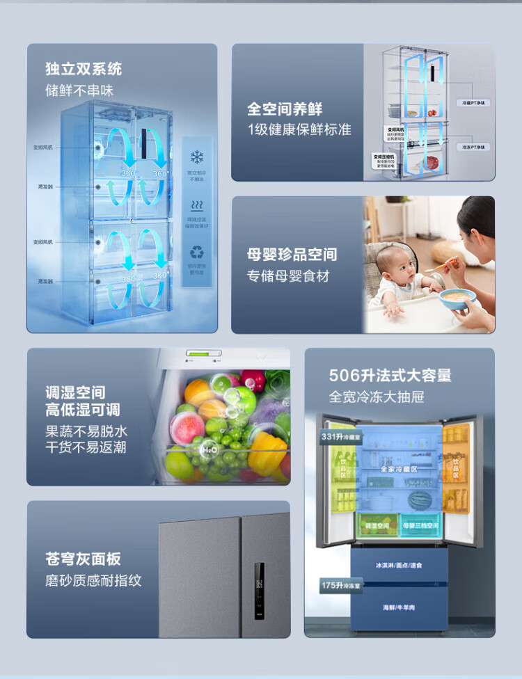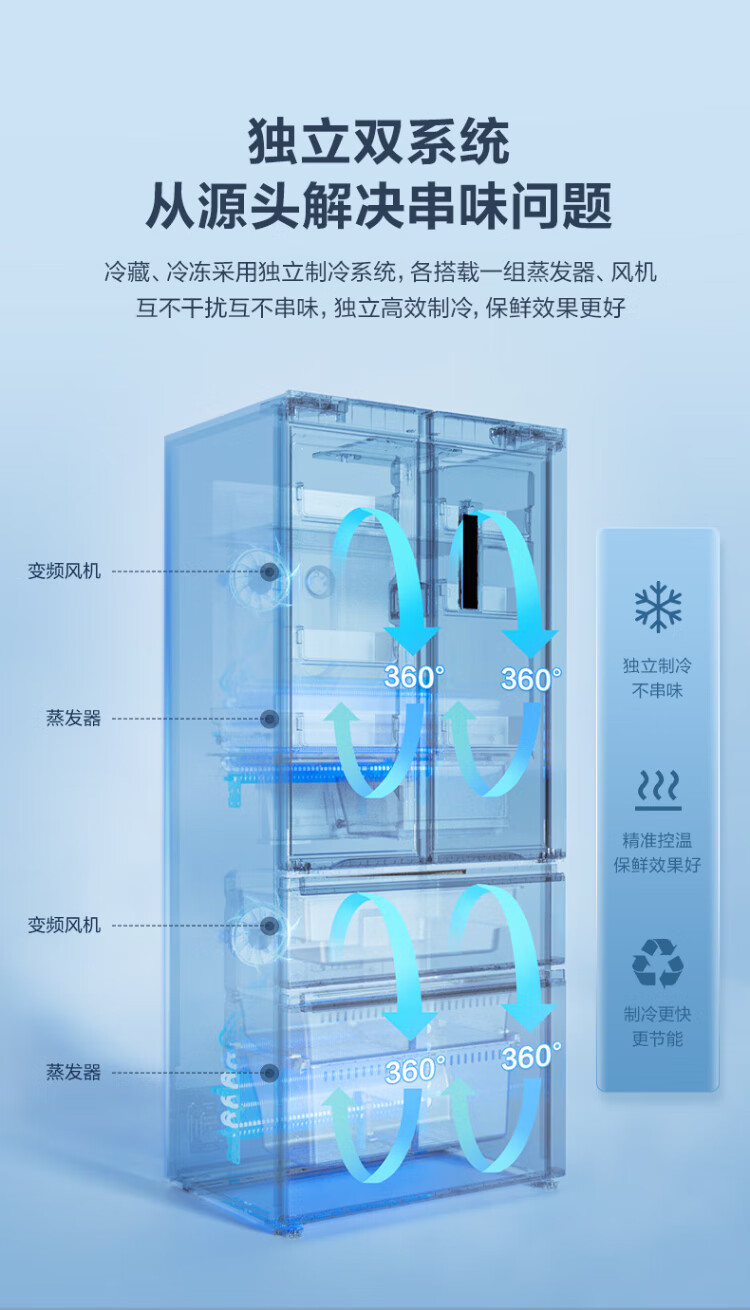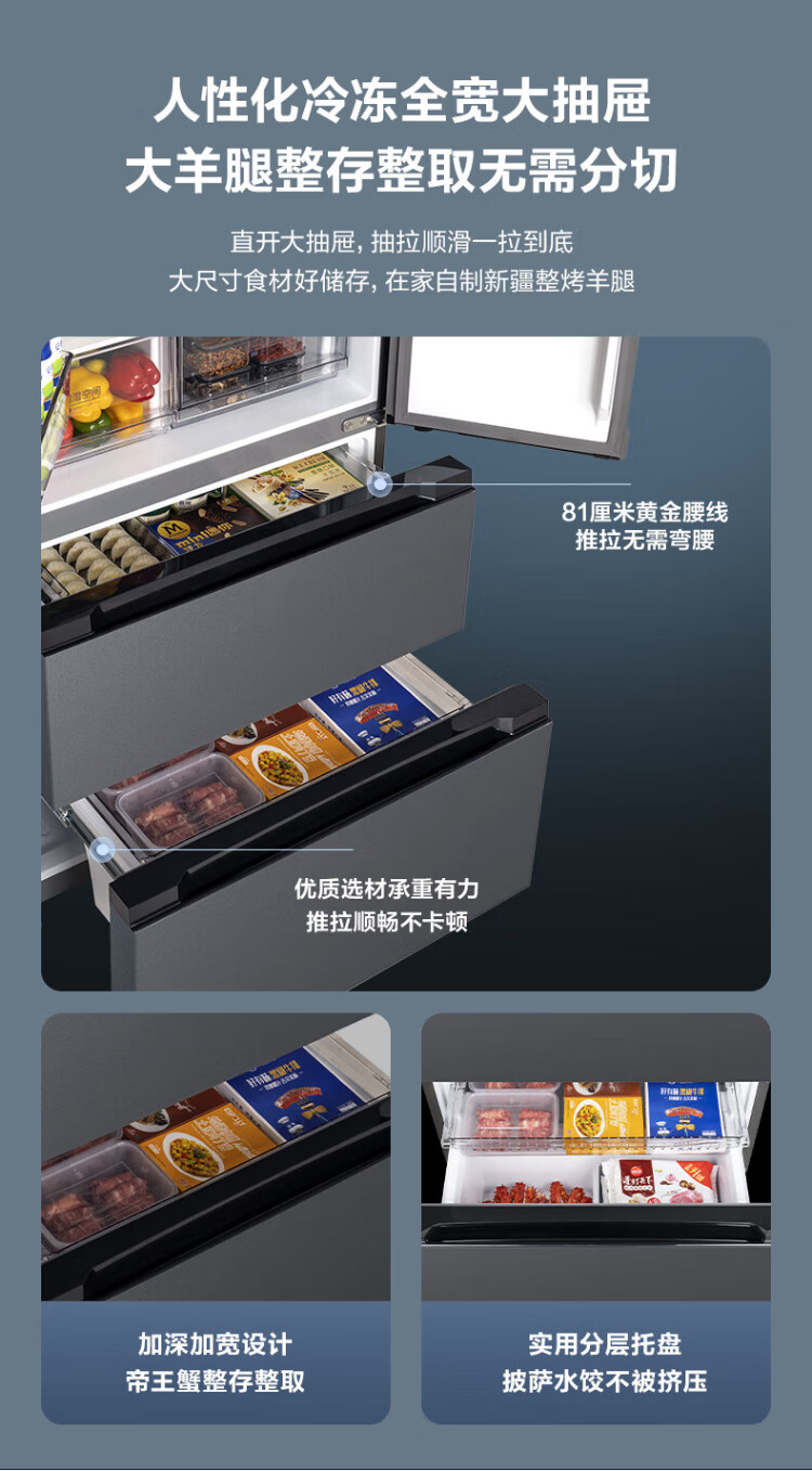 Midea 532 French multi-door four-door refrigerator with variable frequency, first-level energy efficiency, household frost-free dual system, dual cycle, large capacity, national subsidy 20% MR-532WFPZE Sky Gray