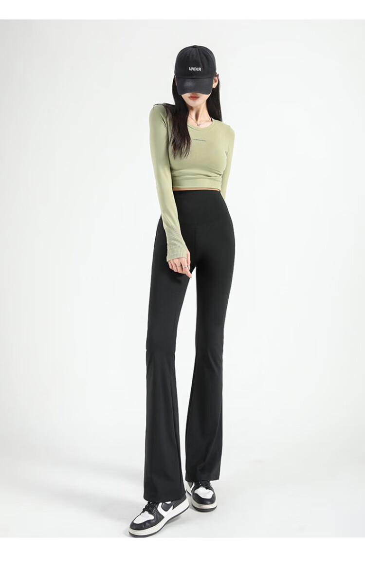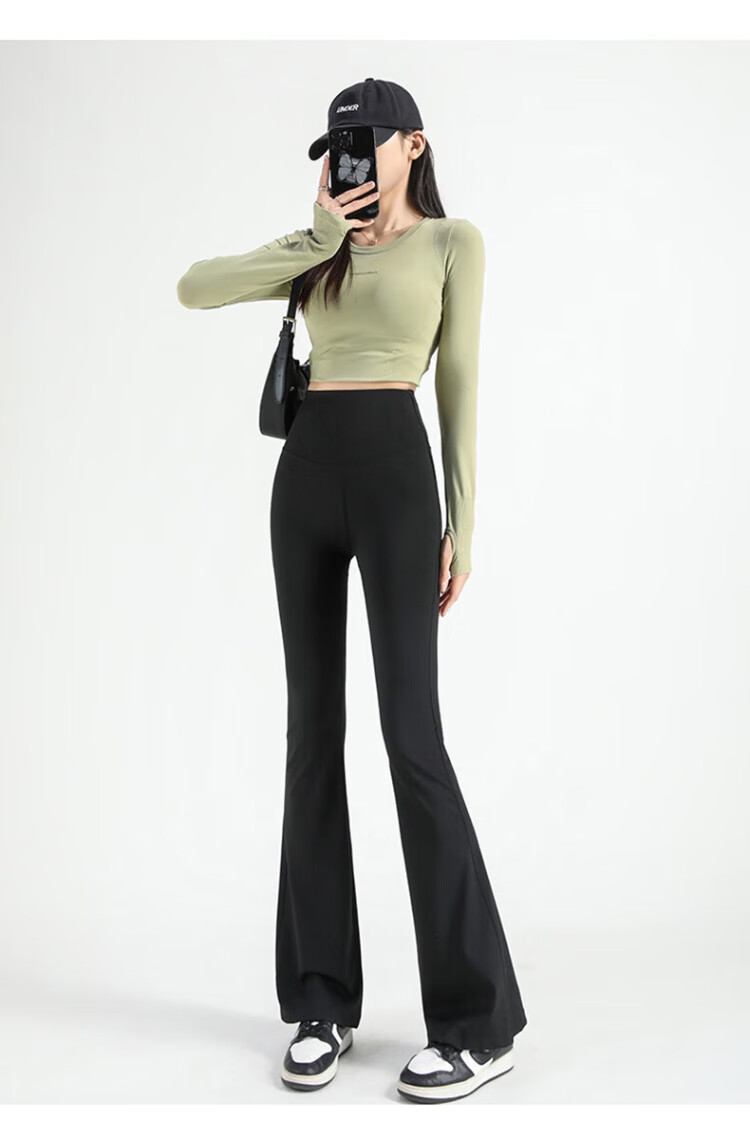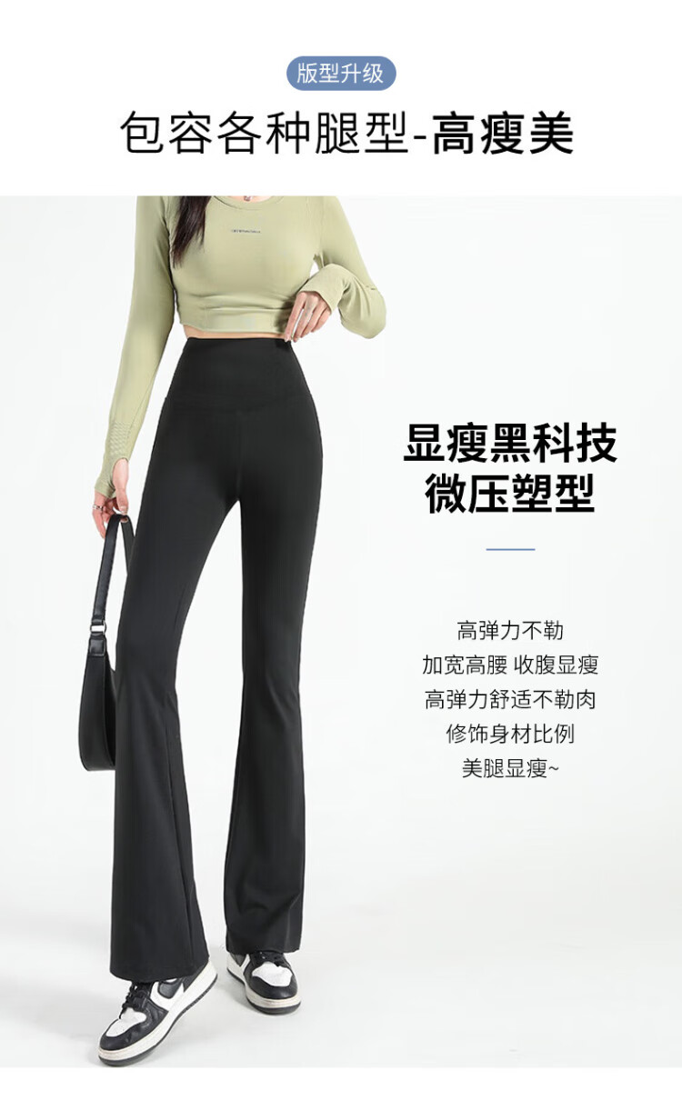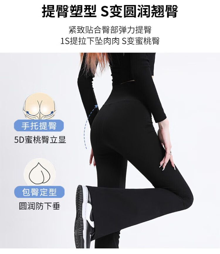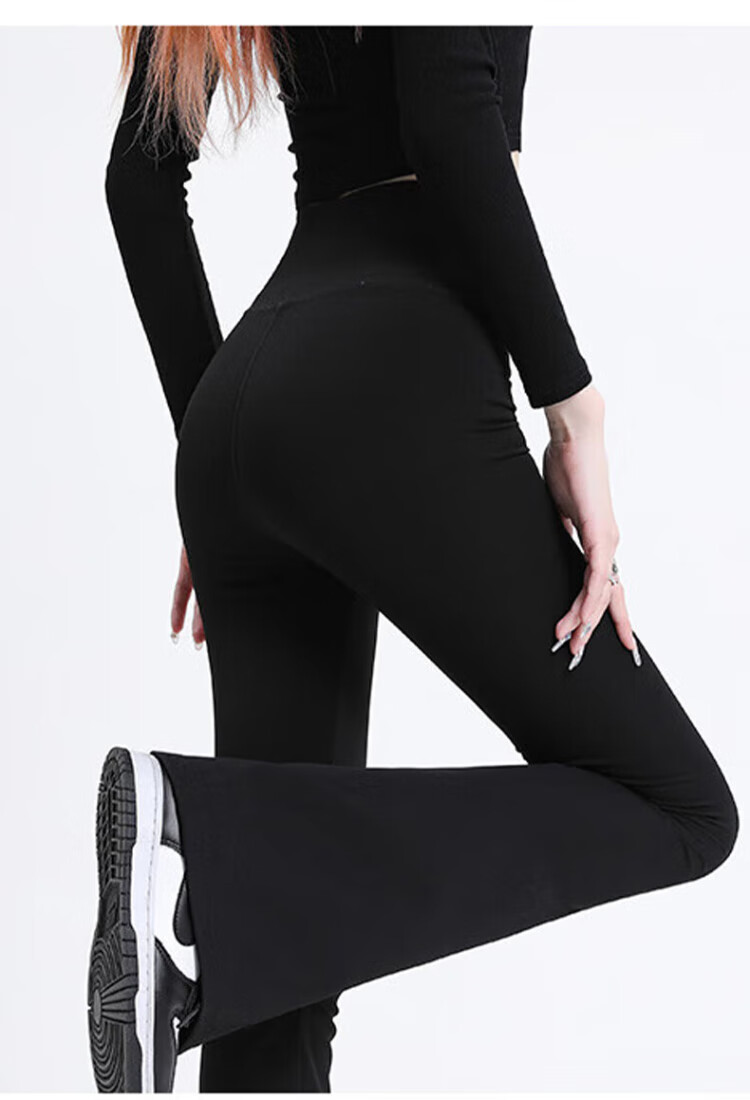 FitonTon micro-flared shark pants women's outer wear autumn and winter leggings women's buttocks and abdomen high-waisted yoga pants women's black L