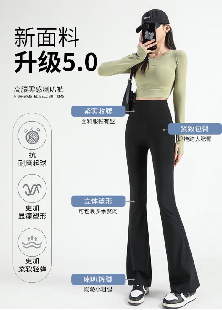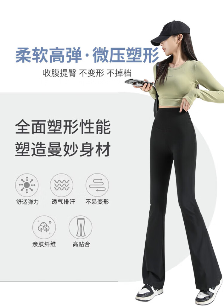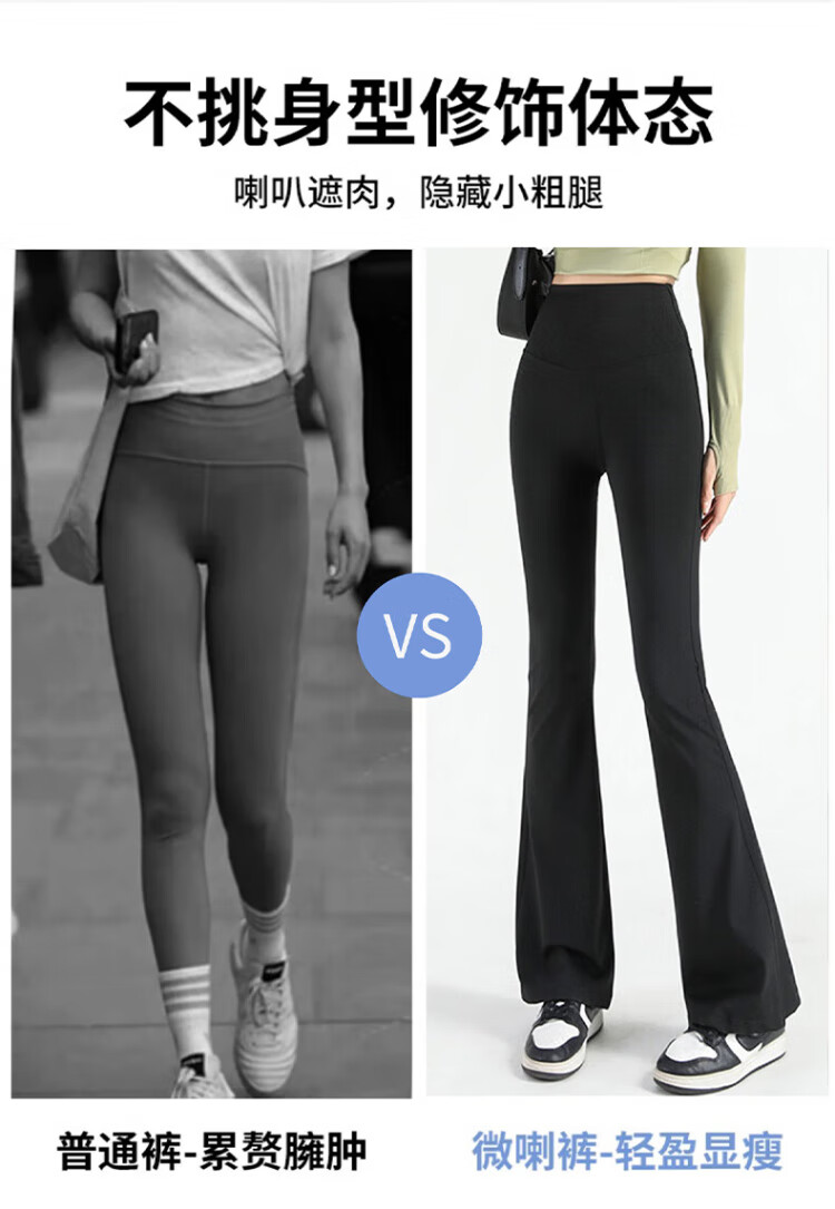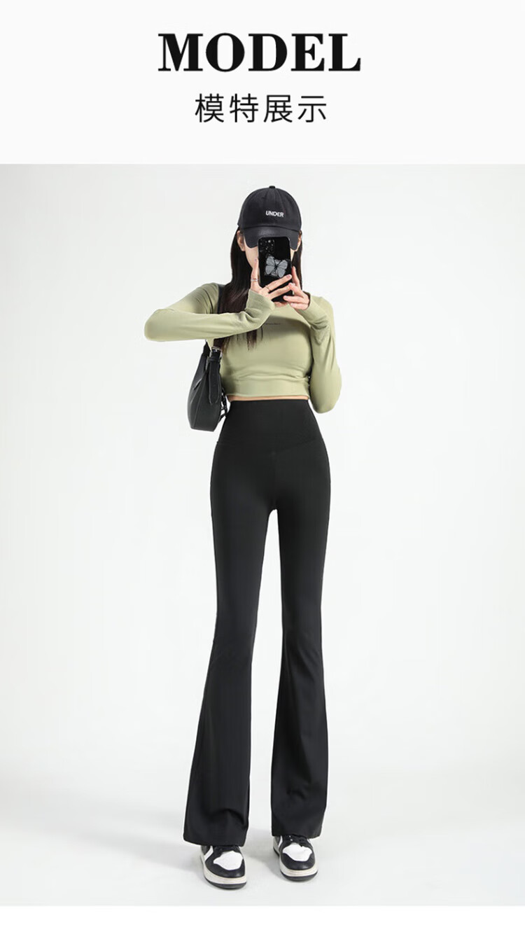 FitonTon micro-flared shark pants women's outer wear autumn and winter leggings women's buttocks and abdomen high-waisted yoga pants women's black L