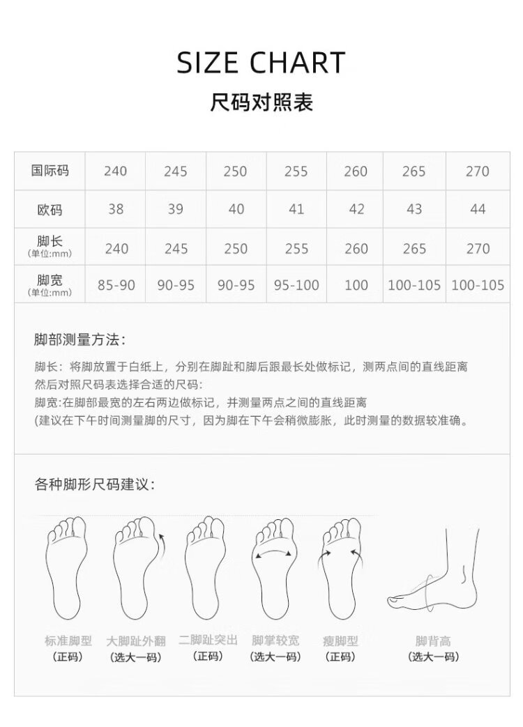 China (cm) 36 - 37 38 - 39 40 - 42 43 - 44 45 - 47
