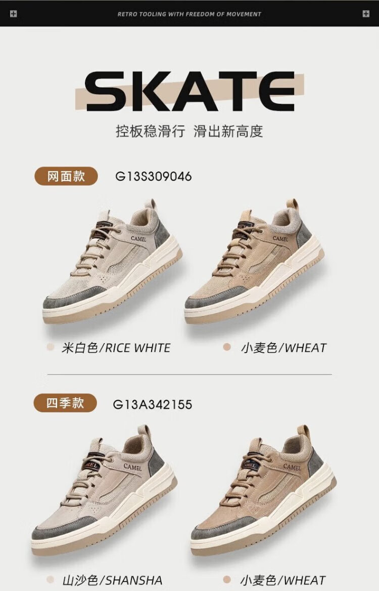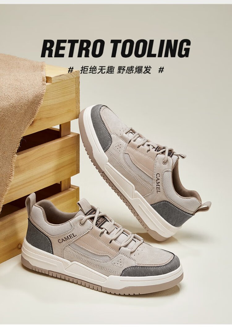 Camel (CAMEL) men's trendy retro stitching thick-soled versatile sports and leisure sneakers G13A342155 Shansha 42