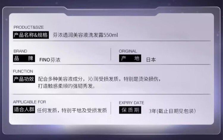 FINO Fen Nong Translucent Beauty Liquid Shampoo 550ml*2 moisturizing, bright, nourishing and anti-dandruff shampoo imported from Japan