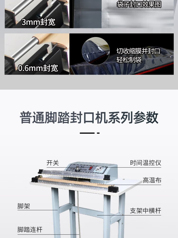 Blueberry blueberry ordinary foot sealing machine commercial foot plastic film sealing machine sealing and cutting machine aluminum foil tea bag baling machine SF-400 sealing 40cm can be customized