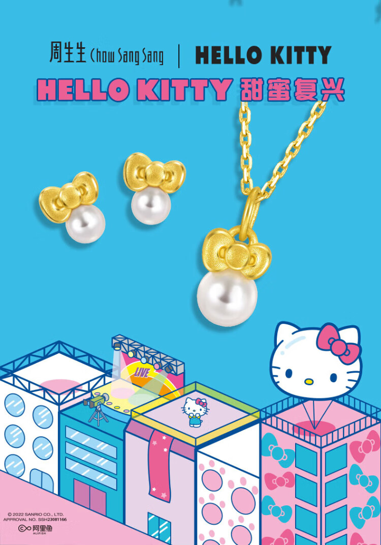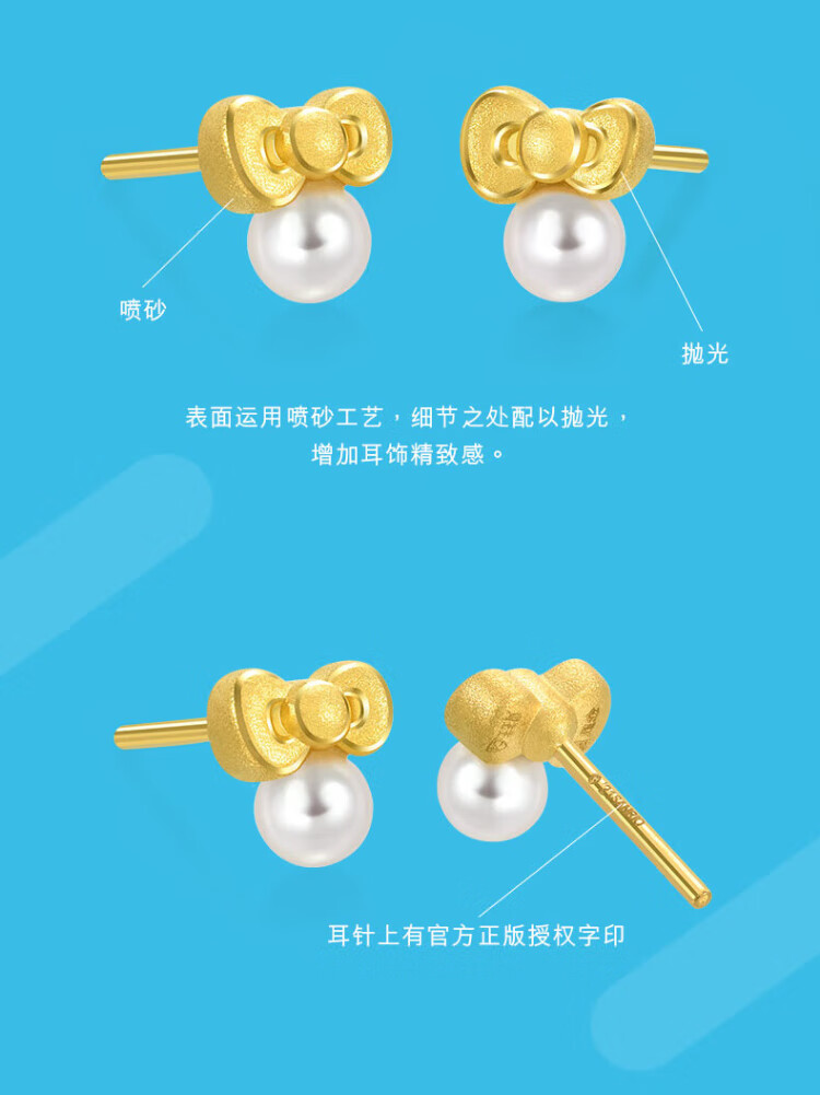 Chow Sang Sang Pearl Gold Earrings Pair of Hello Kitty Sanrio Pure Gold Bow Earrings 92634E Pricing