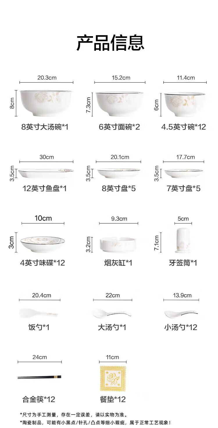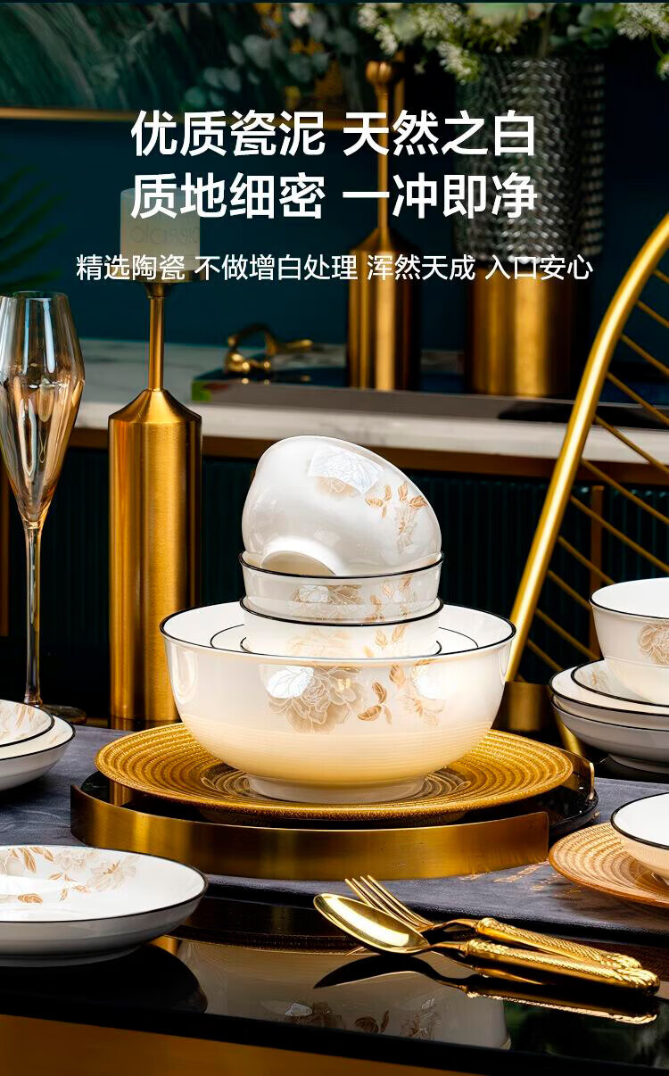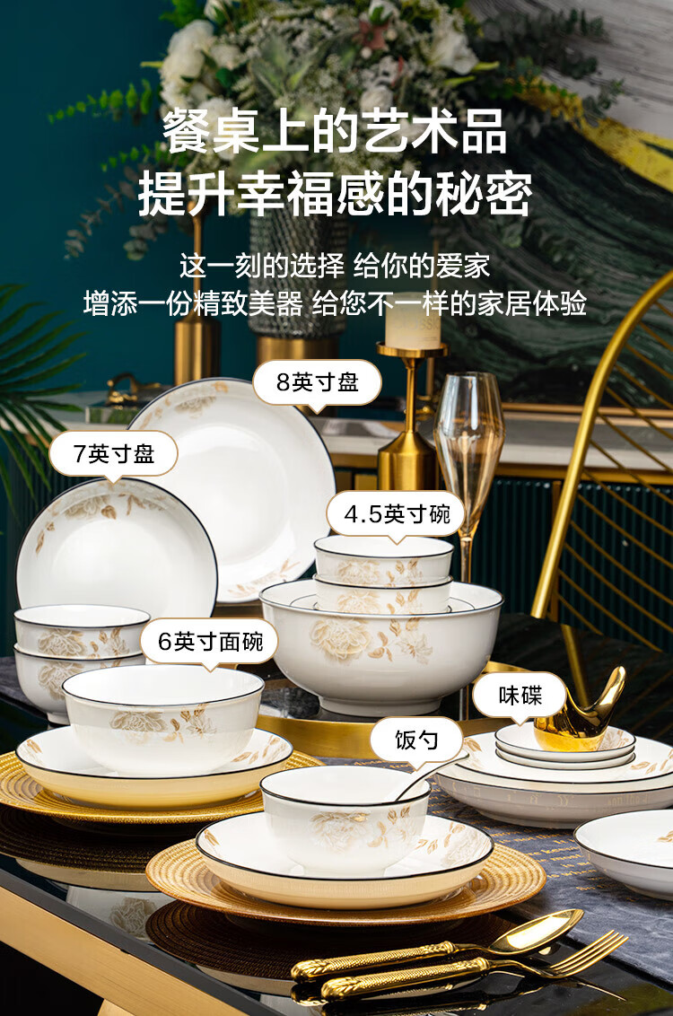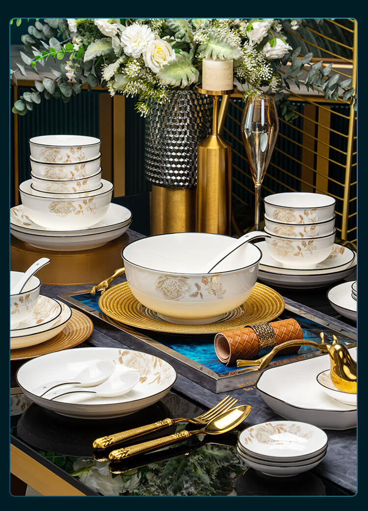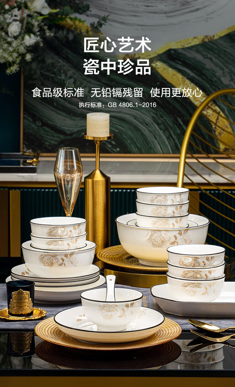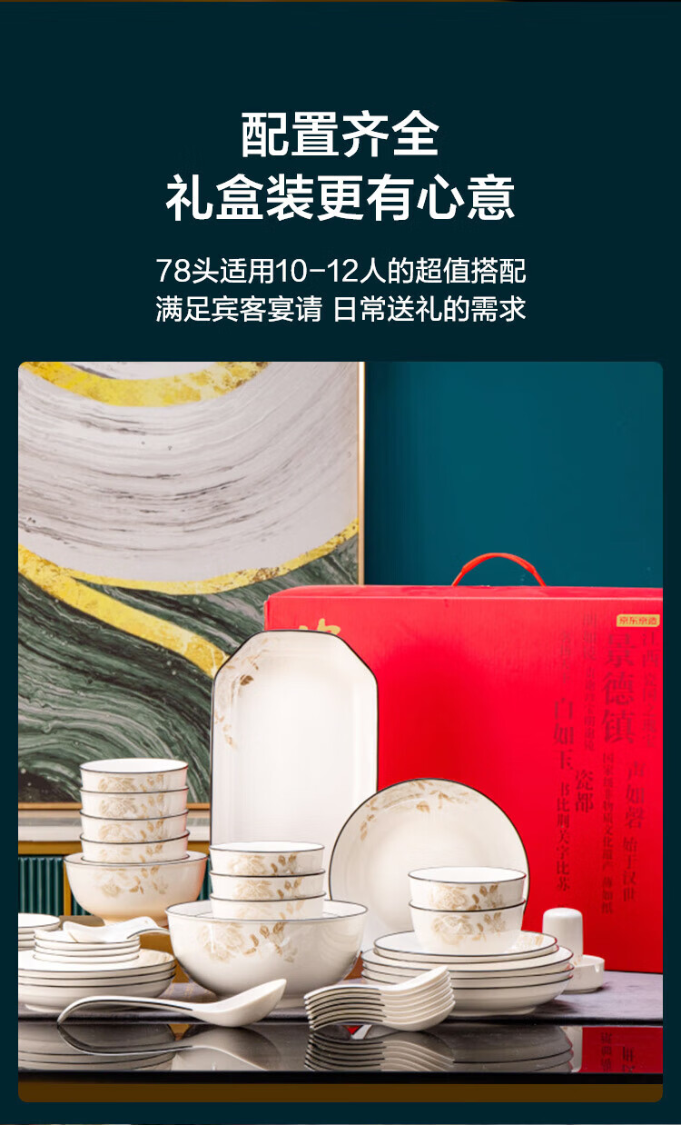 Jingdezhen bowls, plates and tableware set made in Tokyo Jingdezhen bowls and plates set housewarming ceramic gift box golden branches and jade leaves 78 pieces