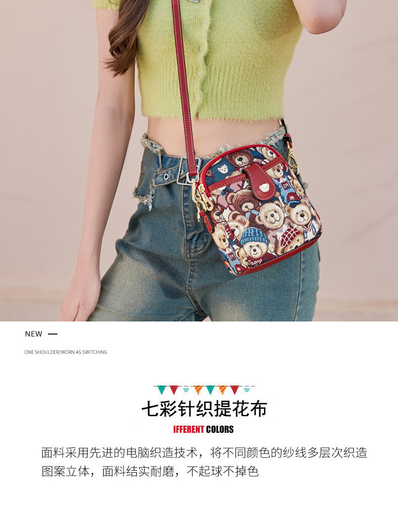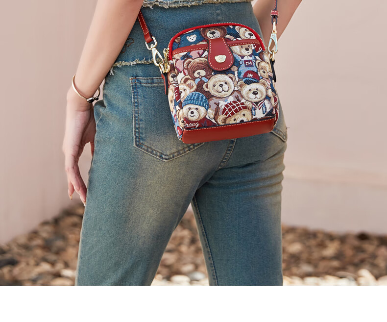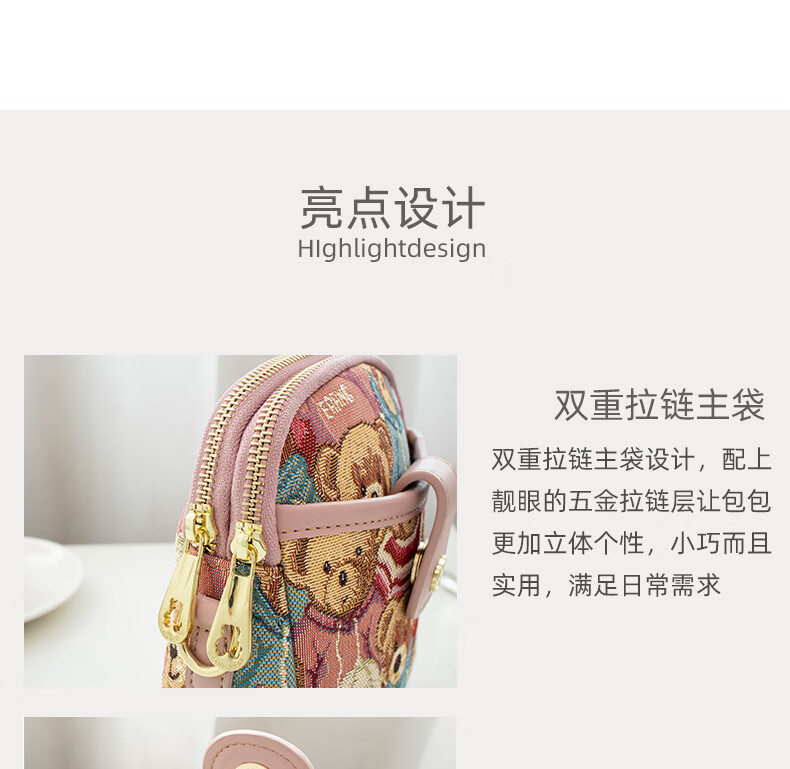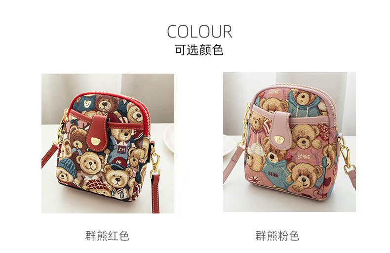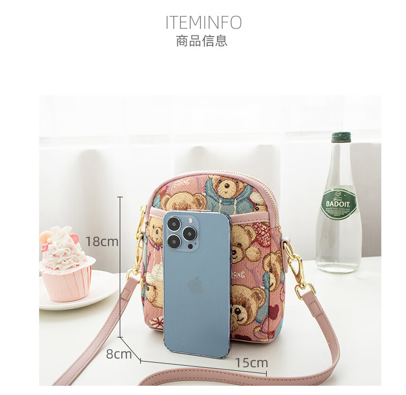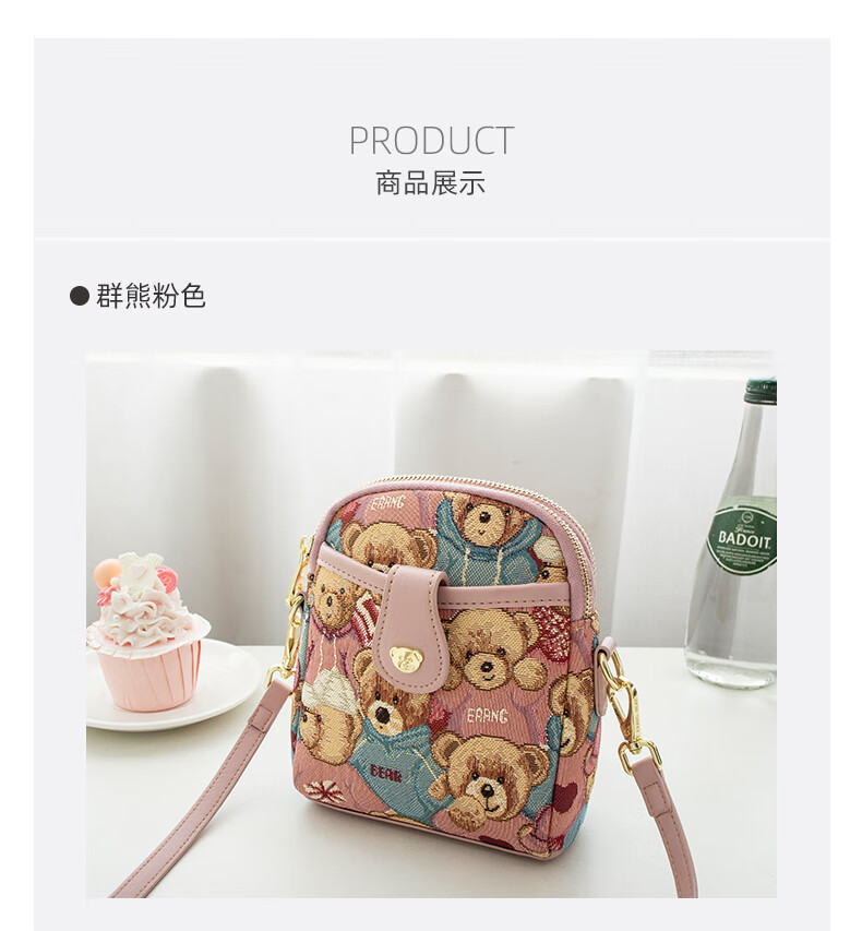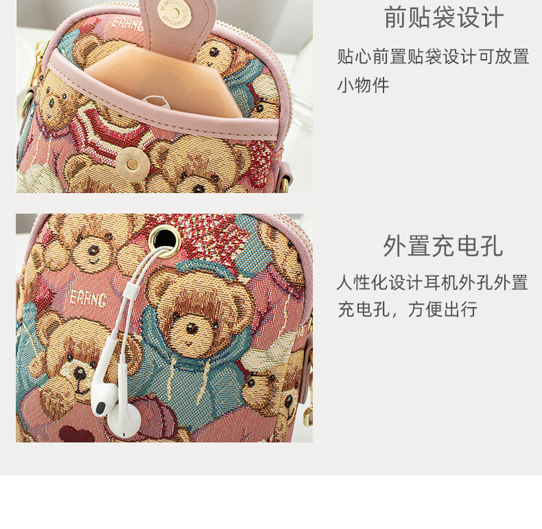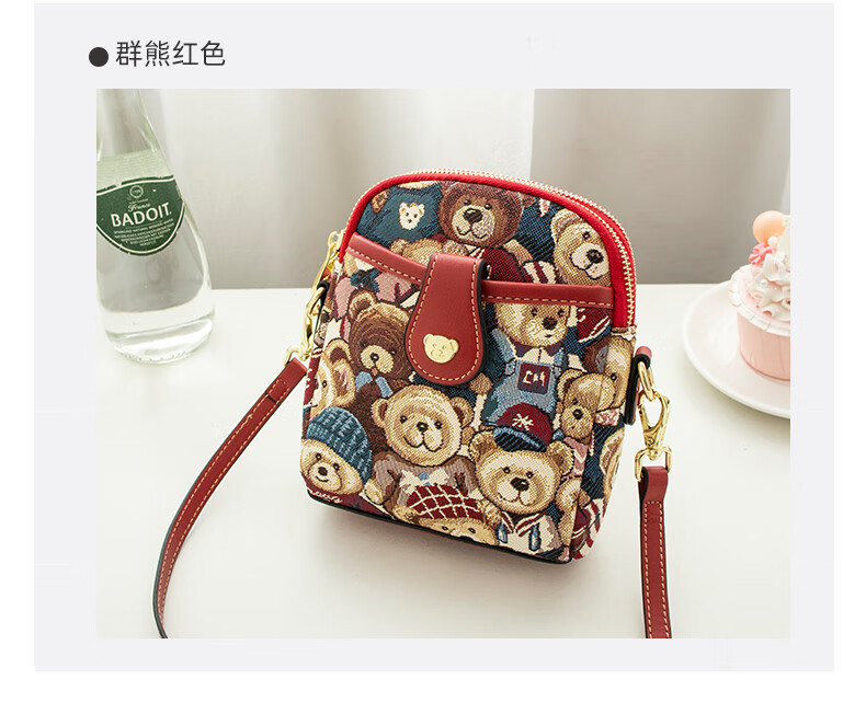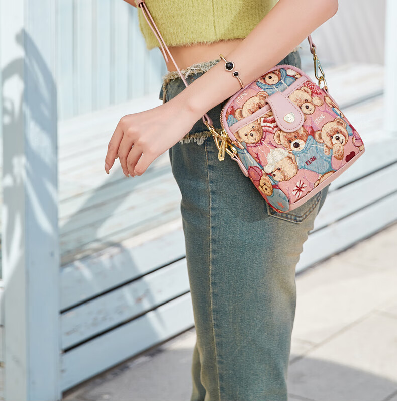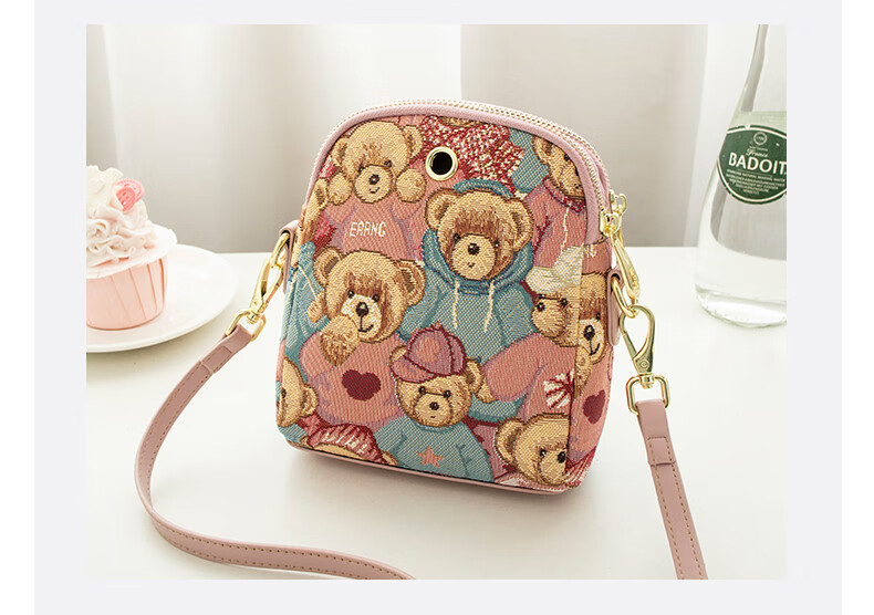 Bear attachment, high-end, stylish mobile phone bag for women, fashionable and lightweight mini canvas messenger bag, casual small shoulder bag