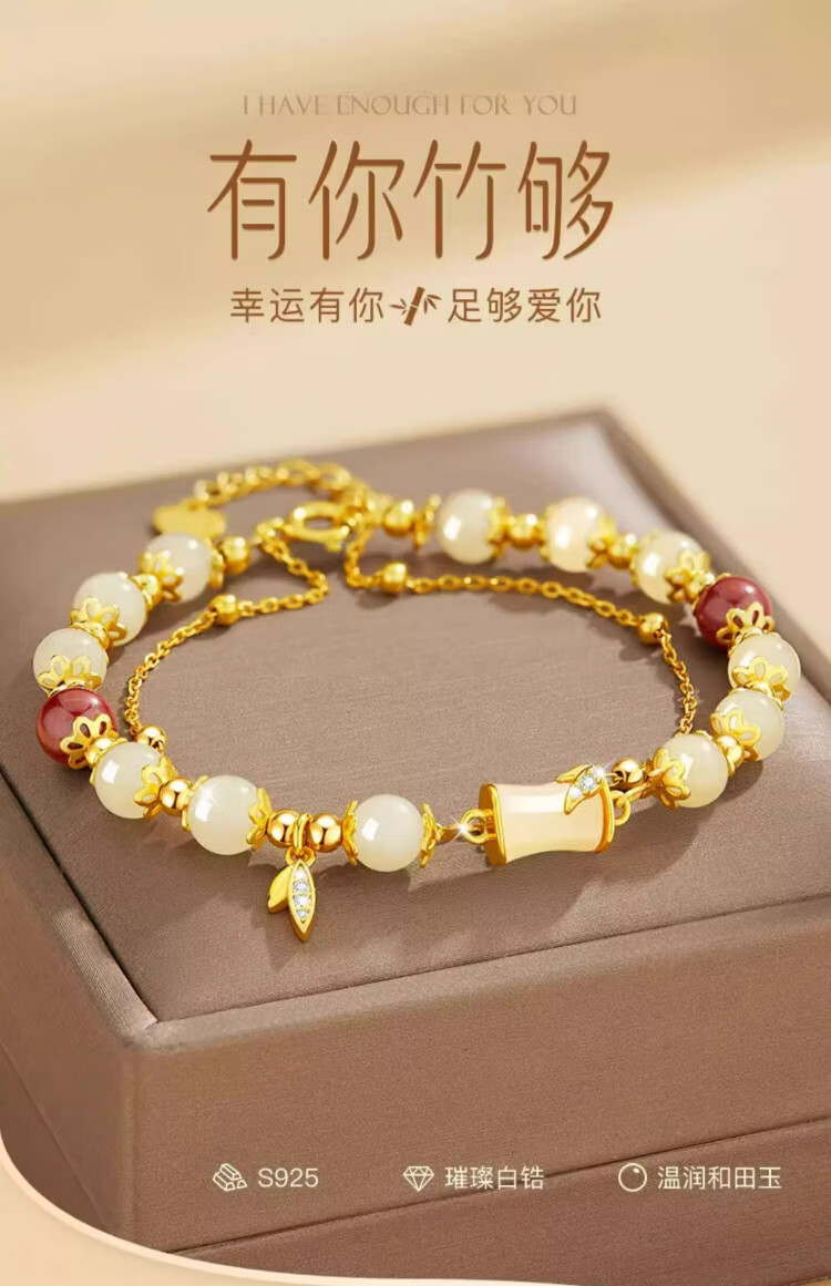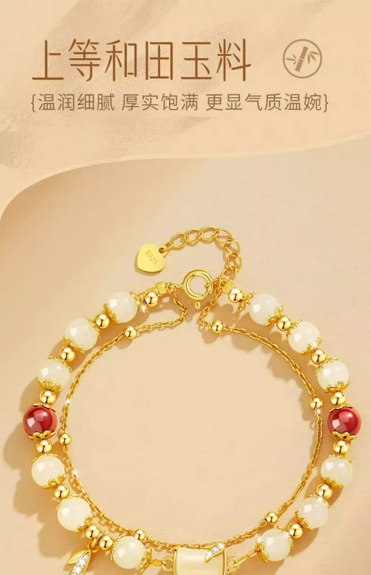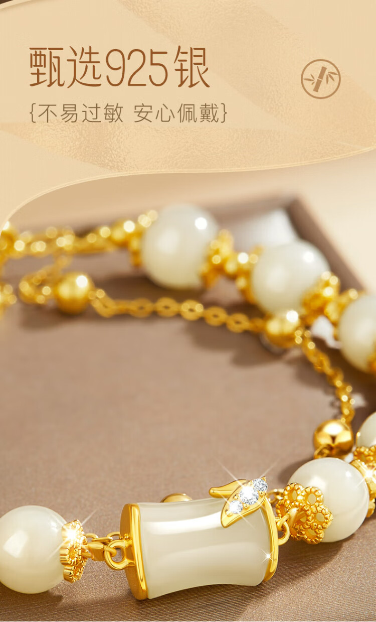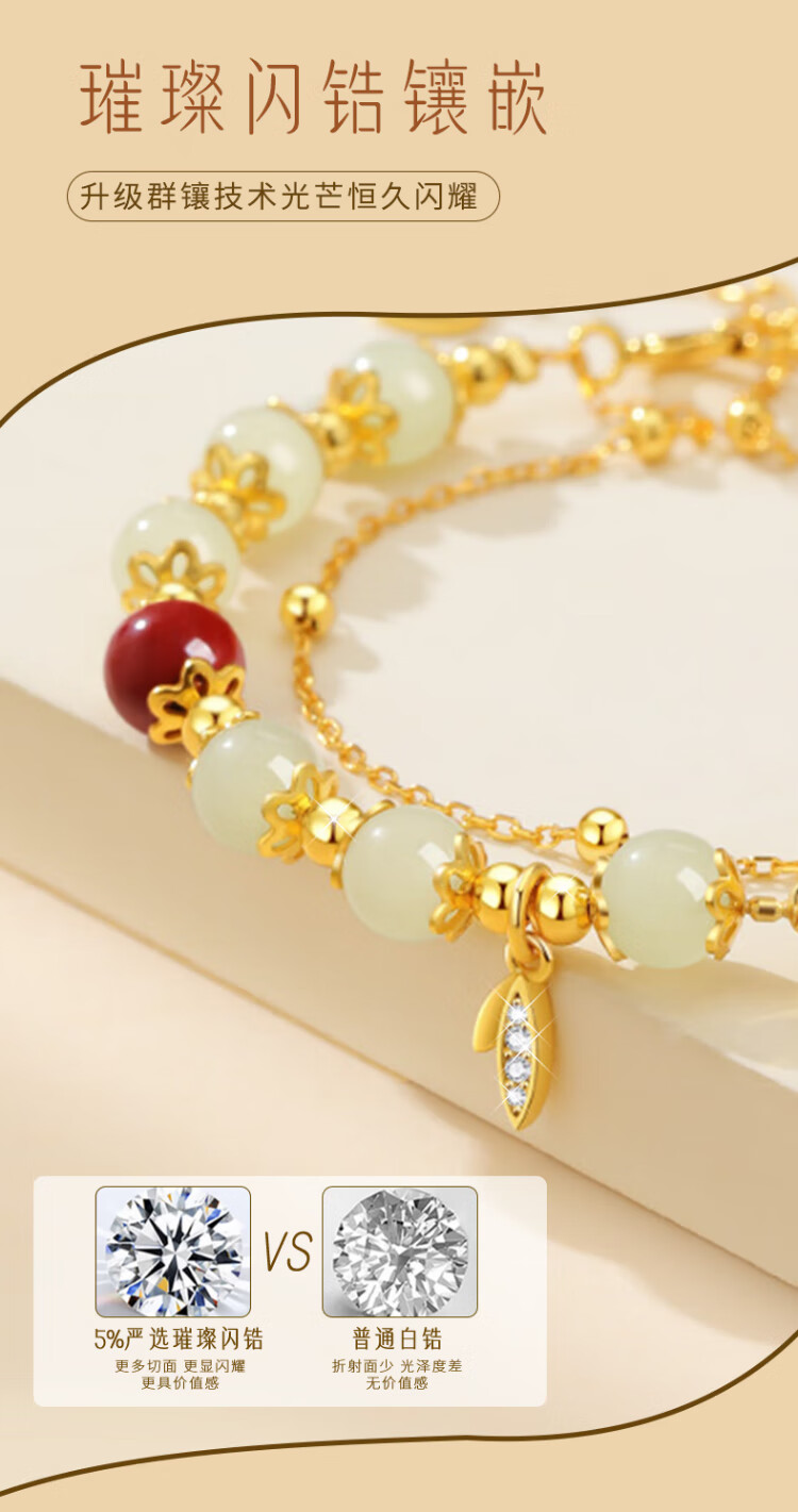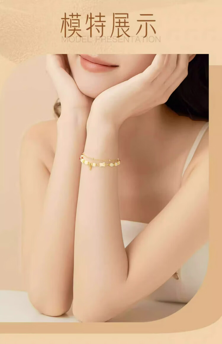 Central Chuang Fashion Chinese Gold Bracelet Women's Birthday Anniversary Gift Girls Give Girlfriend Wife Women's Bracelet S925