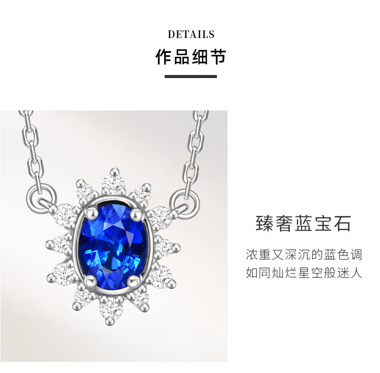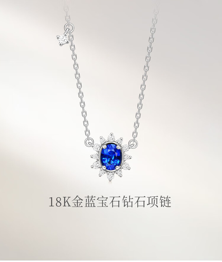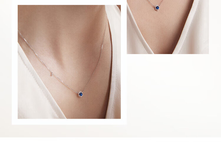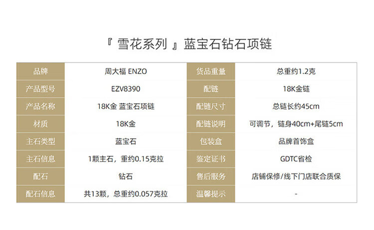 Chow Tai Fook ENZO Snowflake Series 18K Gold Sapphire Diamond Necklace for Women 45cm EZV8390