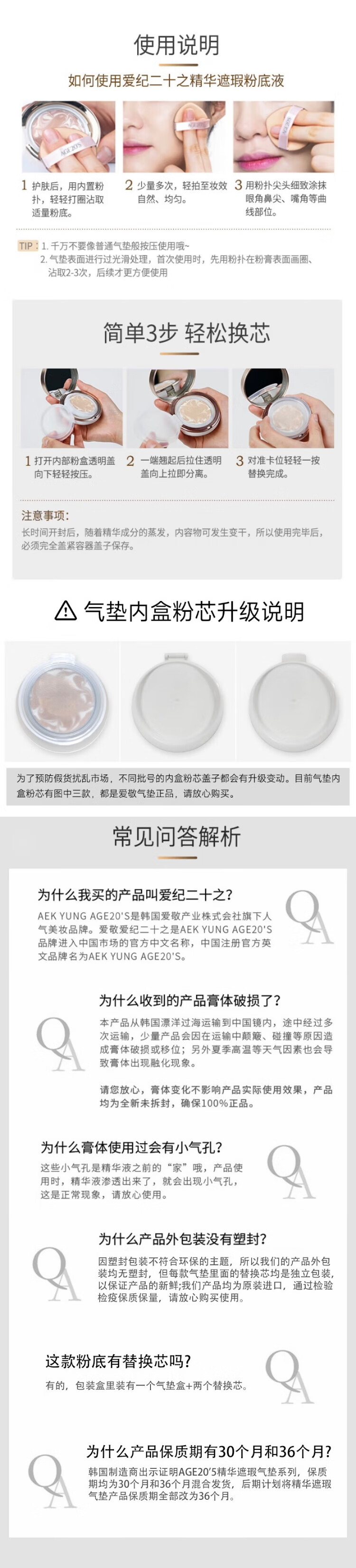 Aekyung Age 20 s Aekyung Air Cushion Three Sera Flower Pink Gold Hydrating Moisturizing #13 Concealer Lasting Makeup Birthday Gift for Women