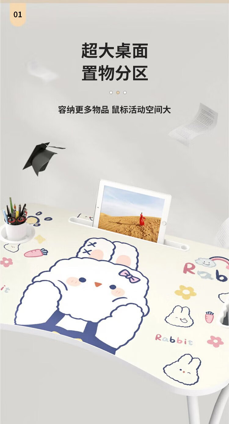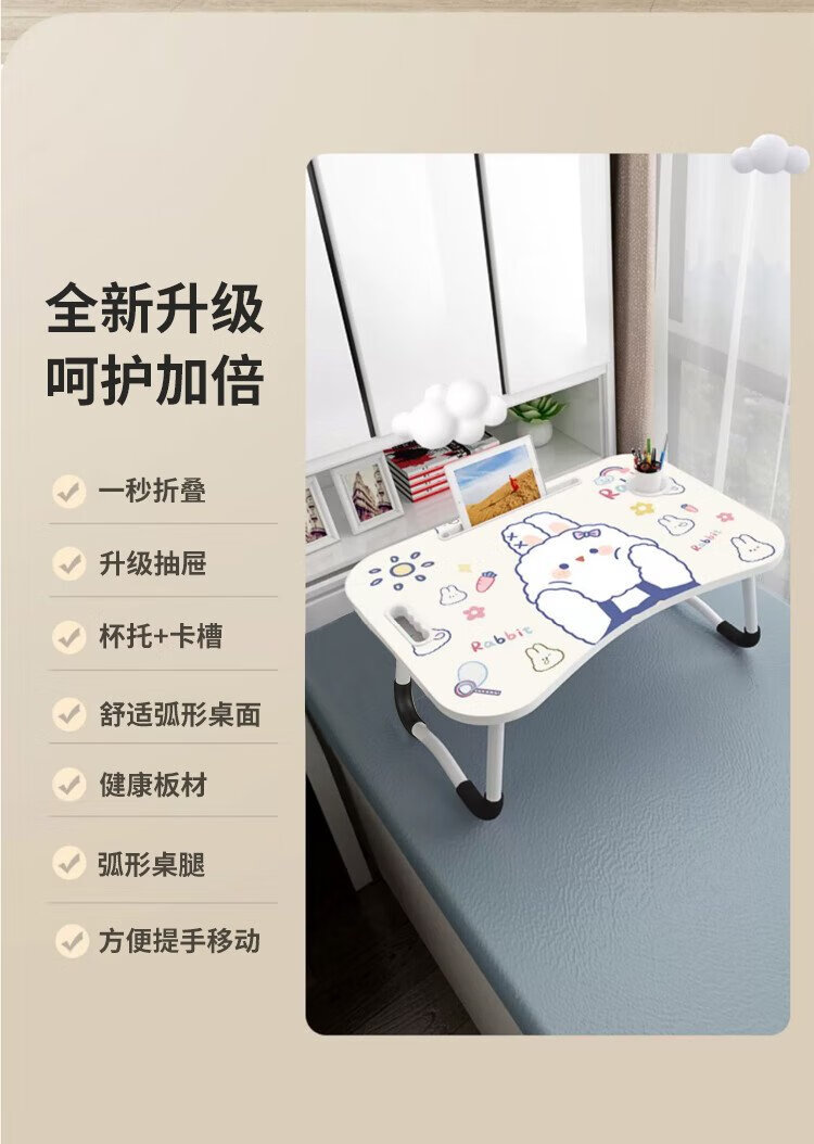 Zhuobo bed computer table folding table bed table desk student dormitory study table CZ01 round leg card slot cup holder