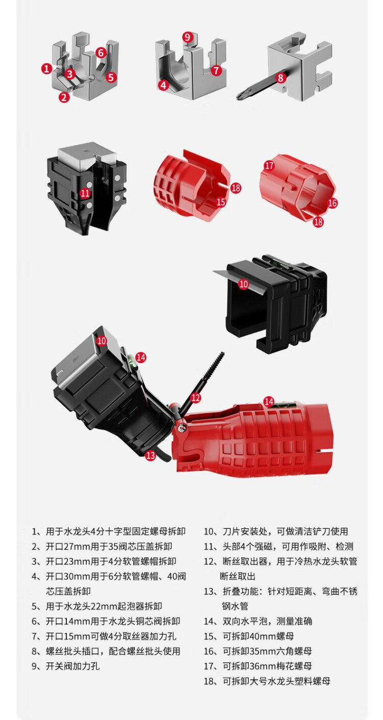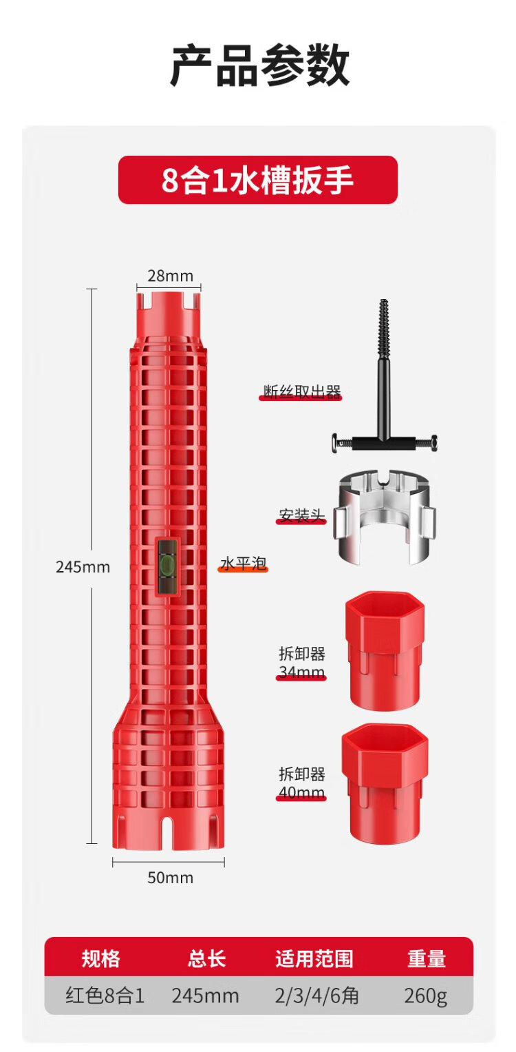 Delixi sink wrench bathroom special eight-in-one multi-function faucet water pipe loosener installation tool