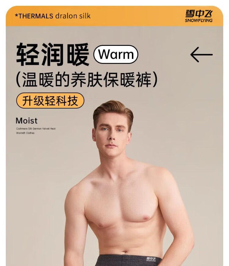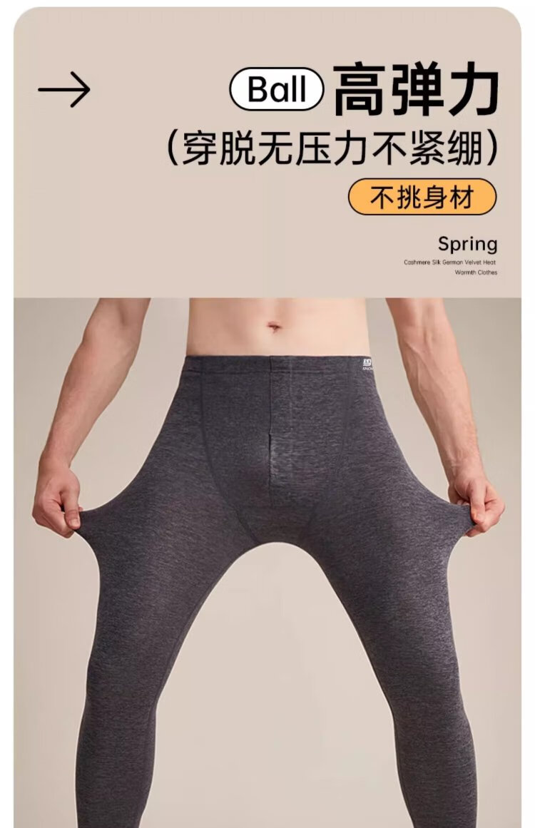 Flying in the Snow 7A Antibacterial Light Technology Heating and Storage 2 Pairs of Seamless Men's Warm Pants Men's Autumn Pants Plus Velvet Cotton Wool Bottoms