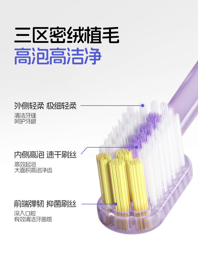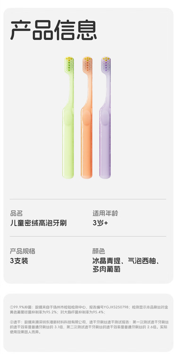 Rabbit head mother dense velvet high-foam children's toothbrush 3-pack dense velvet brush filament oral care antibacterial and quick-drying 3-6-12 years old