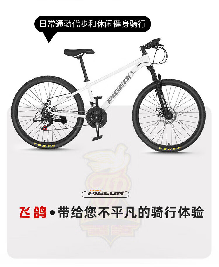 FG FLYING PIGEON bicycle, big children's 21-speed mountain bike, youth shock-absorbing bicycle, student bicycle 26 inches gray