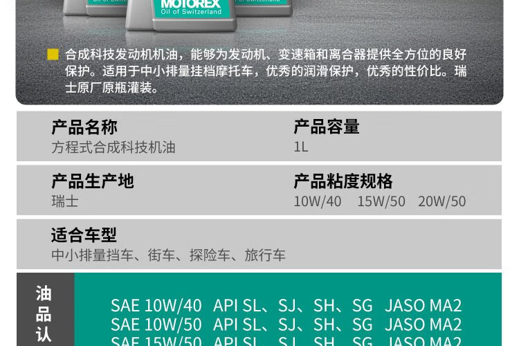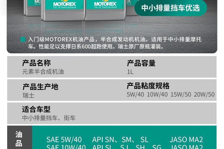 MOTOREX Motorcycle Swiss original imported Challenger 4T motorcycle fully synthetic lubricant oil SN grade 10W-40 1L