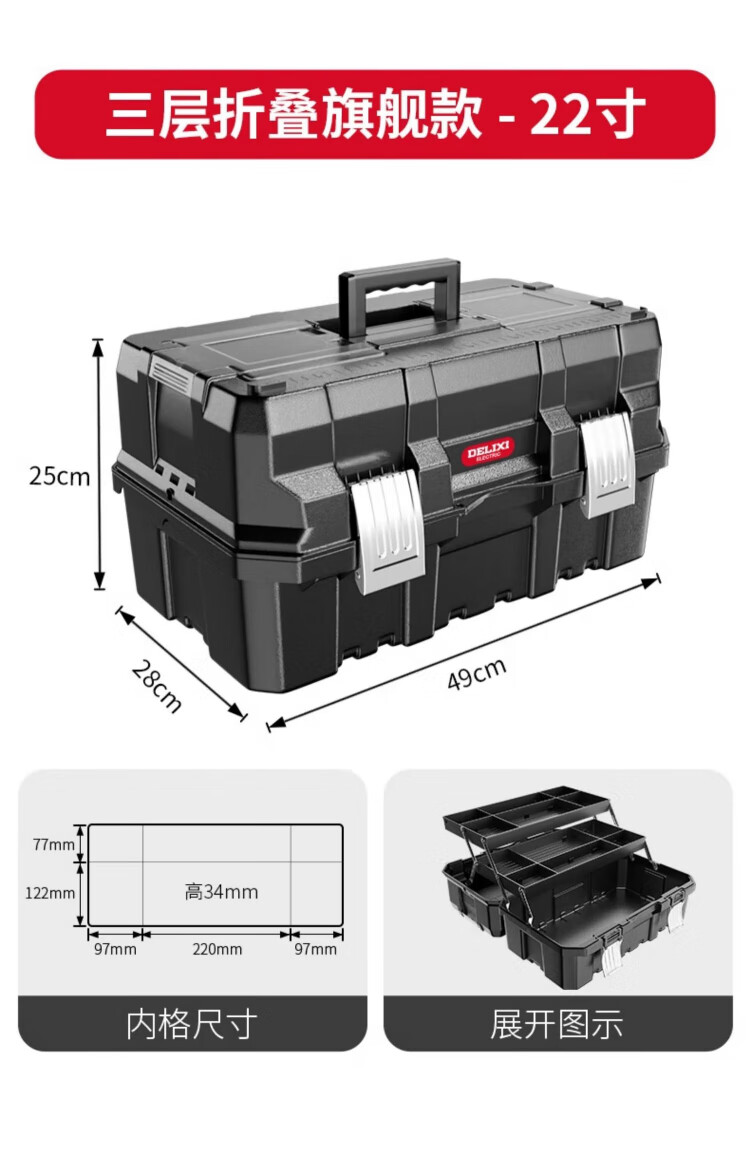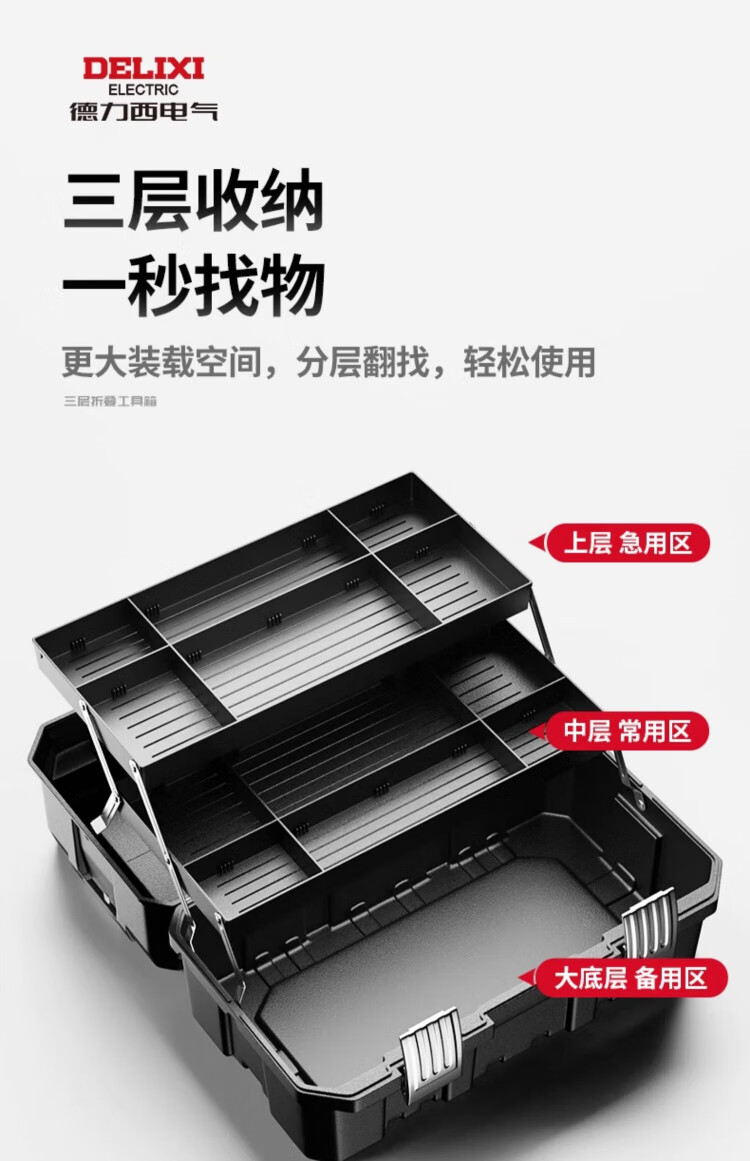 Delixi toolbox industrial grade home set multi-function hardware art box electrician multi-layer folding storage box