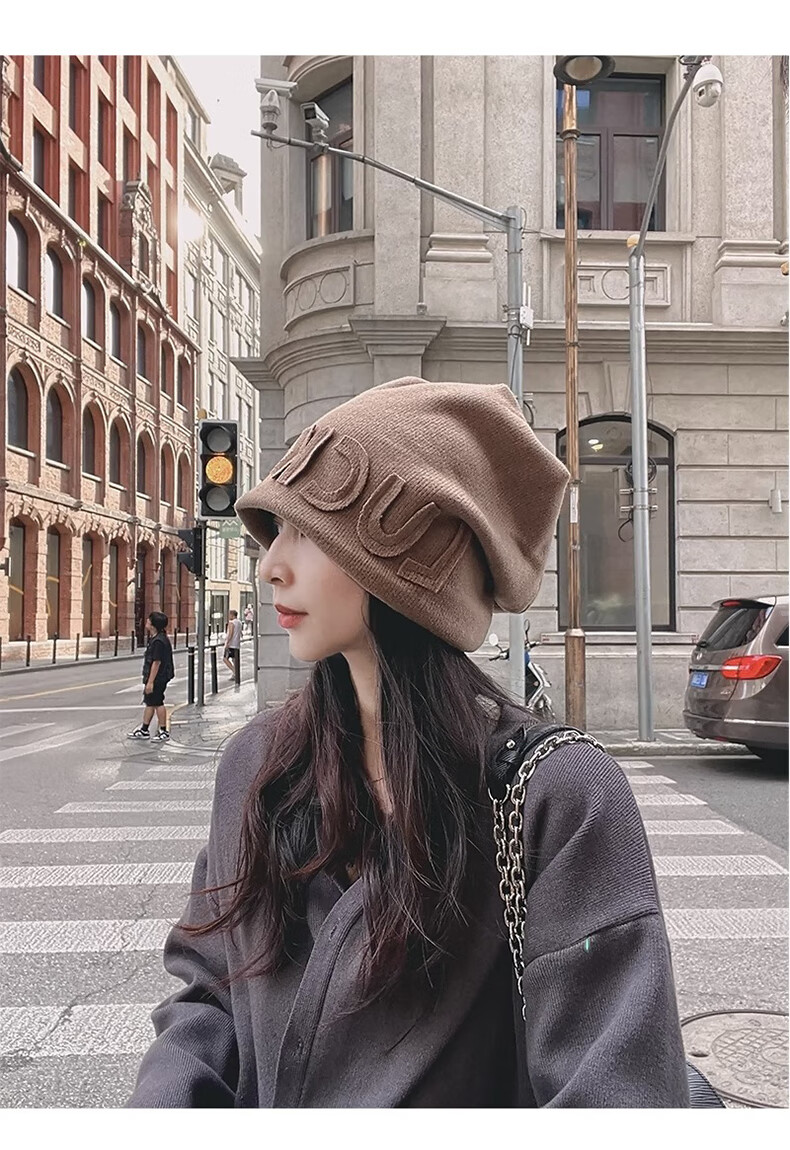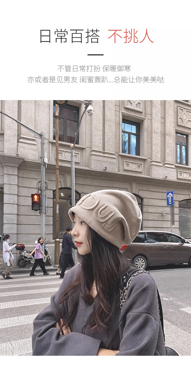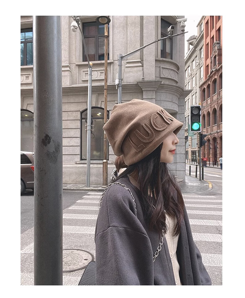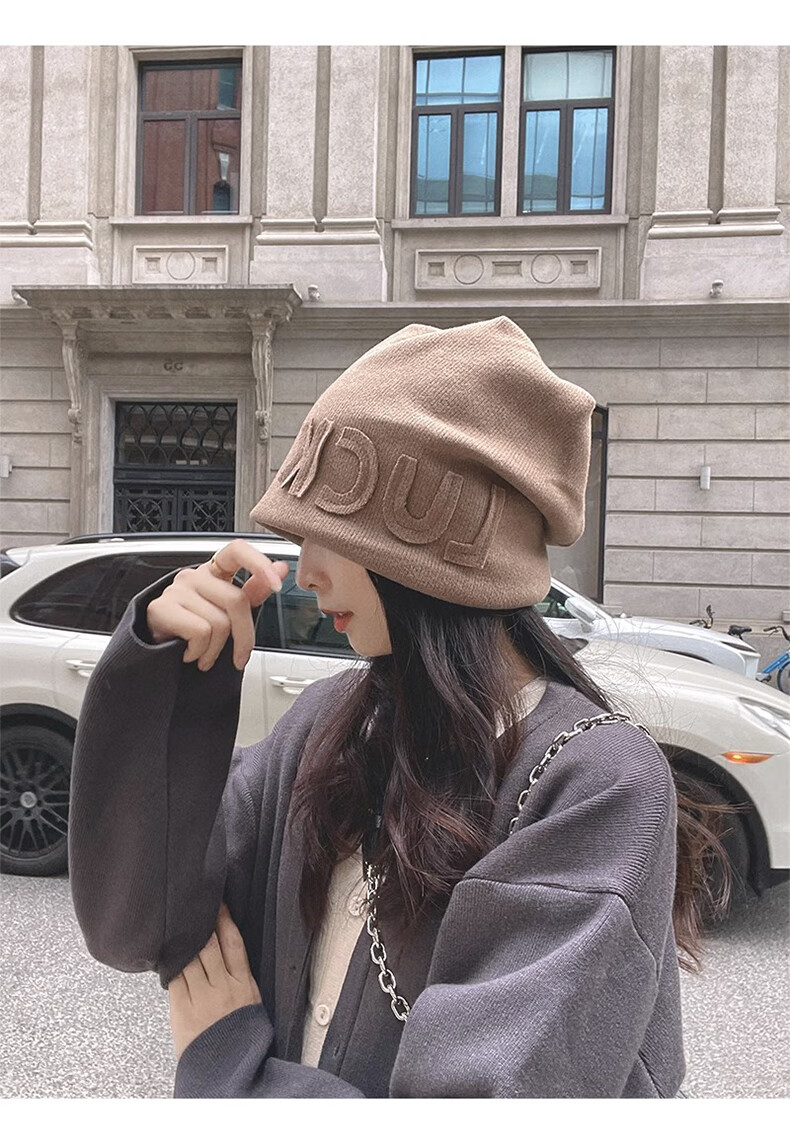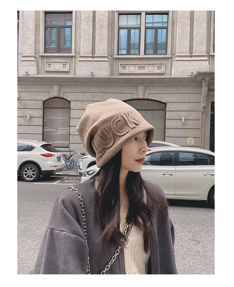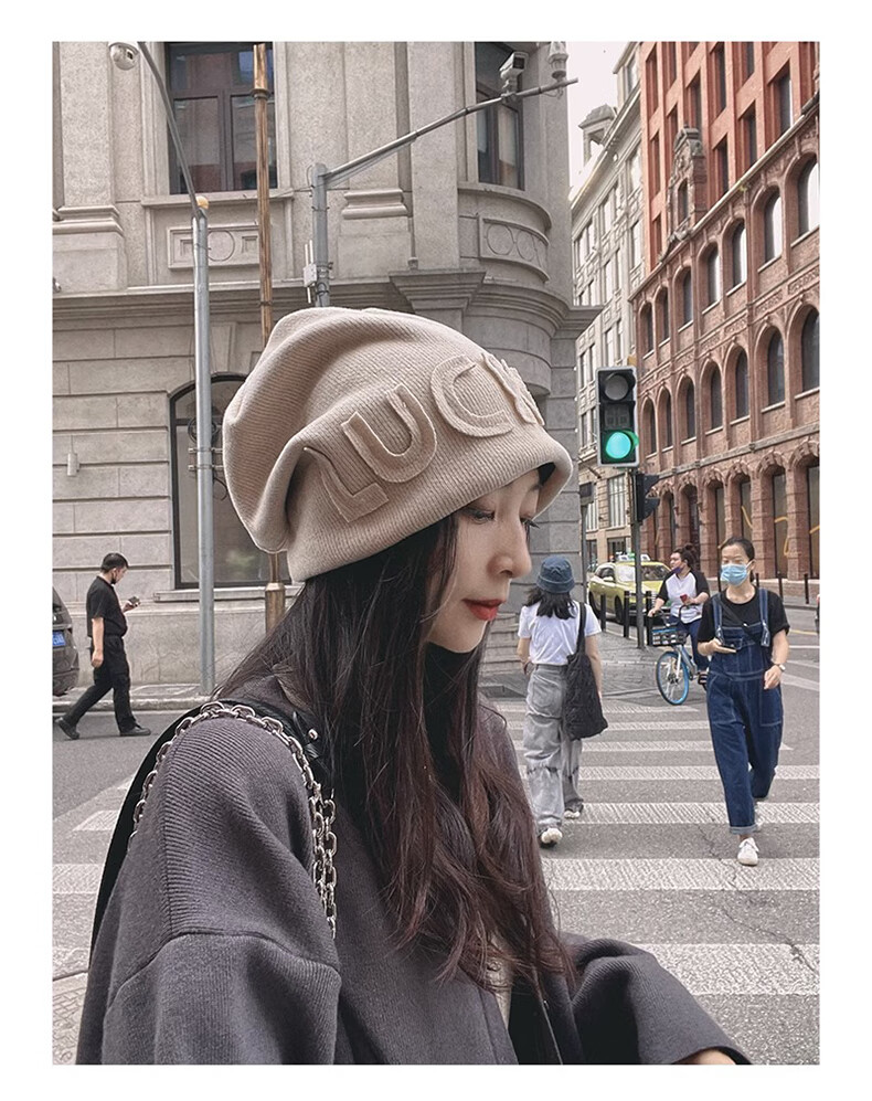 Xue Qianman Hat Women's Autumn and Winter Style Pile Hat Letters Versatile Thickened Warm Knitted Wool Hat Plus Velvet Baotou Hat