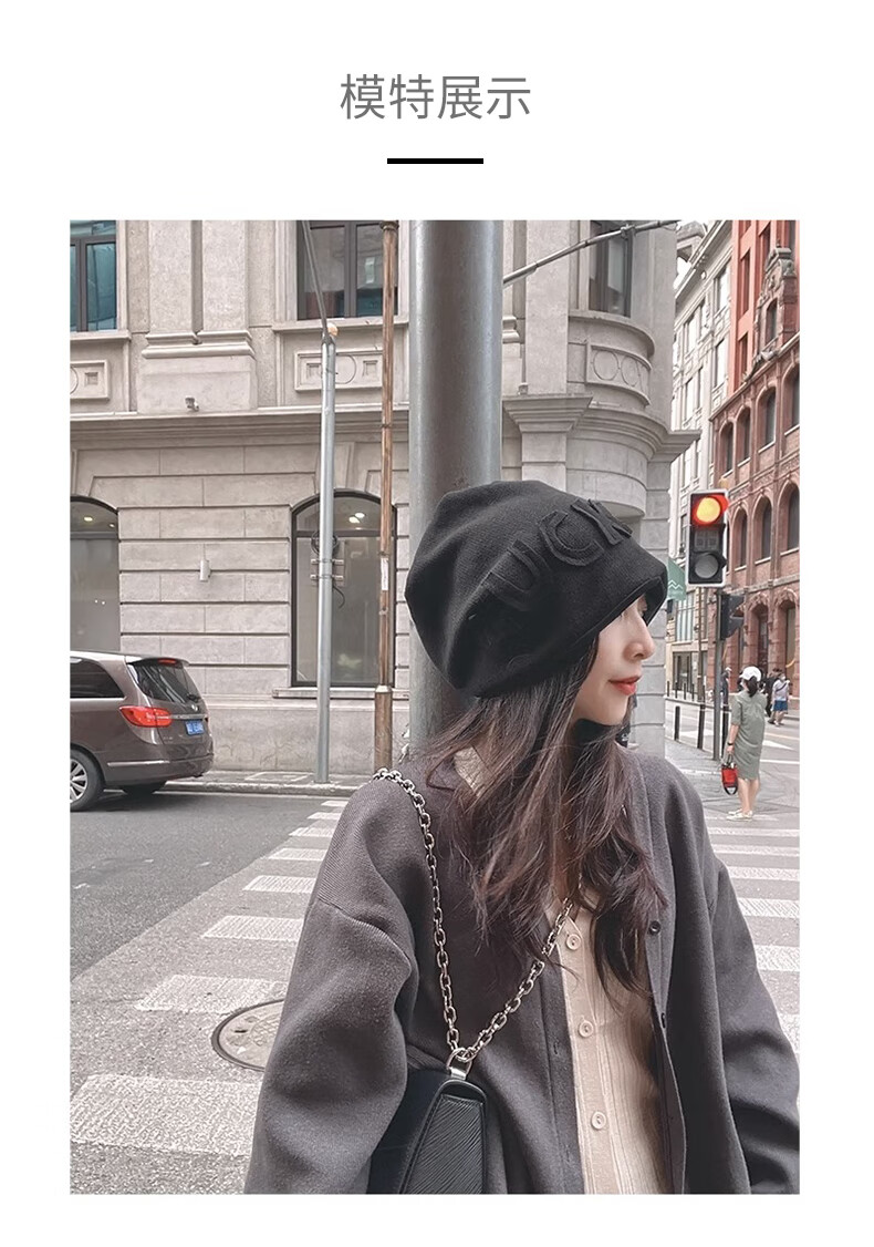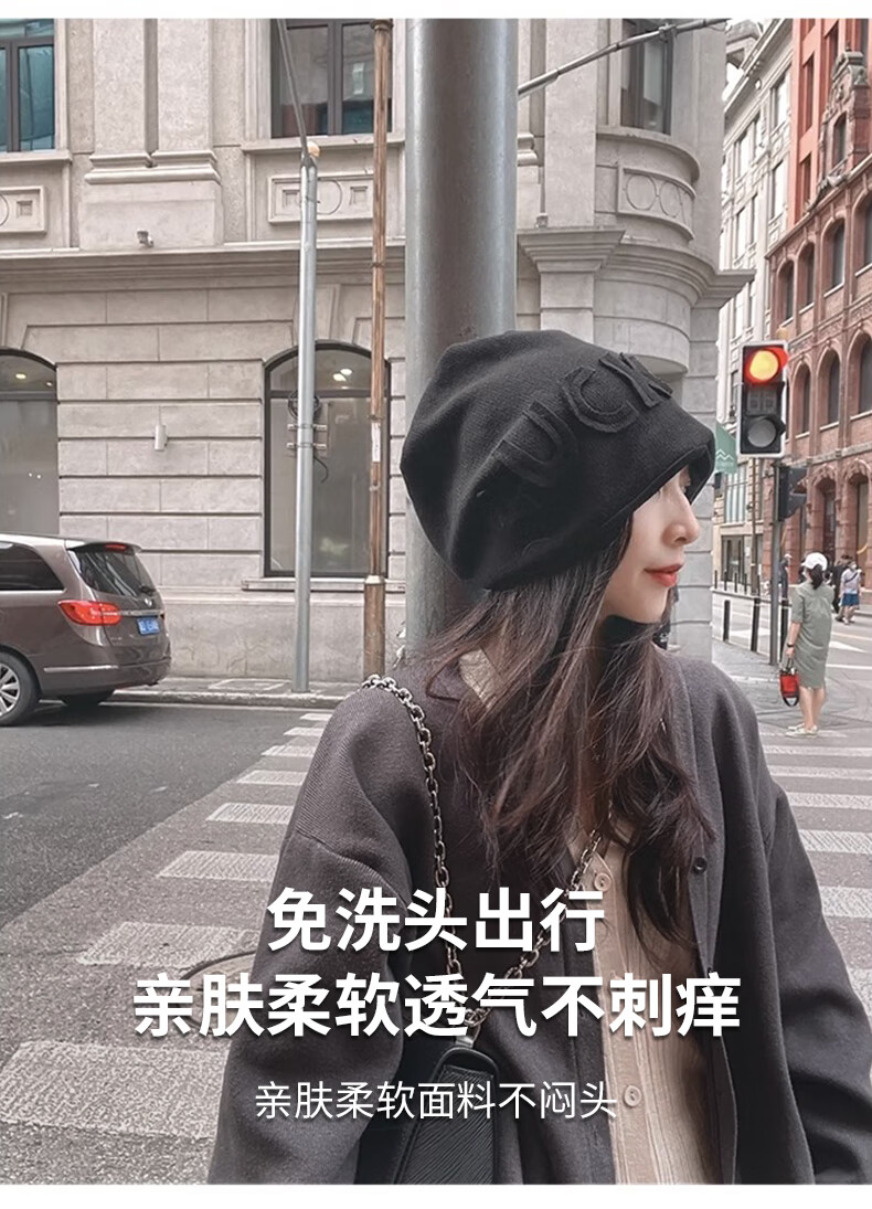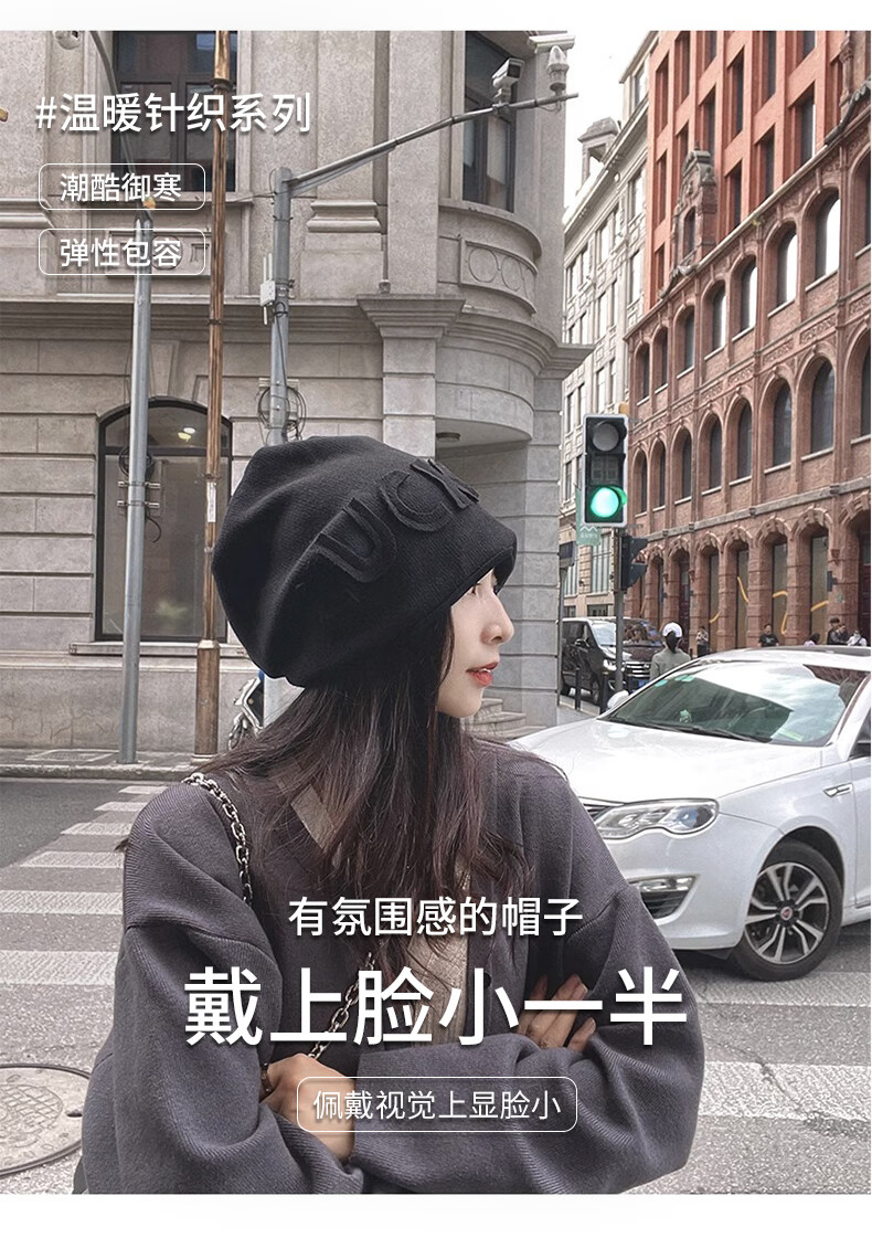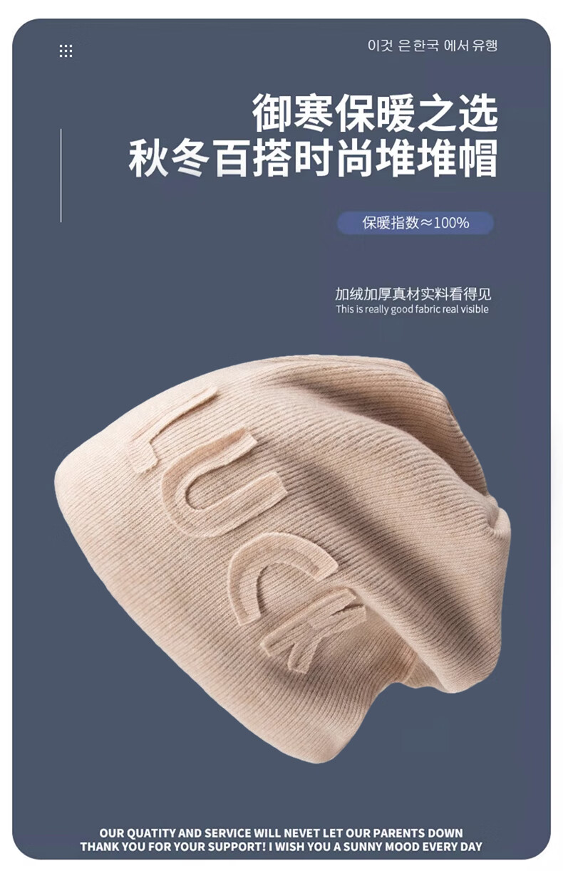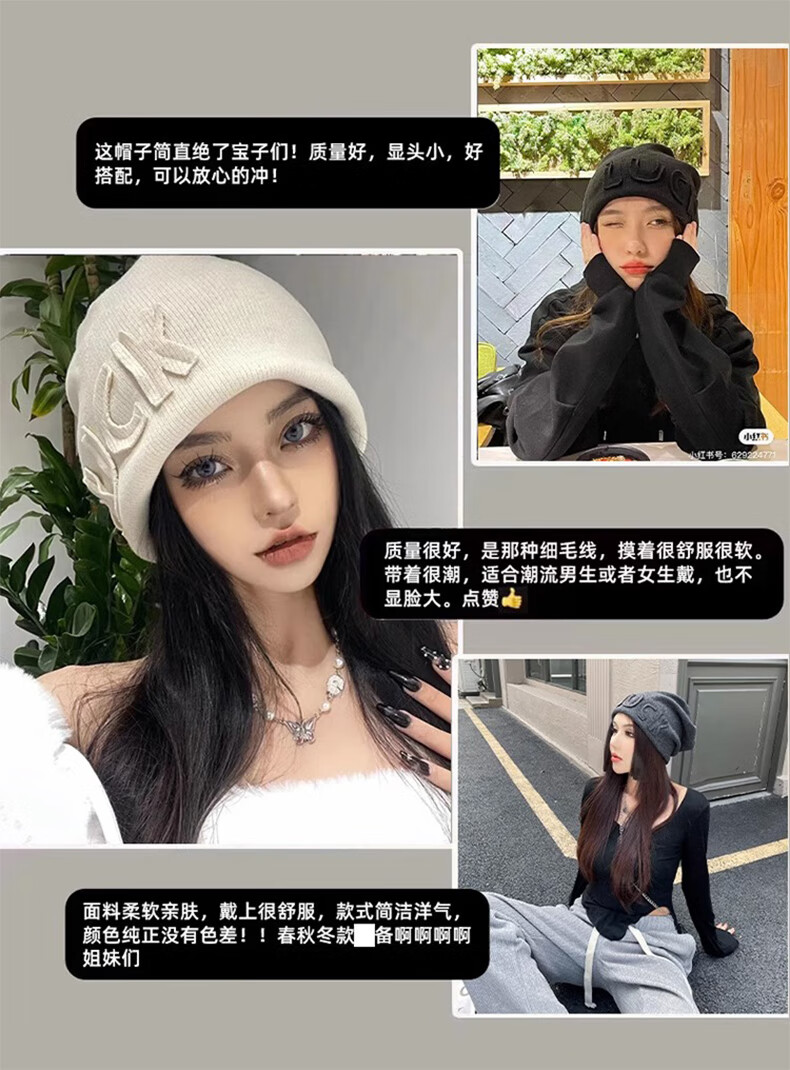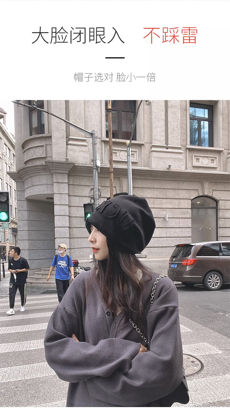 Xue Qianman Hat Women's Autumn and Winter Style Pile Hat Letters Versatile Thickened Warm Knitted Wool Hat Plus Velvet Baotou Hat