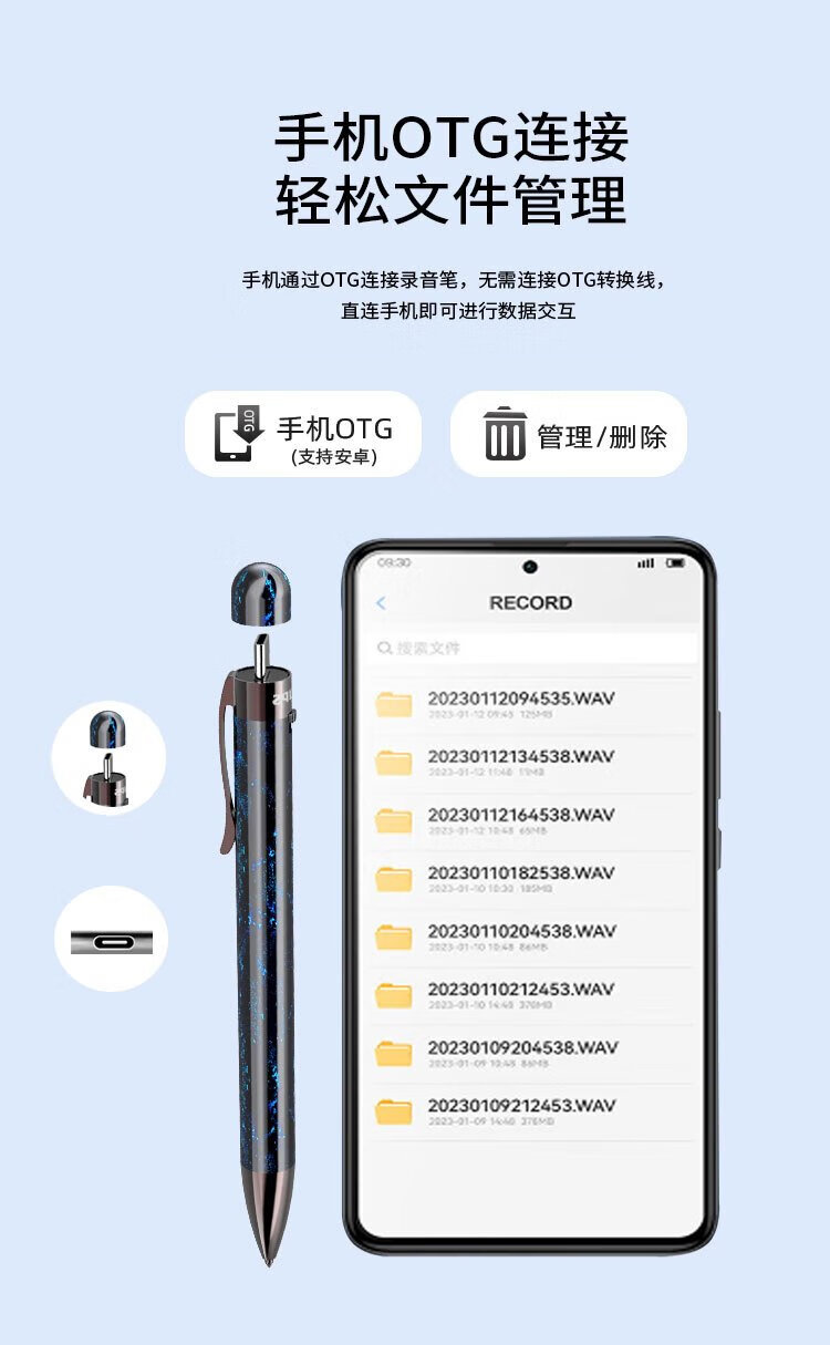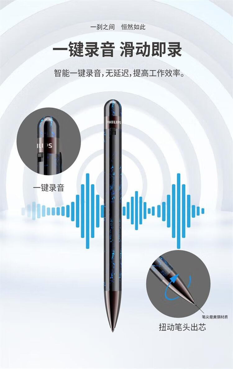 Philips (PHILIPS) pen recorder VTR5900Pro Bluetooth version 16G pen type professional text conversion high-definition noise reduction portable small conference lawyer portable writing and evidence collection one-click recorder