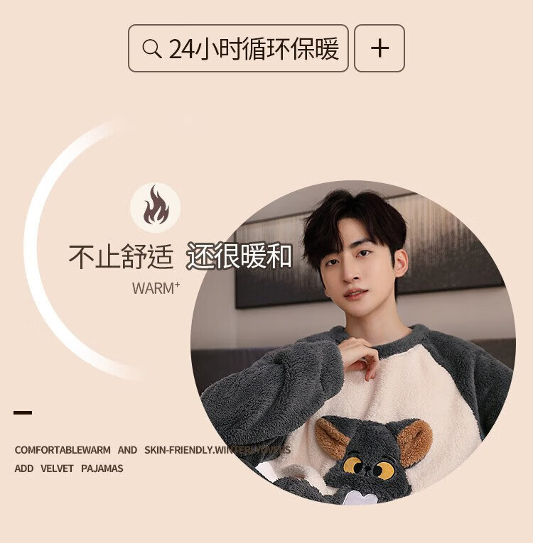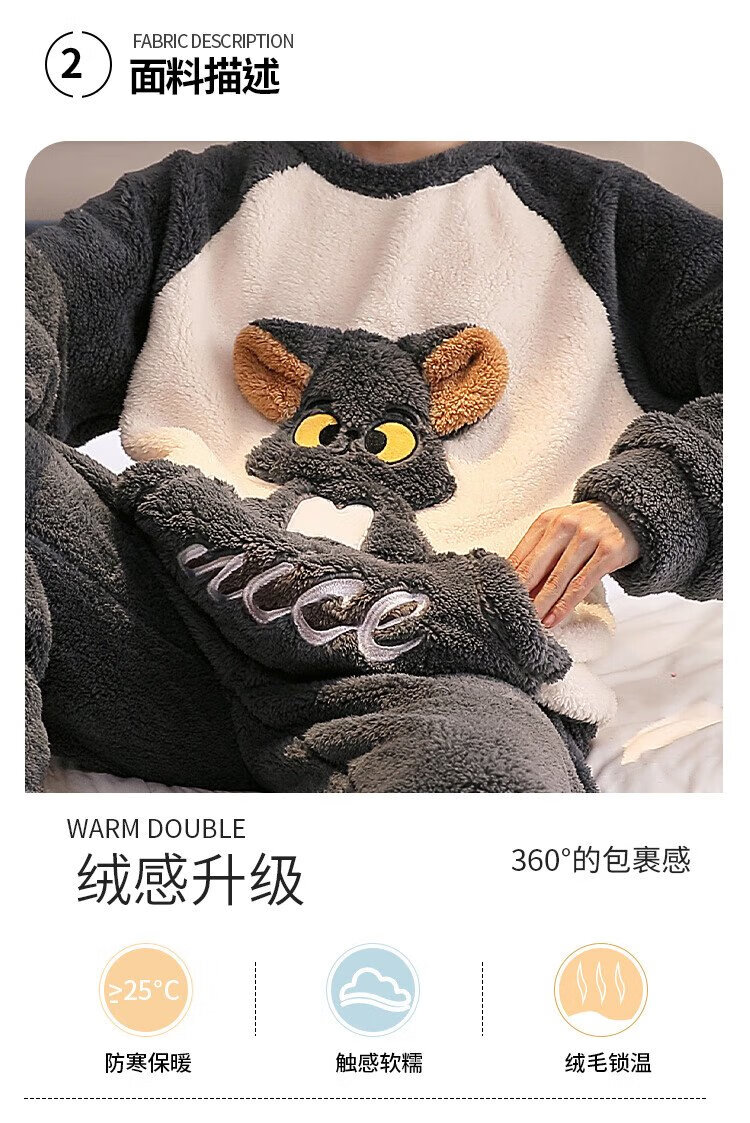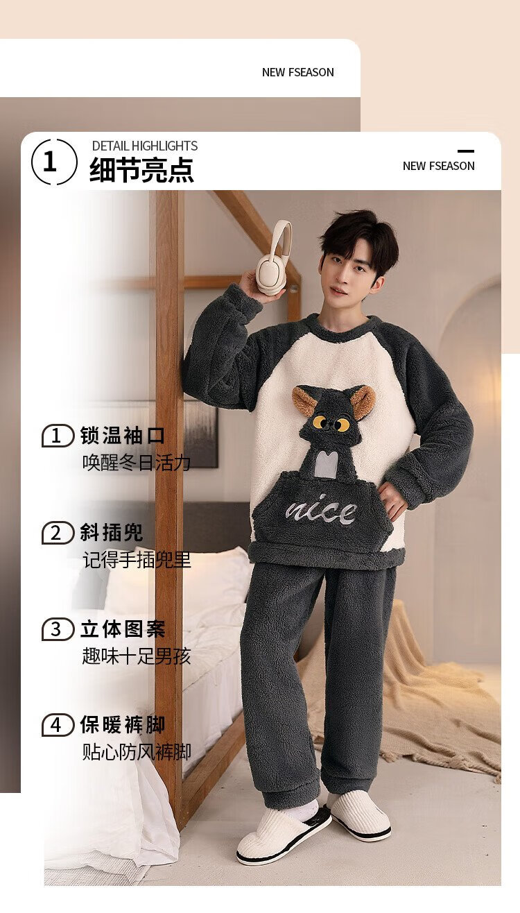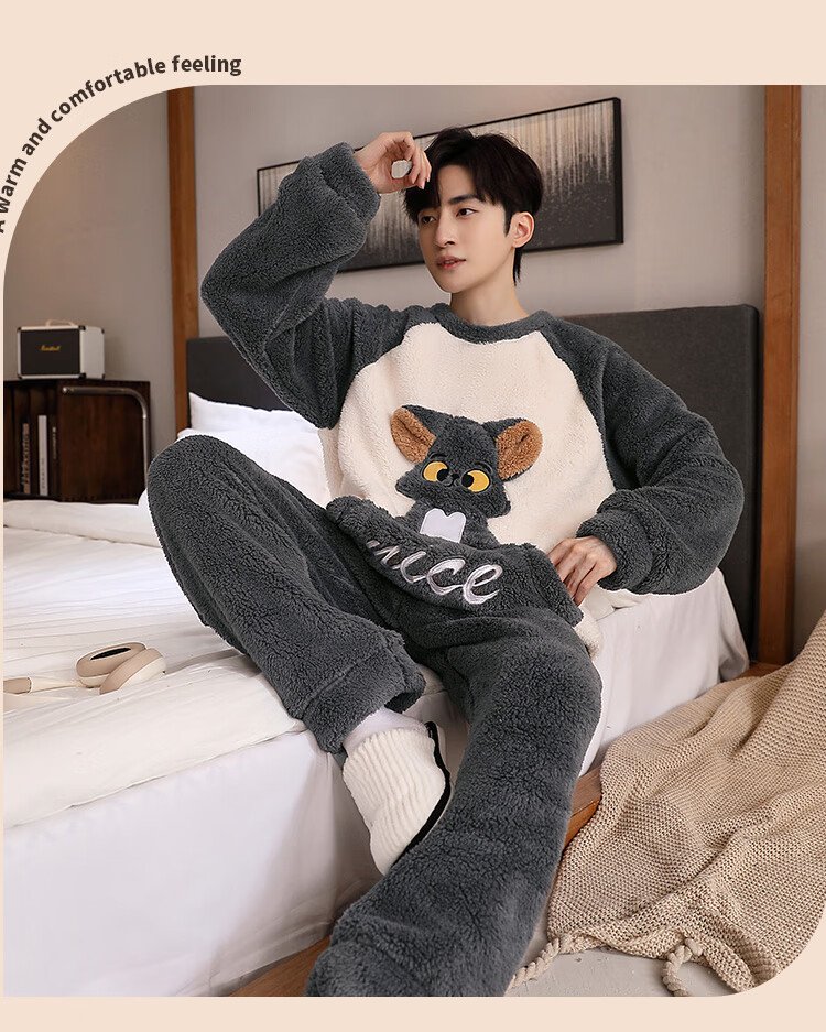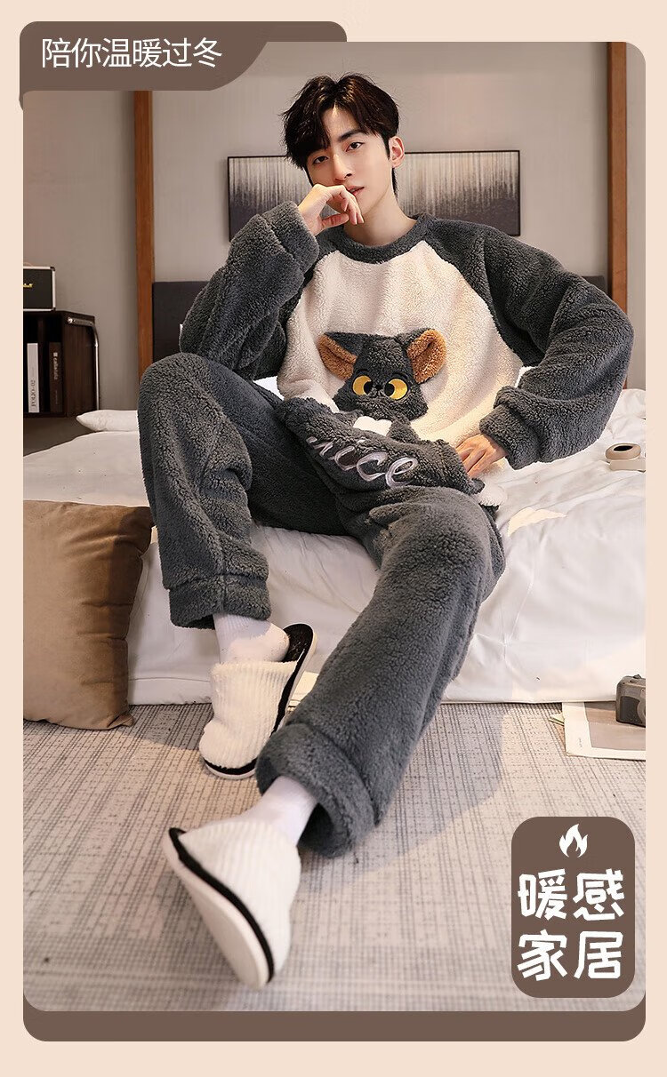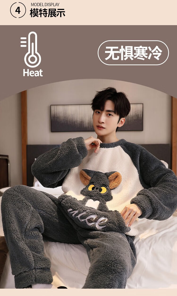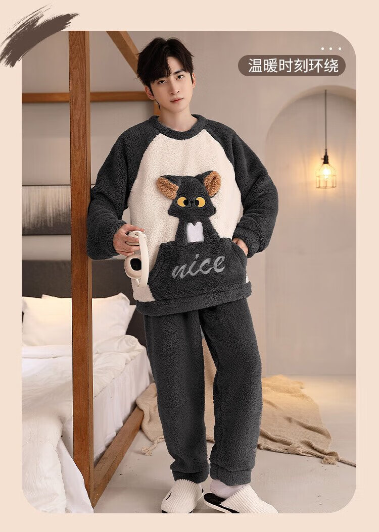 Antarctic Men's Pajamas Men's Autumn and Winter Plus Velvet Thickened Pullover Flannel Home Clothes Can Be Weared Outside Pajamas Cartoon XL