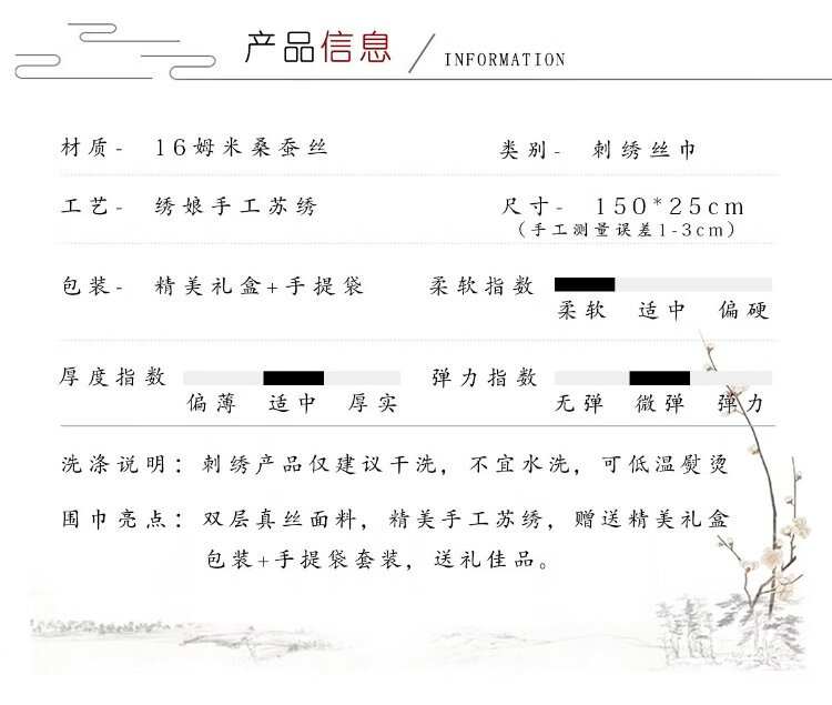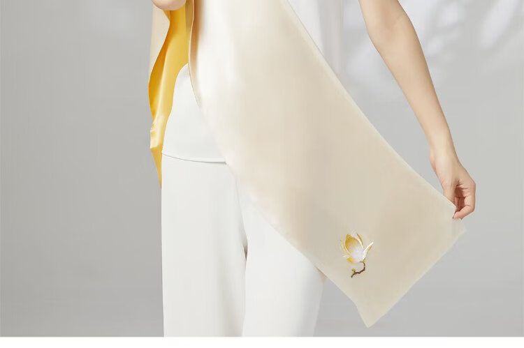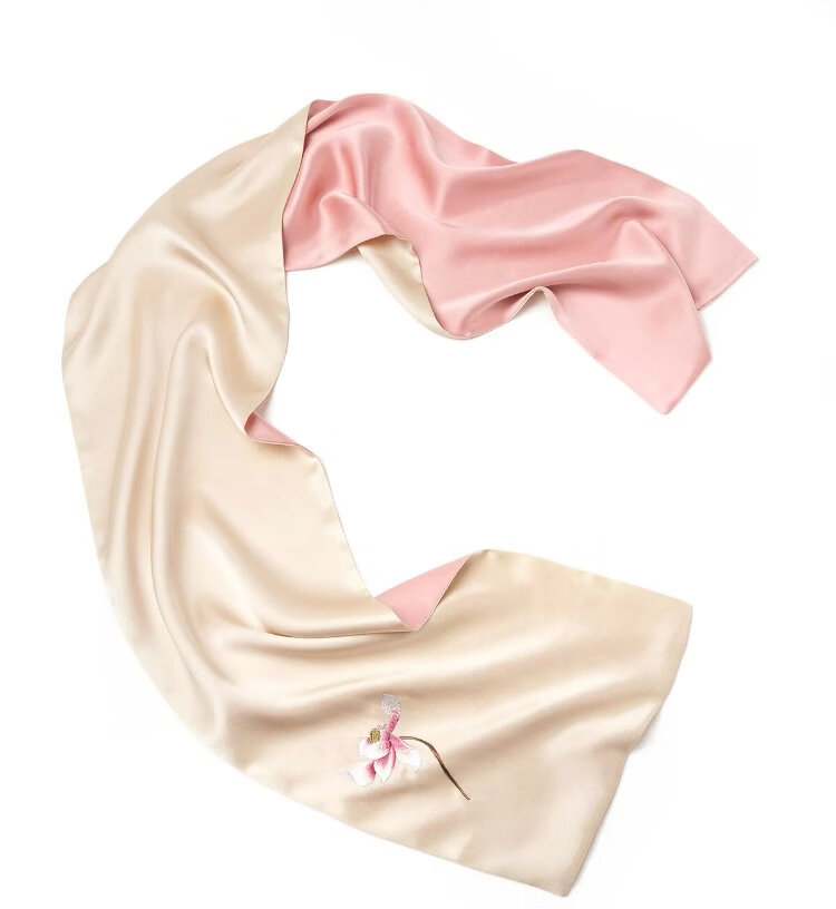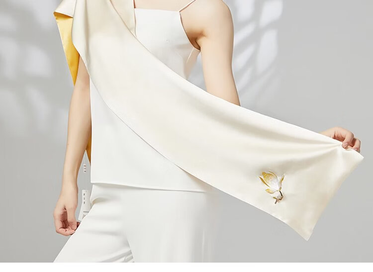Zhijinlou embroidered silk scarf for women, mulberry silk double layer handmade Suzhou embroidery scarf, Chinese style light luxury silk shawl birthday gift