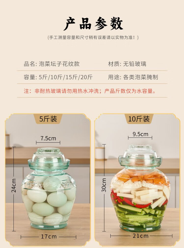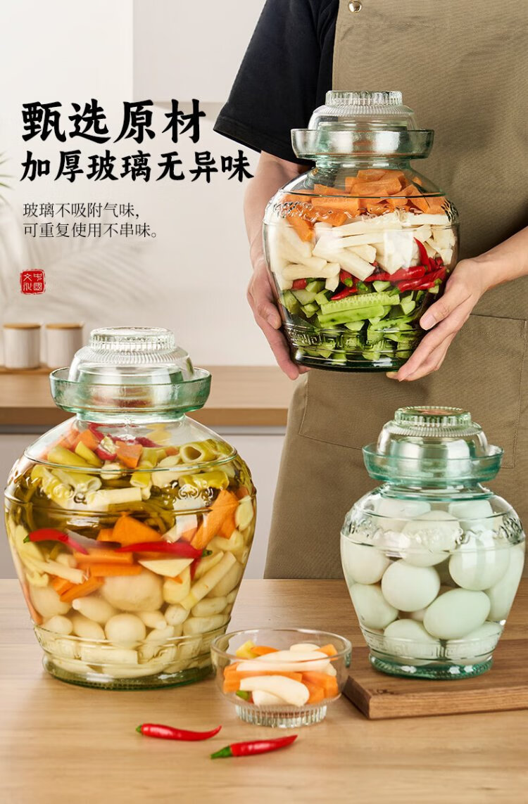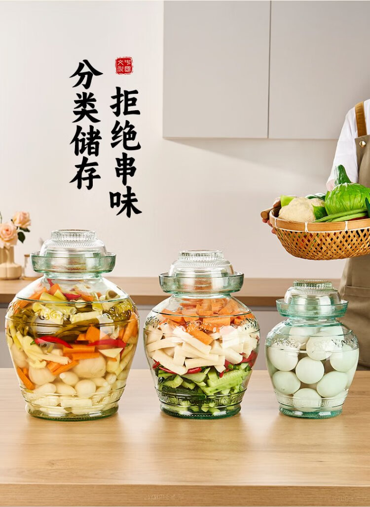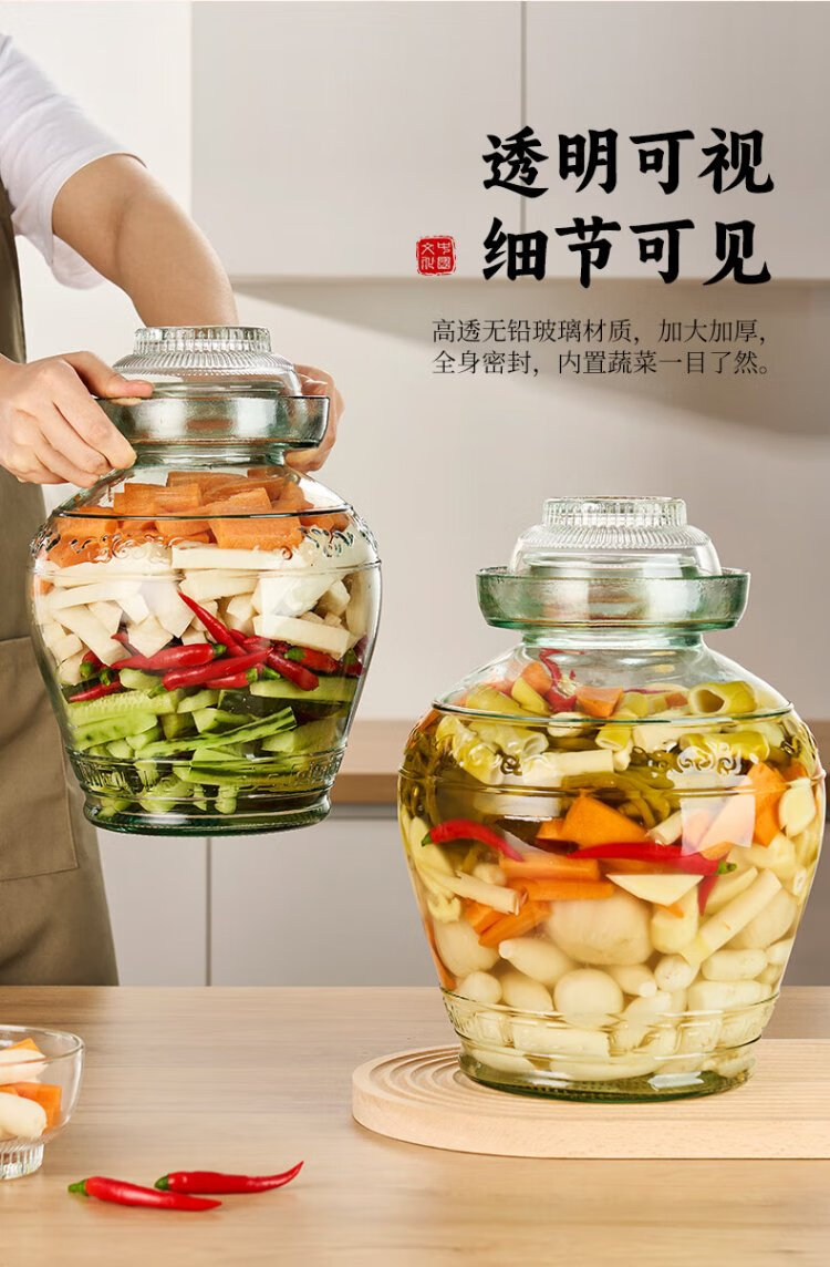 Tianxi (TIANXI) kimchi jar household 15 Jin Jin equal to 0.5 kg thickened sealed round mouth pickle jar pickled egg jar soaking wine bottle glass bottle kimchi jar
