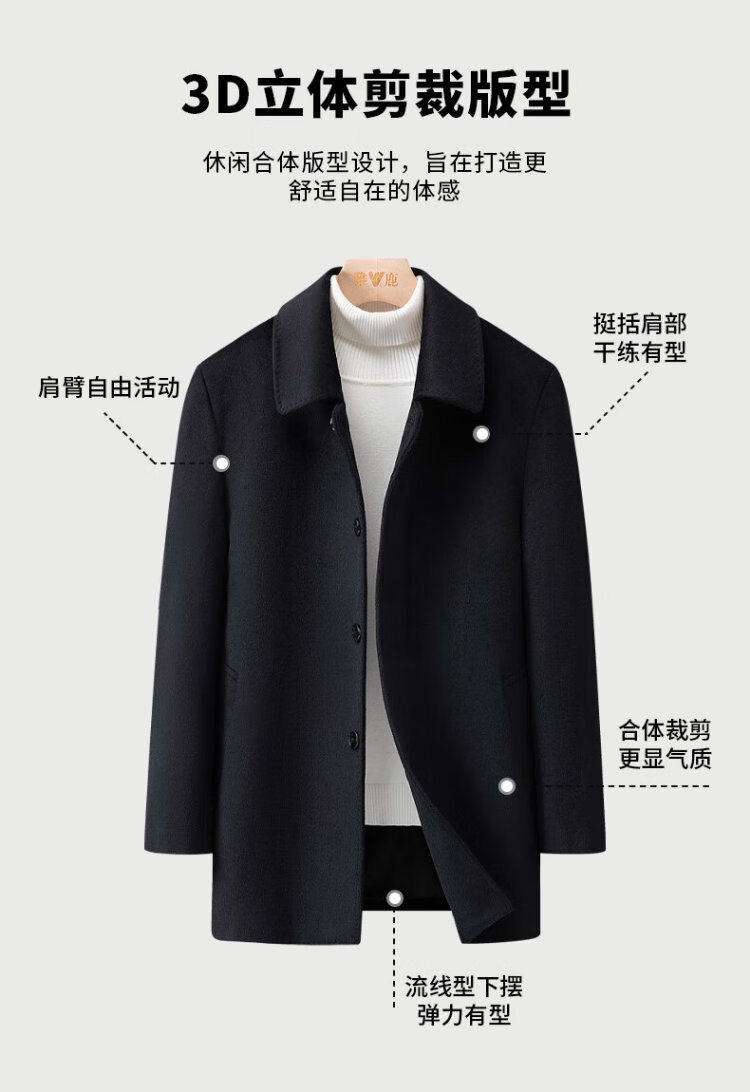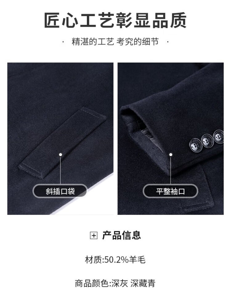 Yalu Sheep Wool Woolen Coat Men's Mid-Length Autumn and Winter Jacket Casual Warm Dad Windbreaker Jacket