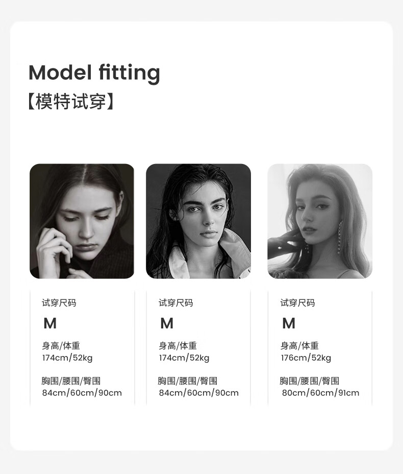 China (cm) 160-165/84-86 165-170 / 88-90 167-172 / 92-96 168-173 / 98-102 170-176 / 106-110