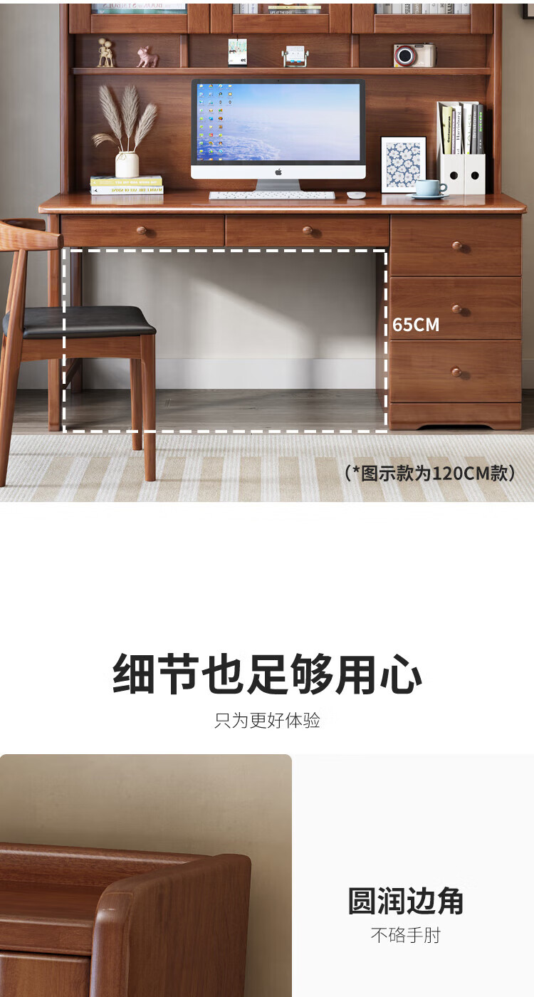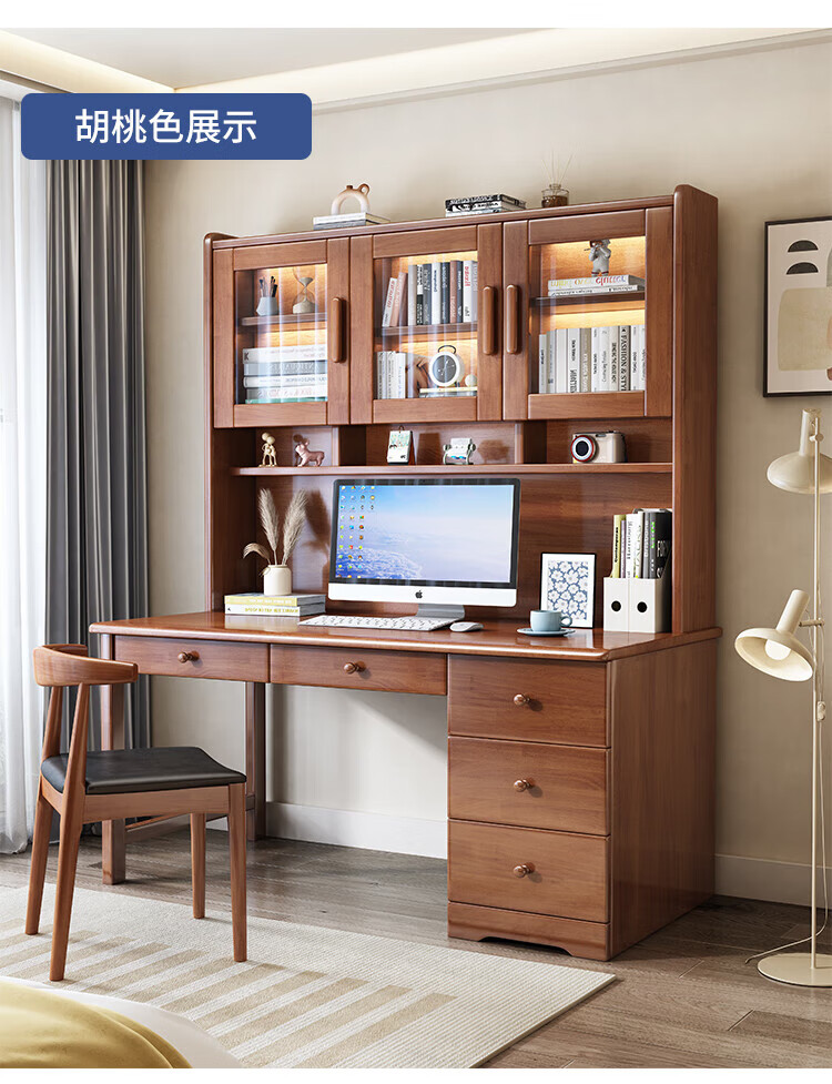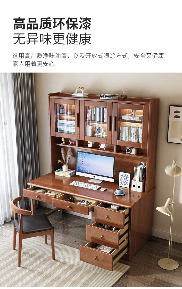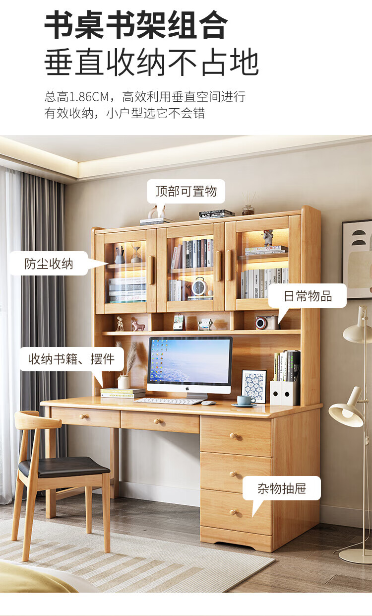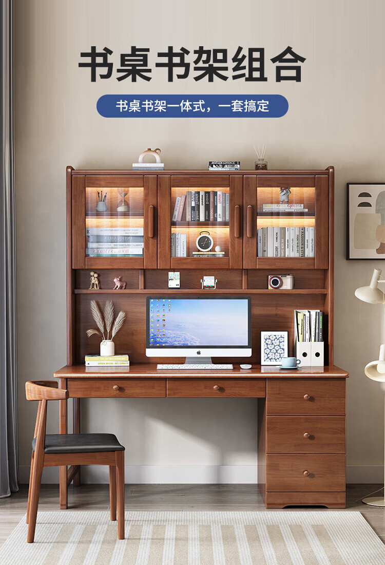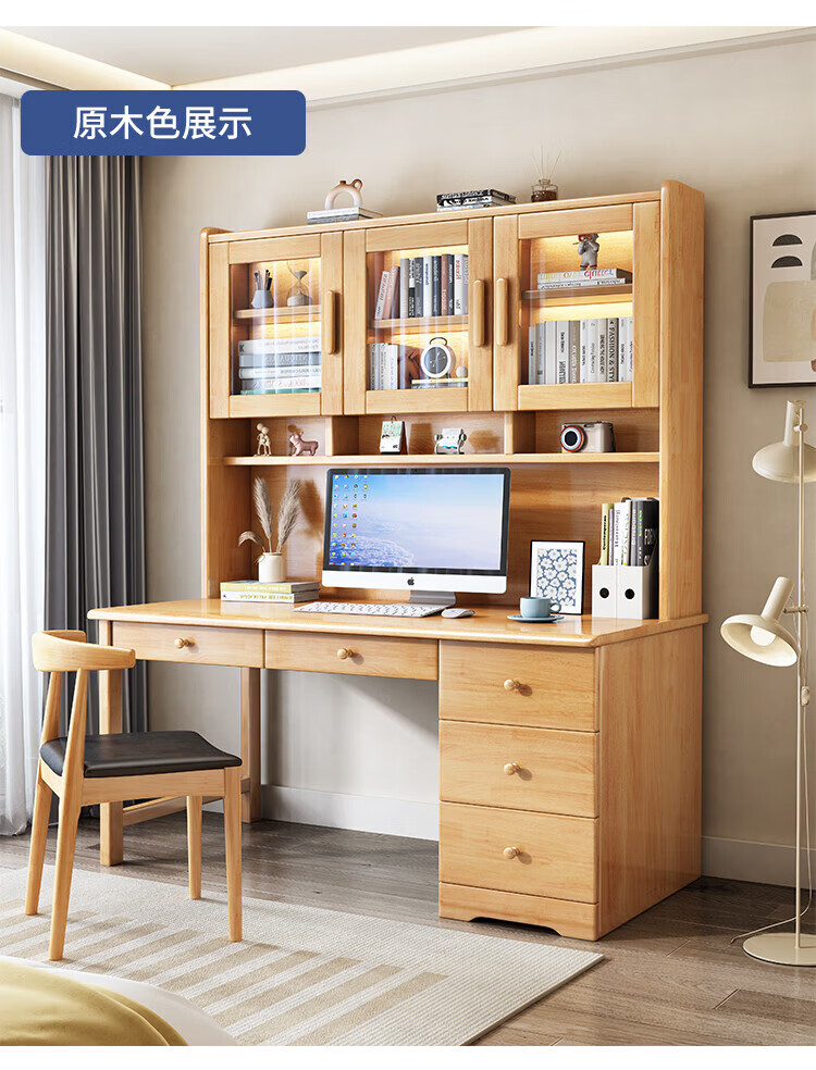 ZHONGWEI self-operated solid wood bookshelf desk bookshelf integrated rubber wood desk Nordic style home student 1.2 meter computer desk