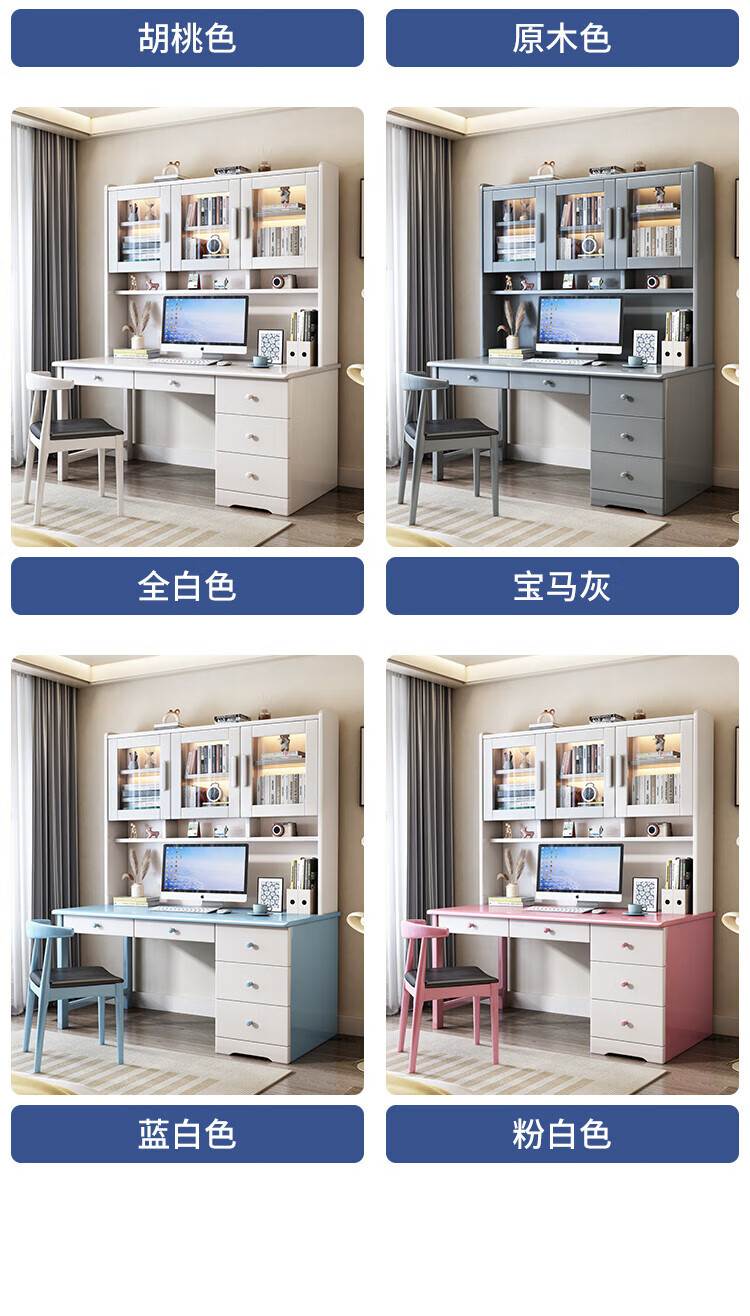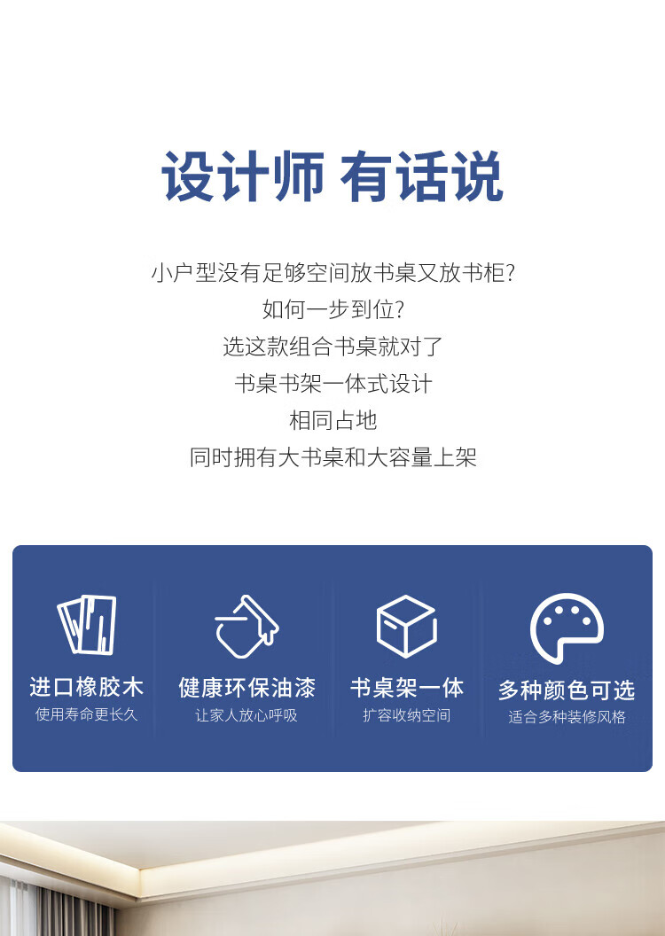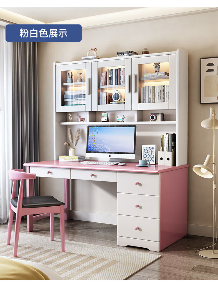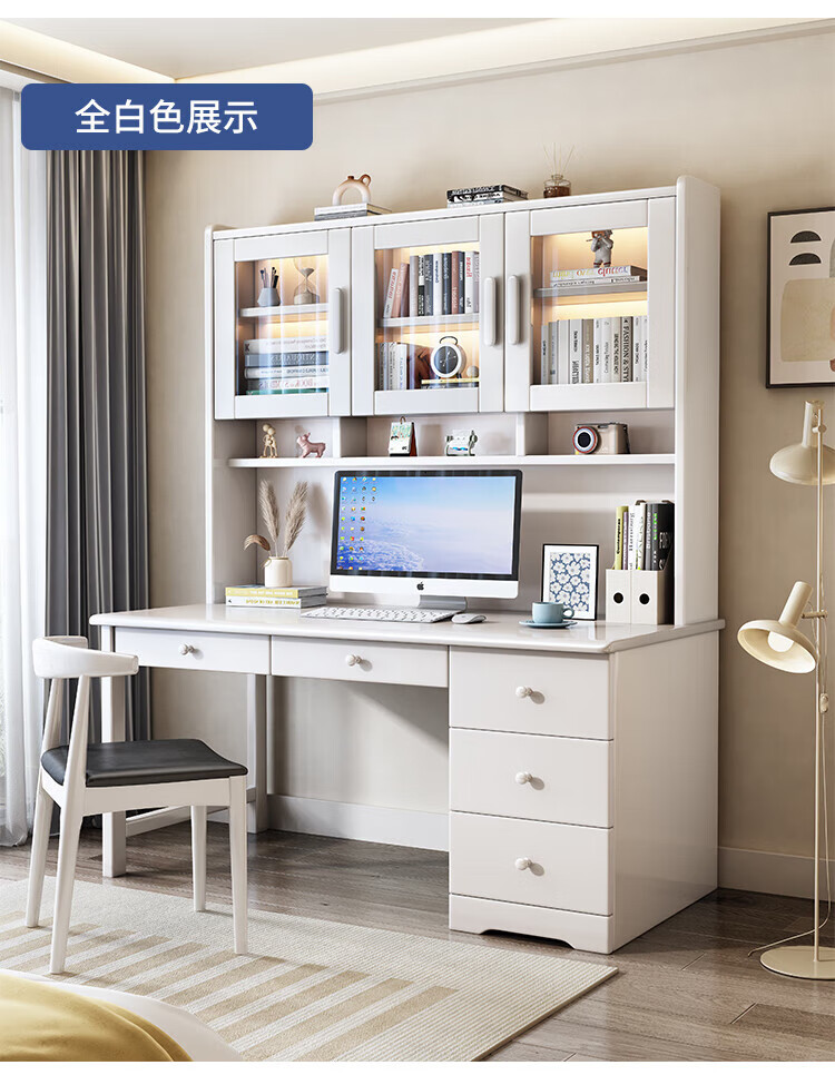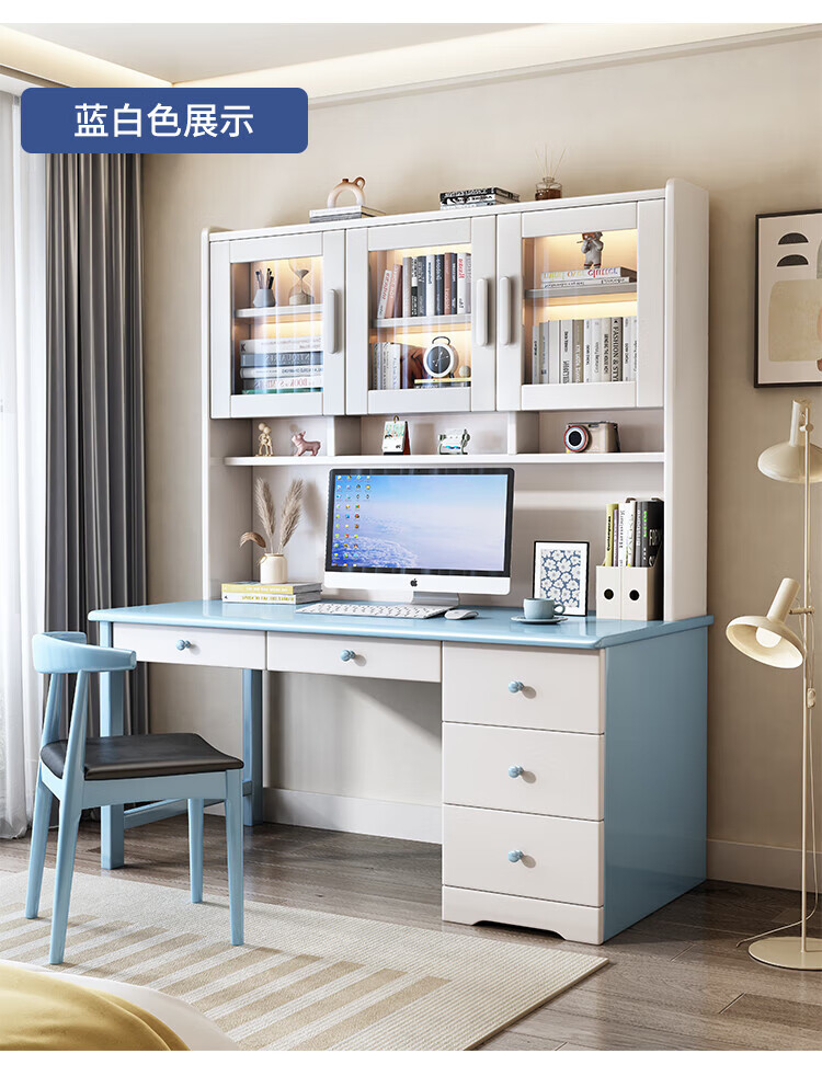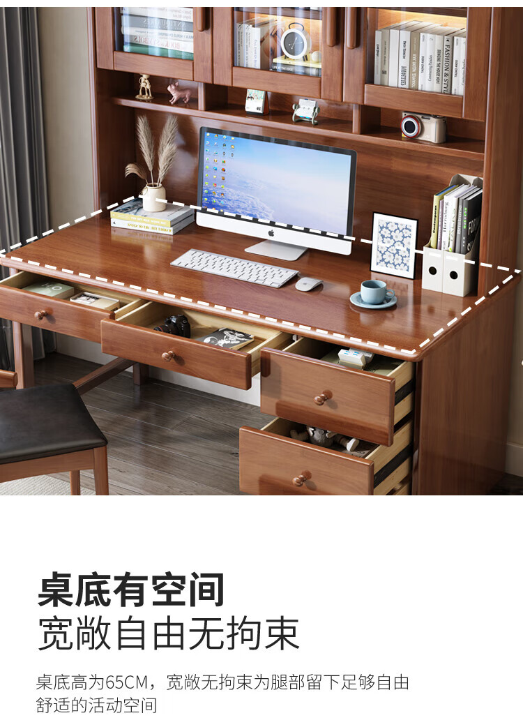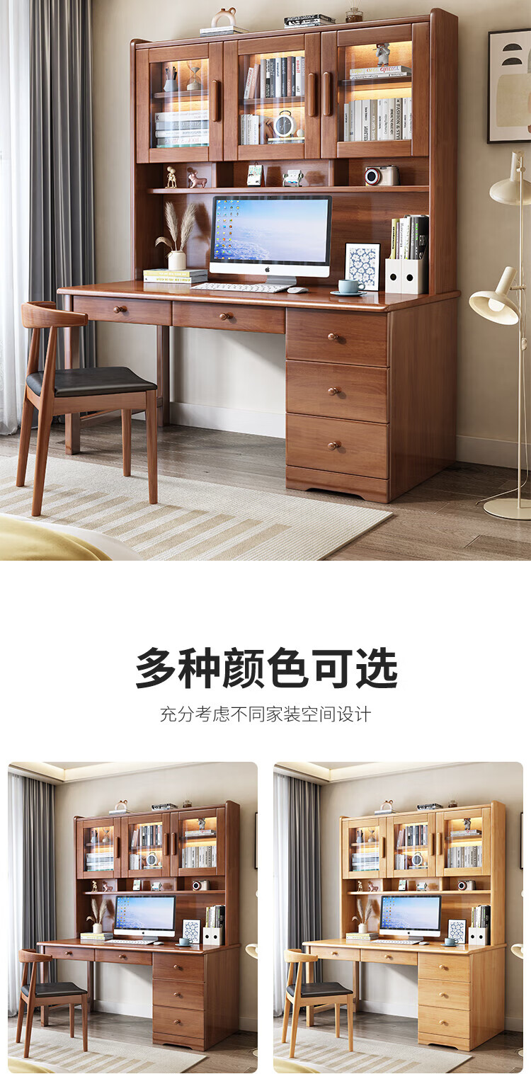 ZHONGWEI self-operated solid wood bookshelf desk bookshelf integrated rubber wood desk Nordic style home student 1.2 meter computer desk