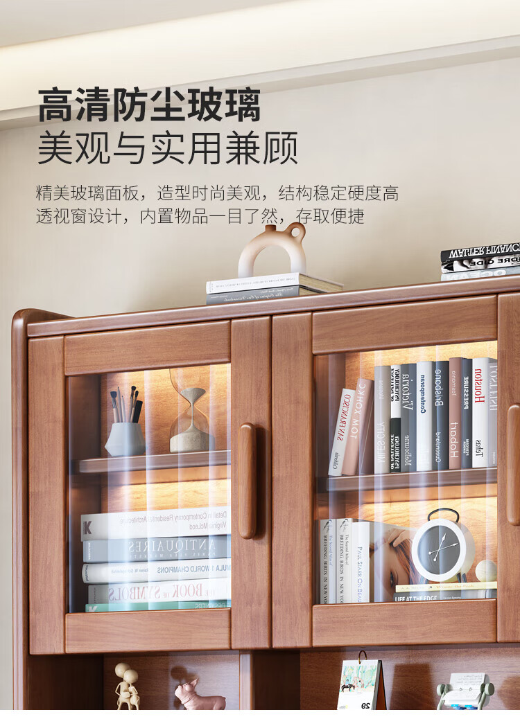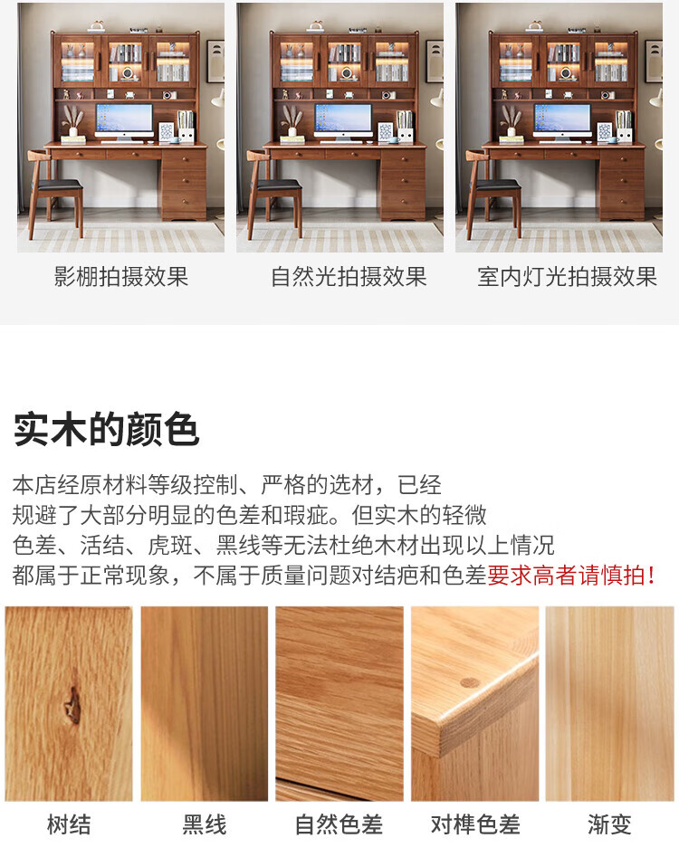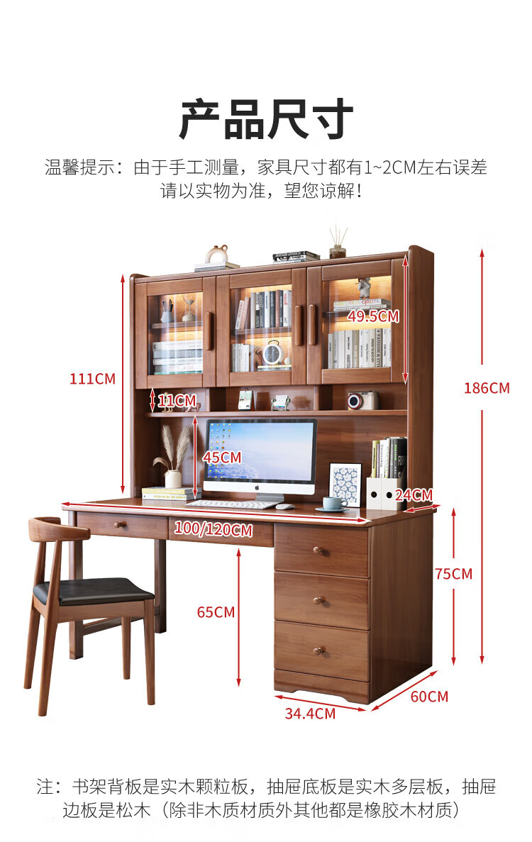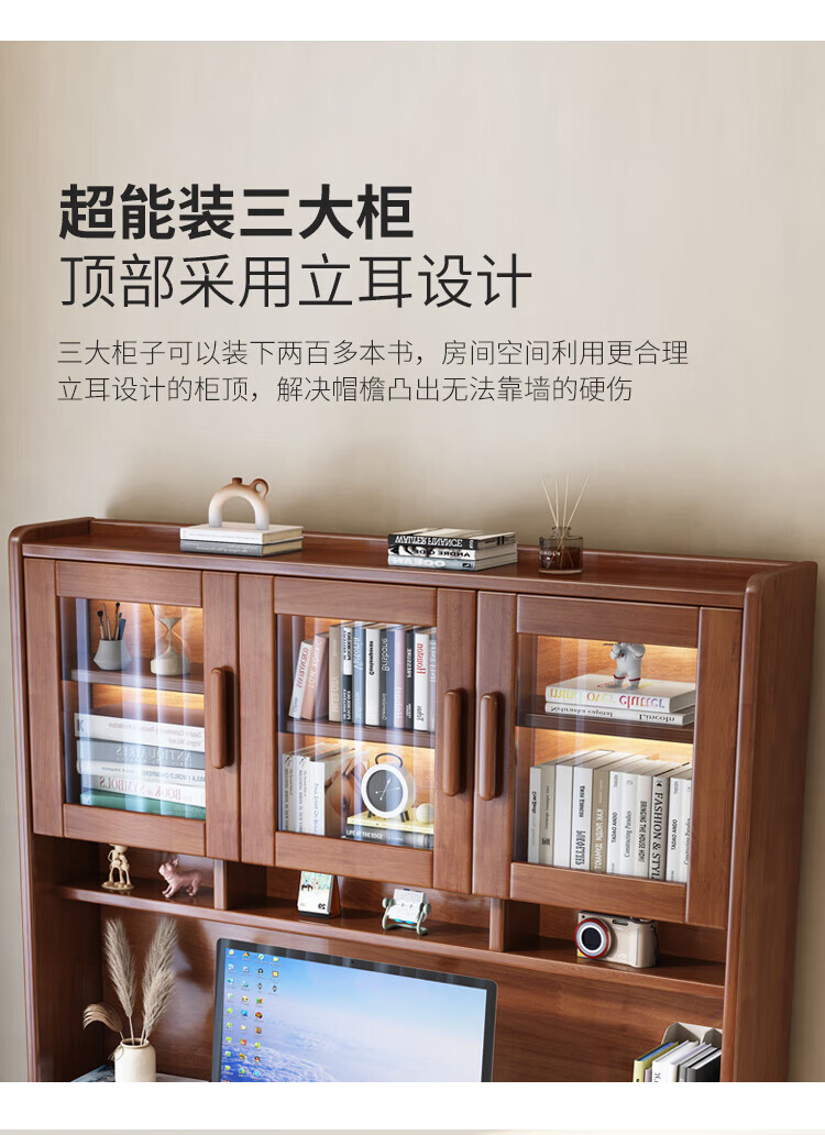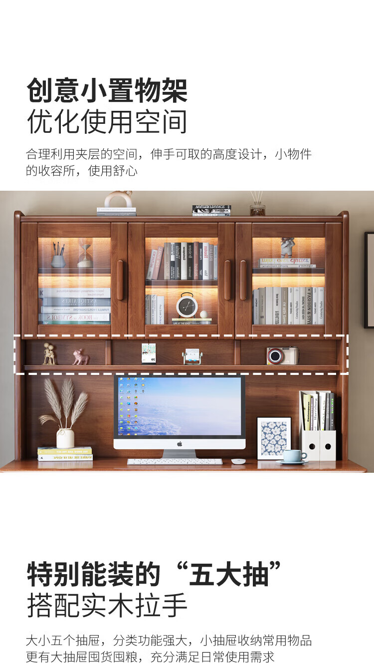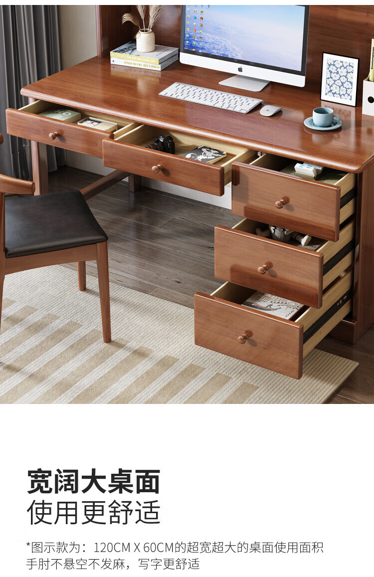 ZHONGWEI self-operated solid wood bookshelf desk bookshelf integrated rubber wood desk Nordic style home student 1.2 meter computer desk
