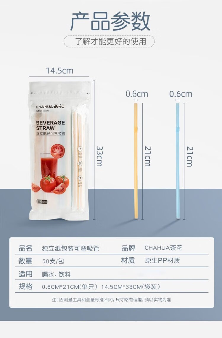 Camellia disposable straws, individually packaged, bendable milk tea coffee stirrers, food grade, children, elderly and pregnant women, 50 pieces