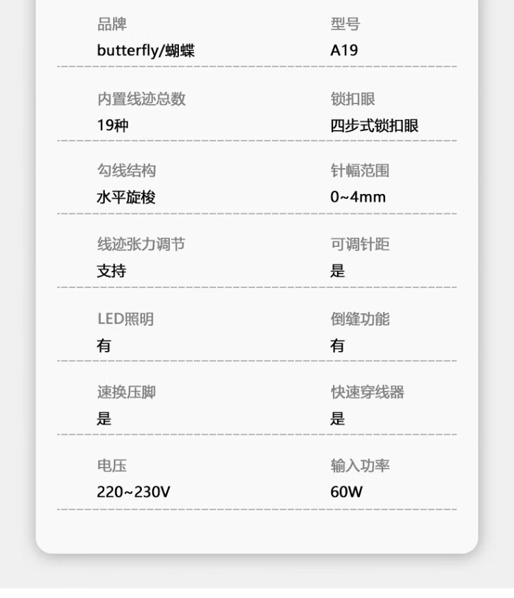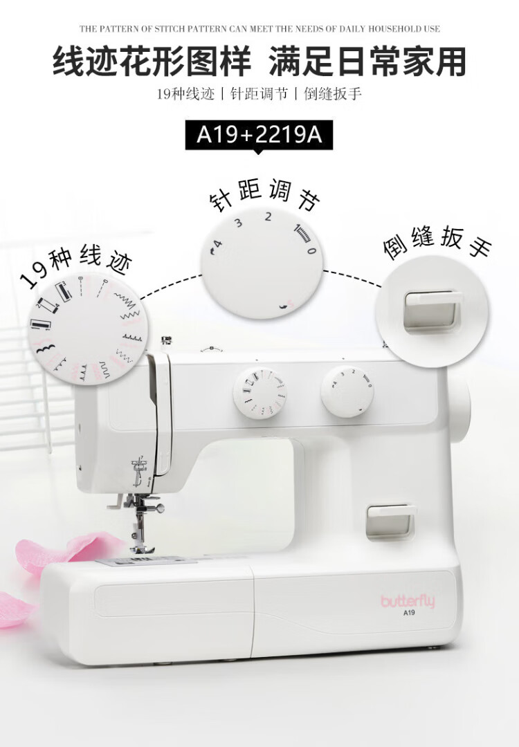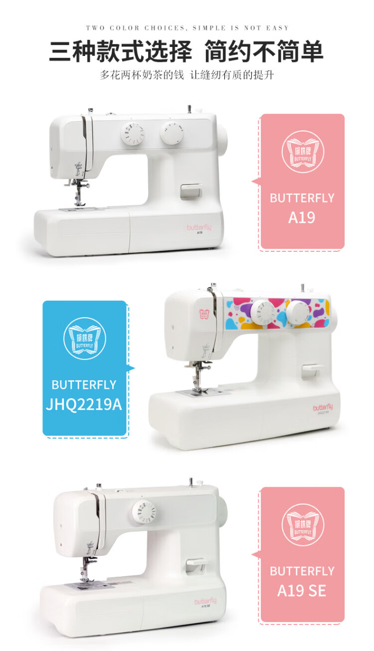 BUTTERFLY A19 household electric multi-functional desktop bass butterfly sewing machine for thick and thin multi-stitch with expansion board