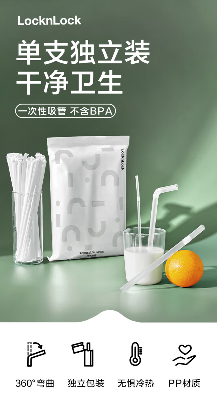 Lock and Lock disposable straws individually packaged milk tea coffee drinks fruit juice pregnant women and children milk elbow thin straws