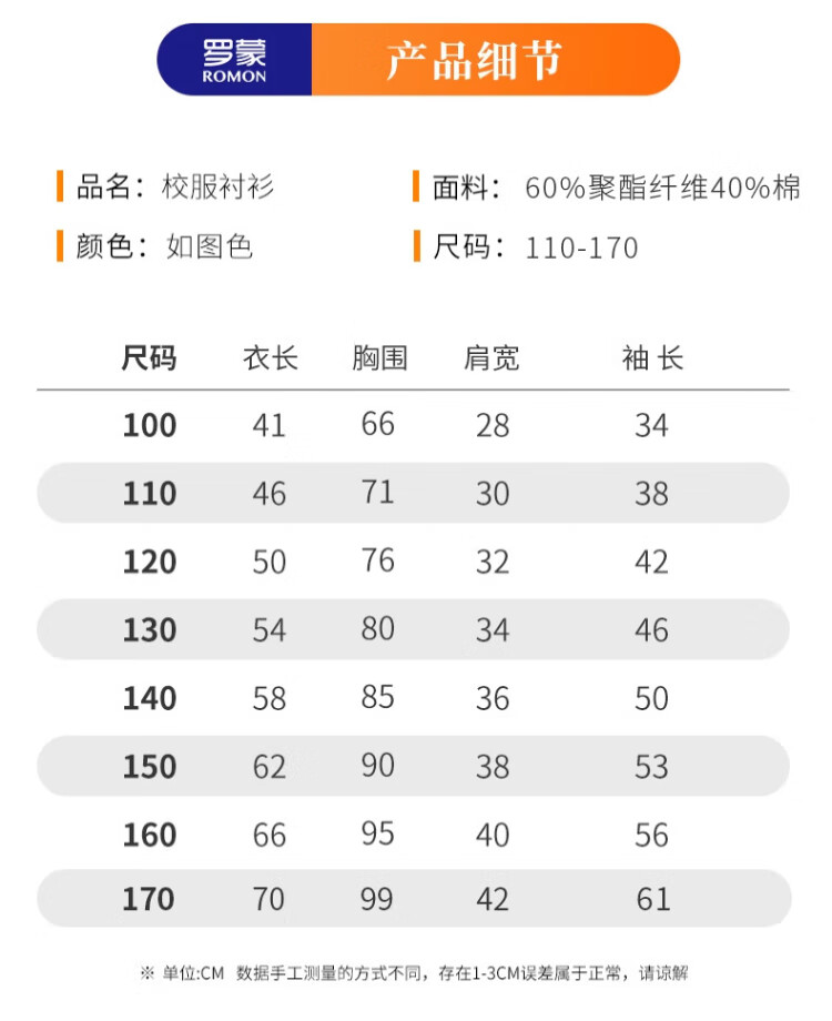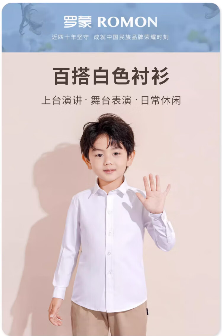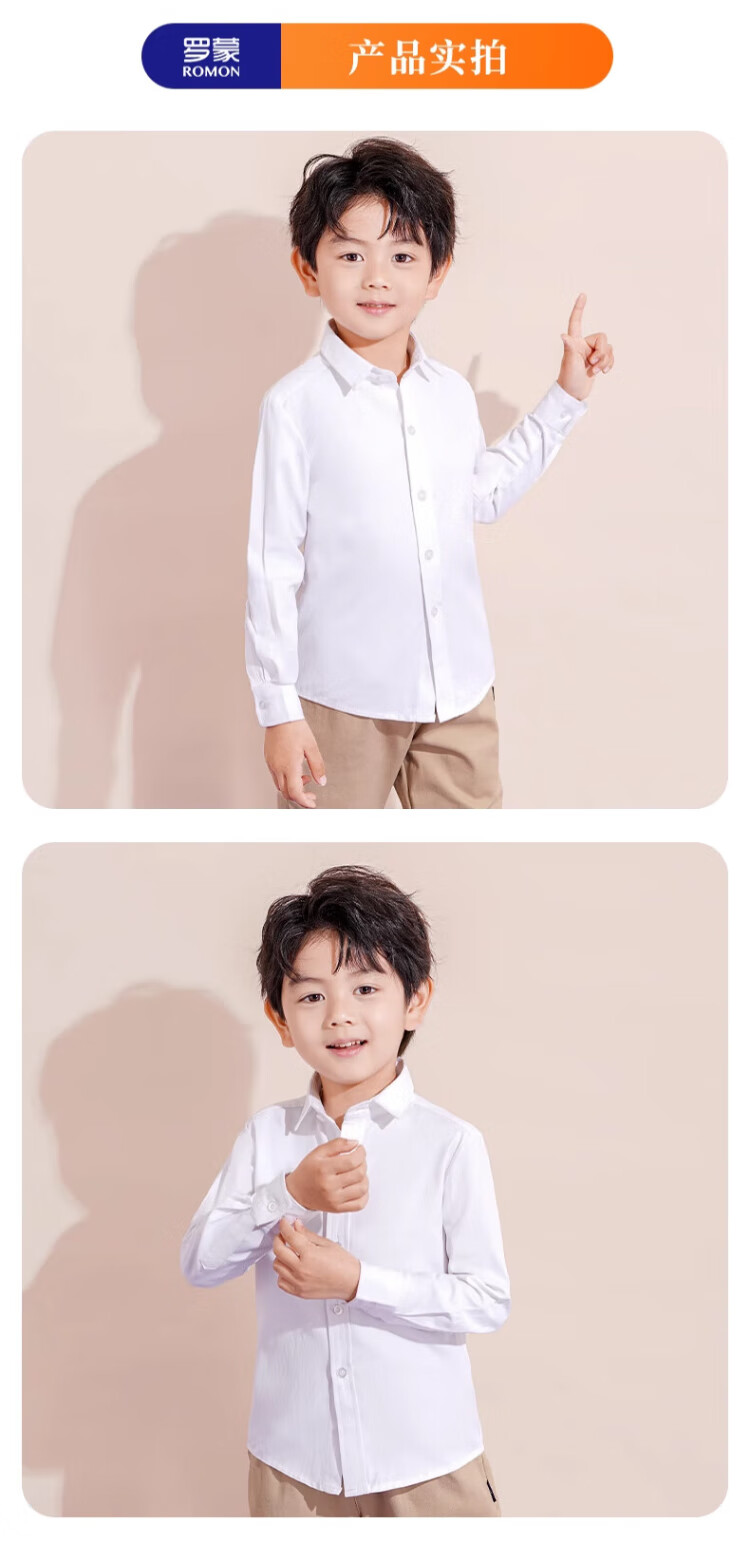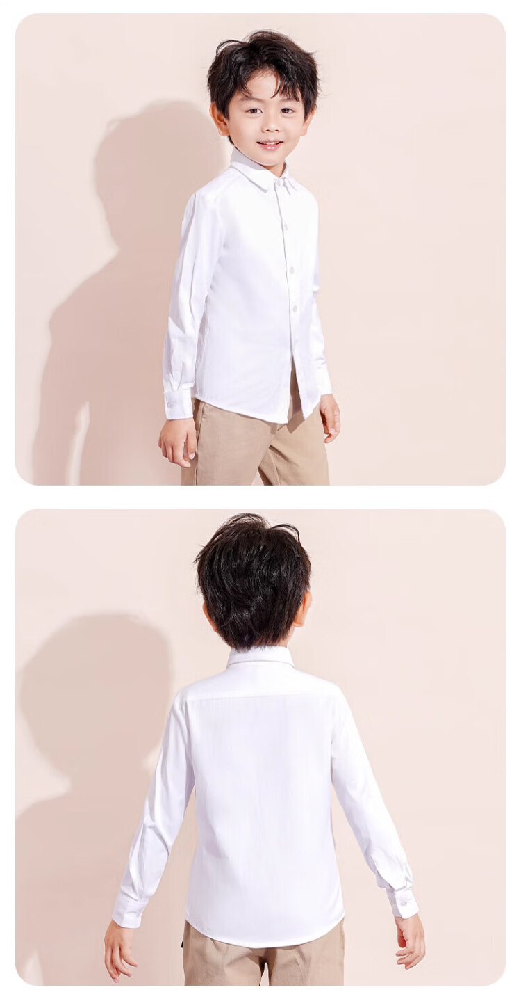 罗蒙儿童白衬衫男童女童长袖小学生表演校园服饰 白色 170