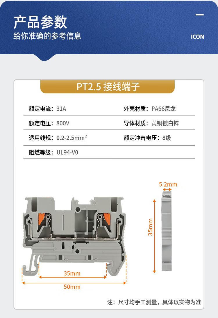 Andatong UK terminal block PT2.5 guide rail spring terminal block quick plug-in combined terminal block D-PT2.5 isolation plate 1 piece