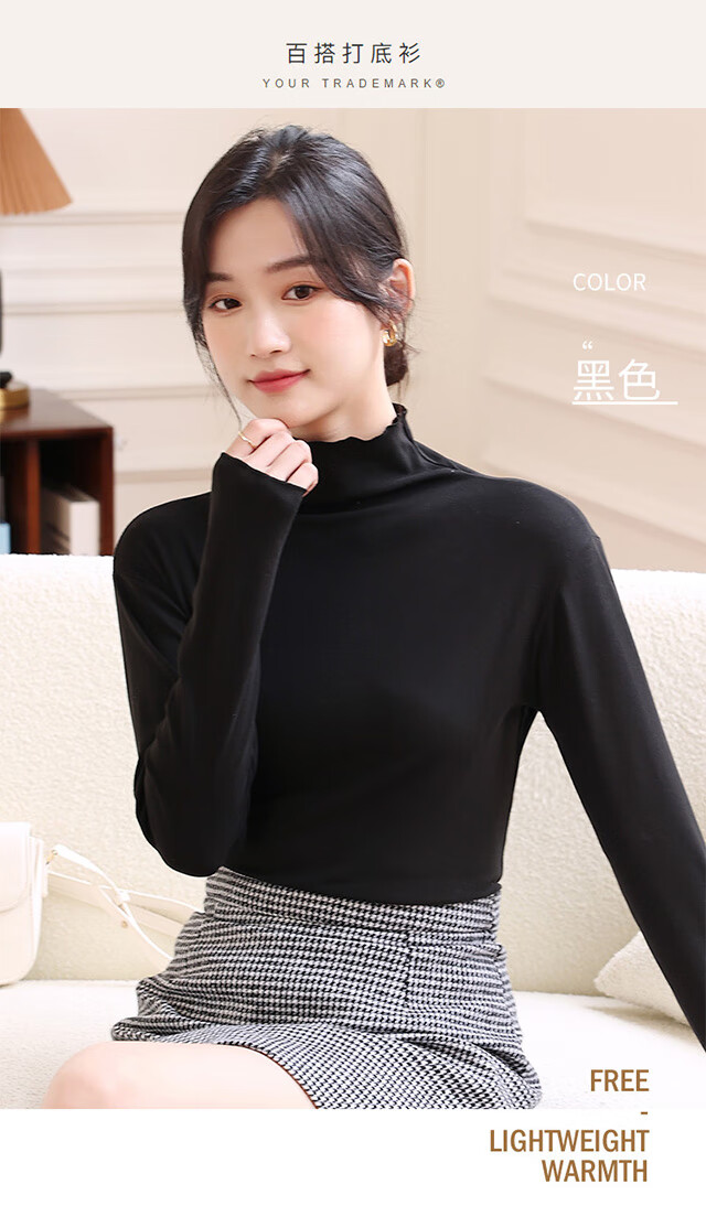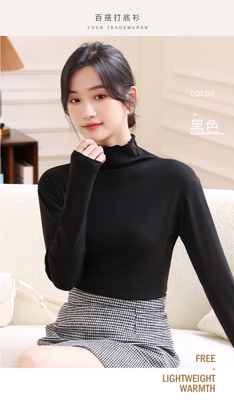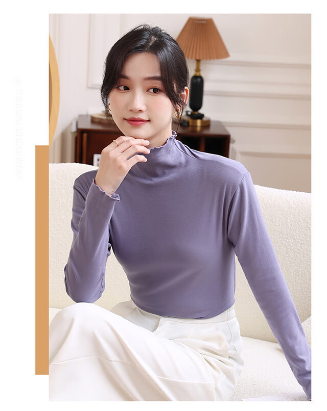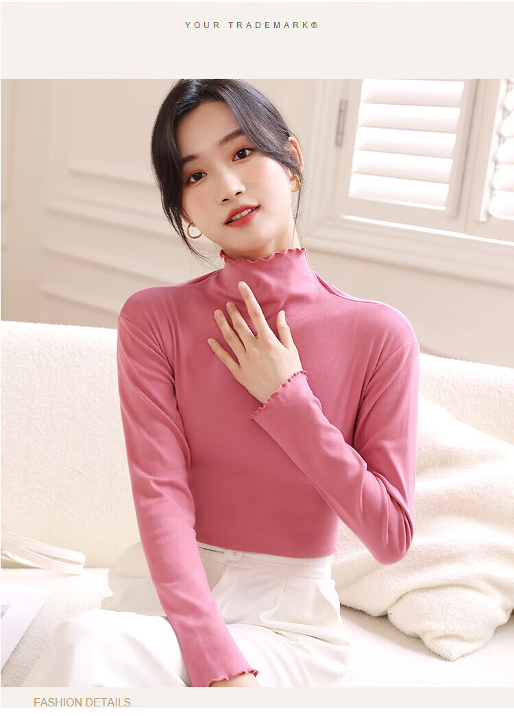 Langsha women's basic base layer lace solid color turtleneck long-sleeved autumn coat slim fit inner layer women's base layer shirt
