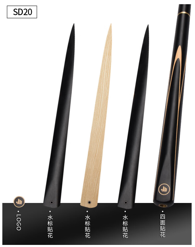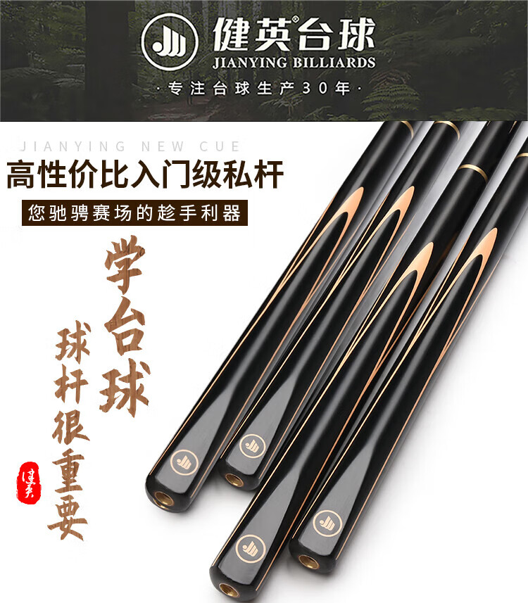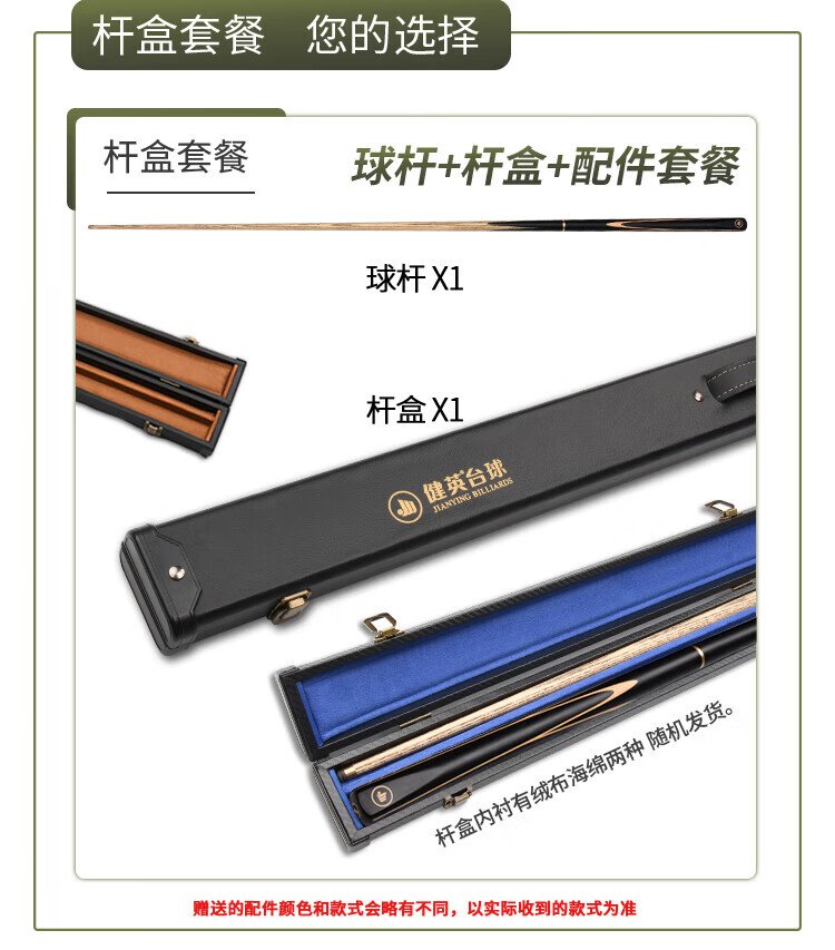 Jianying billiard cue small head split snooker cue black 8 eight Chinese style single cue box set 10.2mm Black Yao