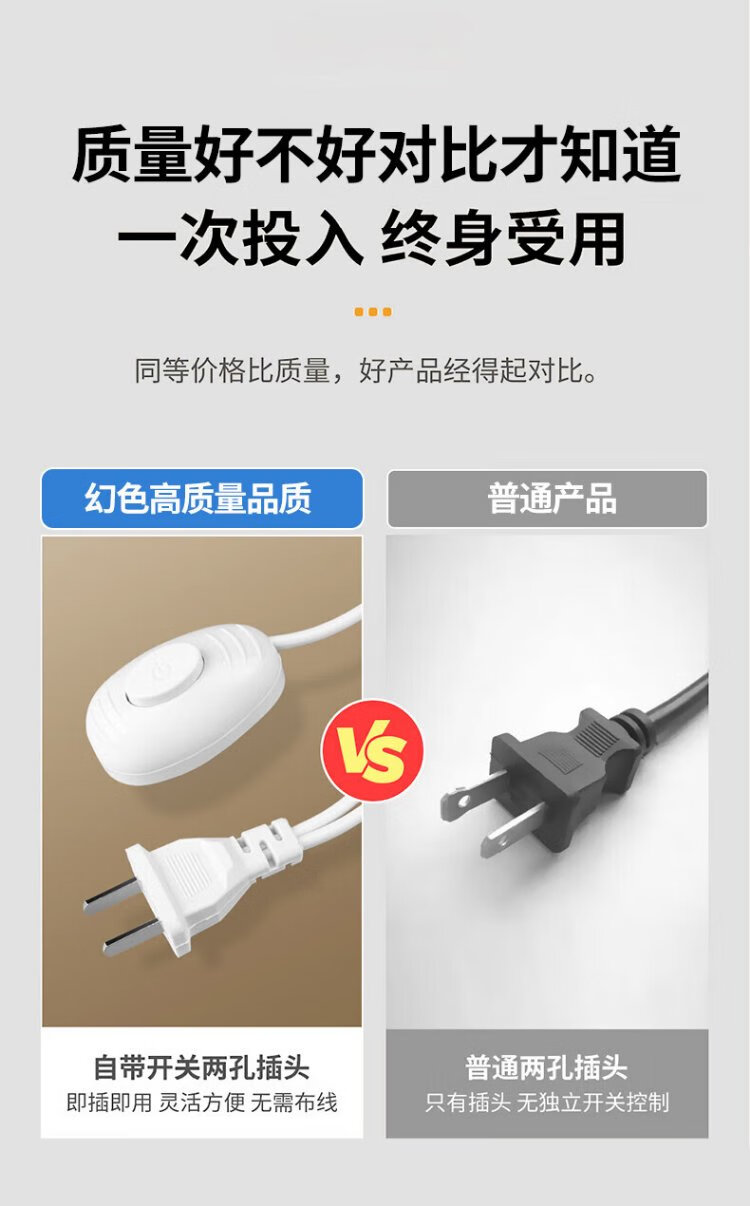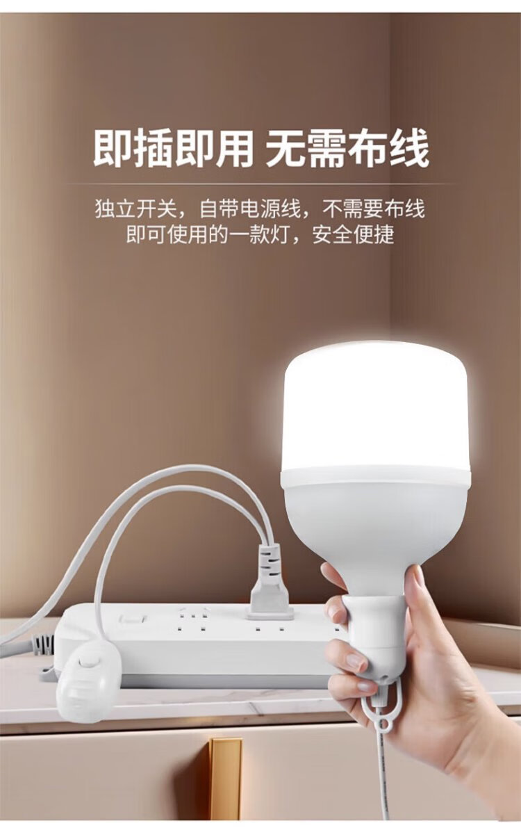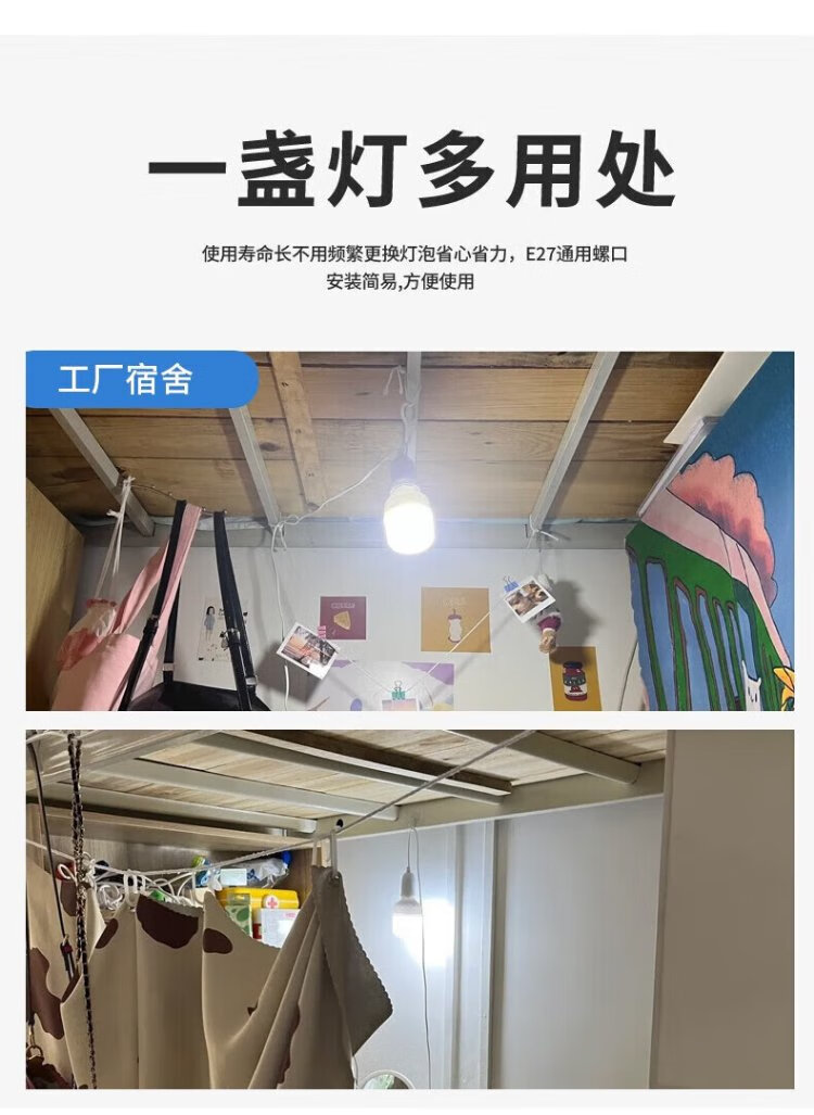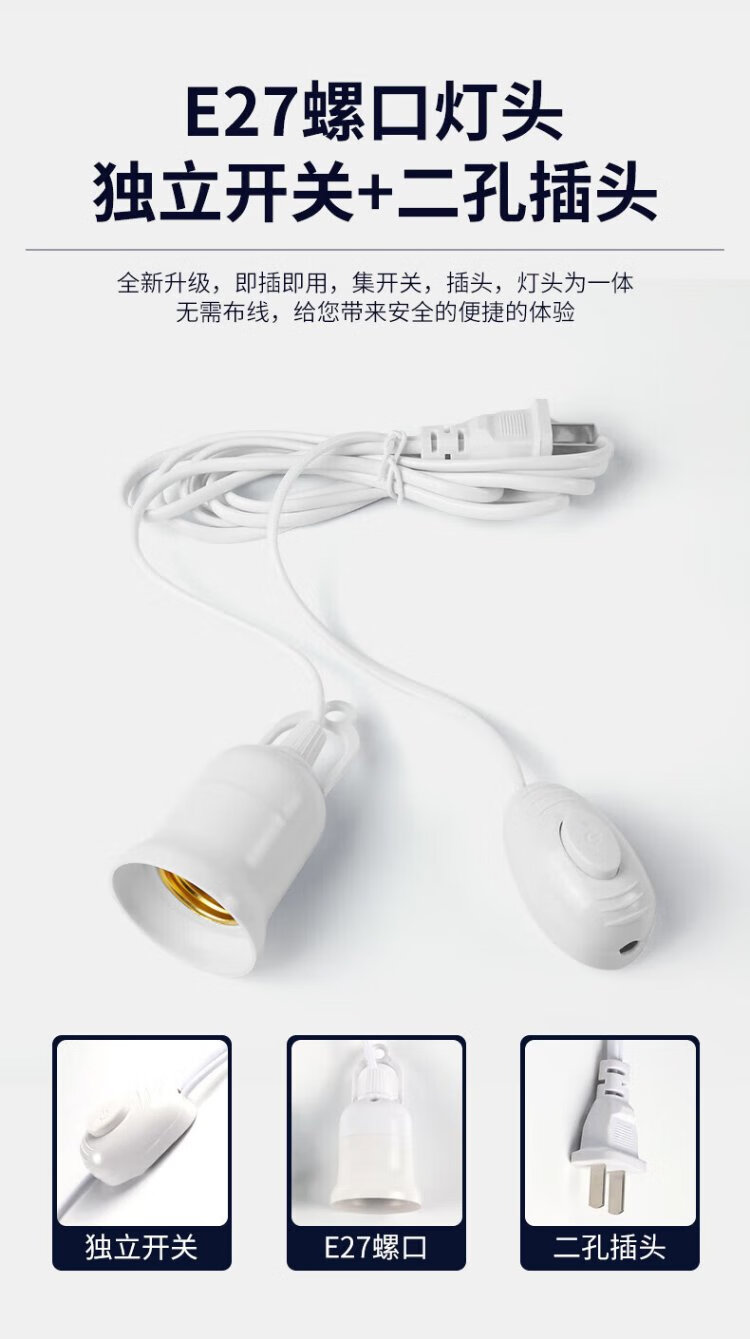 Magic color LED energy-saving lamp plug socket chandelier switch extension cord hanging college student dormitory integrated lamp with wire plug E27 screw socket two plugs 10 meters light cord + 1 40W light bulb