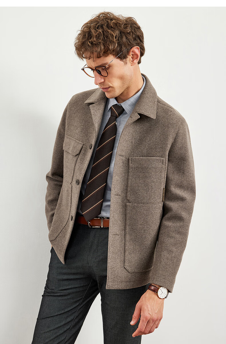 Septwolves woolen jacket men's autumn and winter woolen woolen material is thick, wide, easy to care for, warm business casual jacket