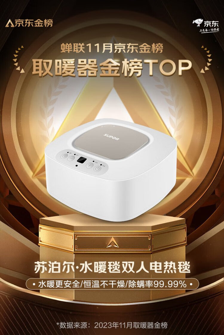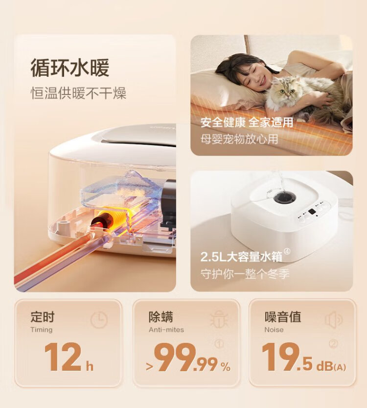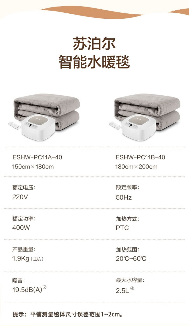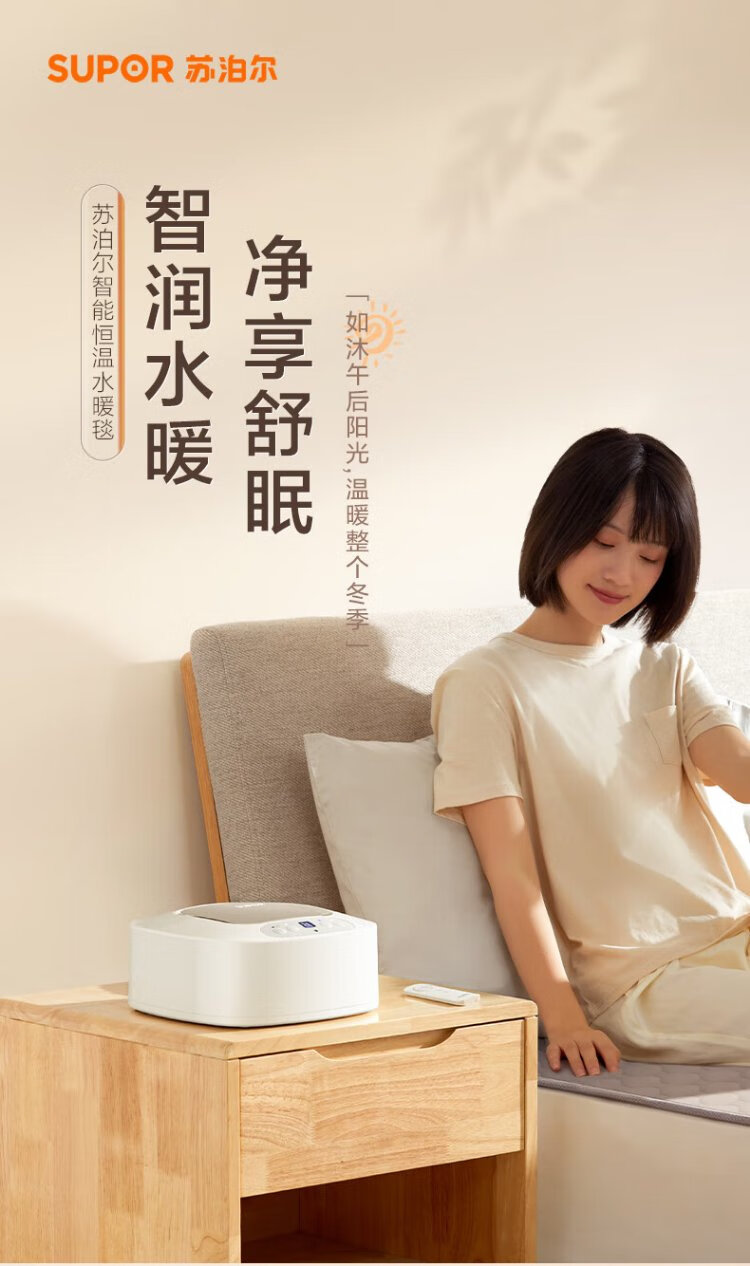 Supor Annual Gold List Product Water Heating Blanket Double Electric Mattress Home Temperature Dehumidification and Mite Removal Water Circulation Mattress Timed Constant Temperature Electric Blanket 1.8*2 Meter PC11B