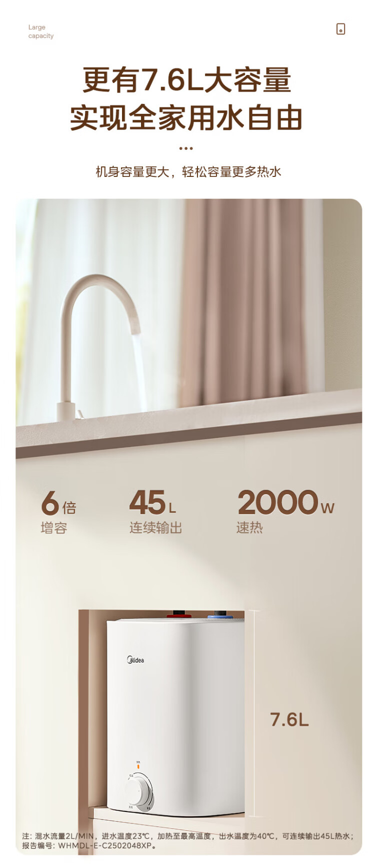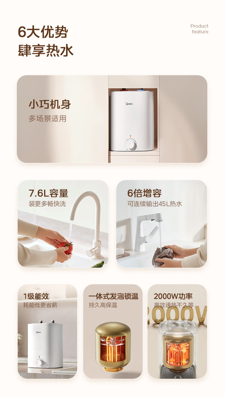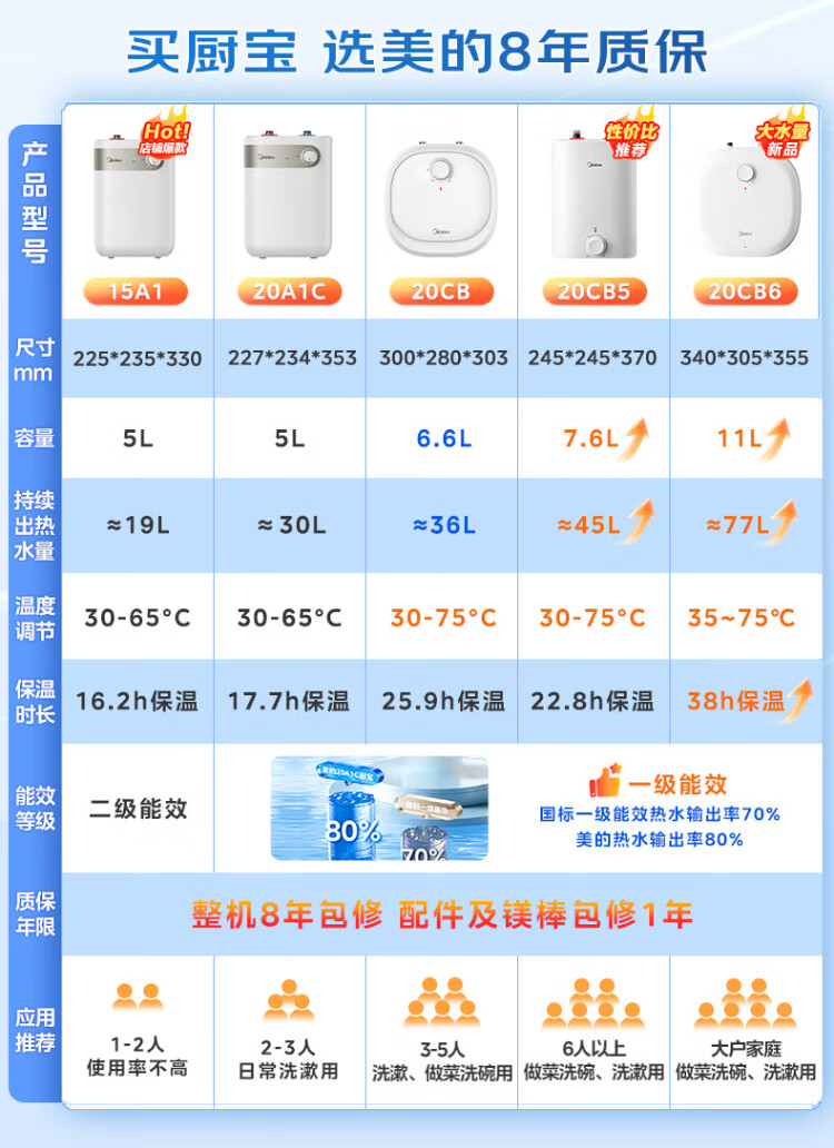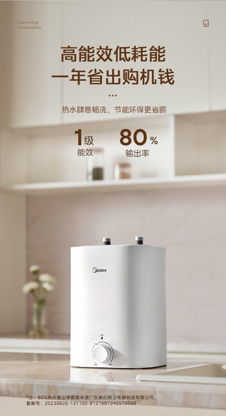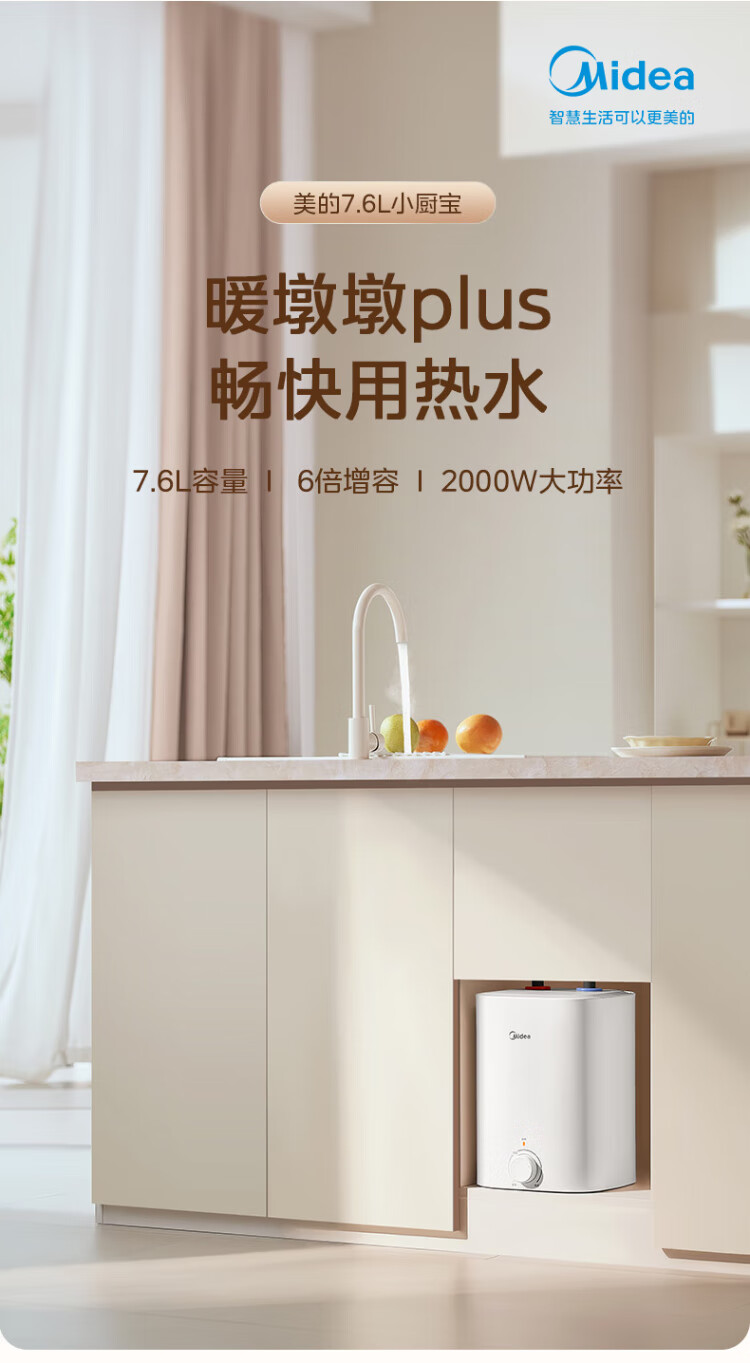 Midea 7.6-liter water storage type small kitchen treasure under-counter electric water heater household 45-liter first-class energy efficiency OCC2000W kitchen hot water treasure national subsidy F7.6-20CB5 (ES)
