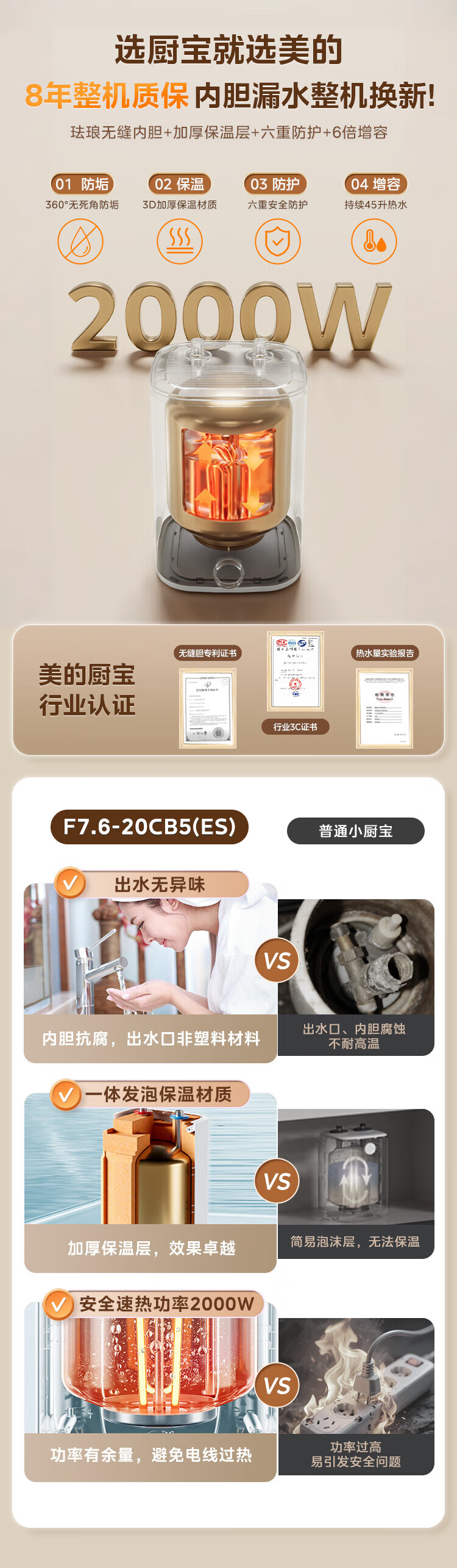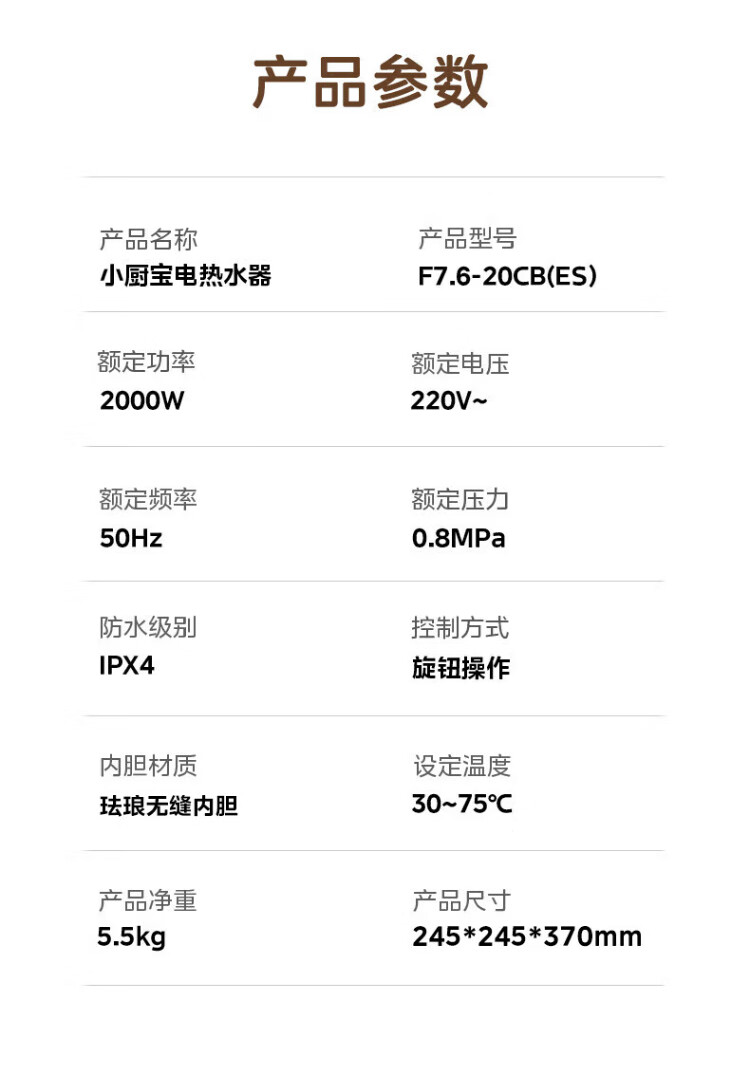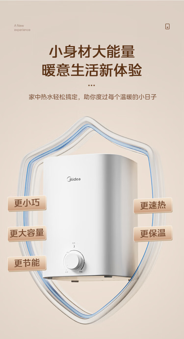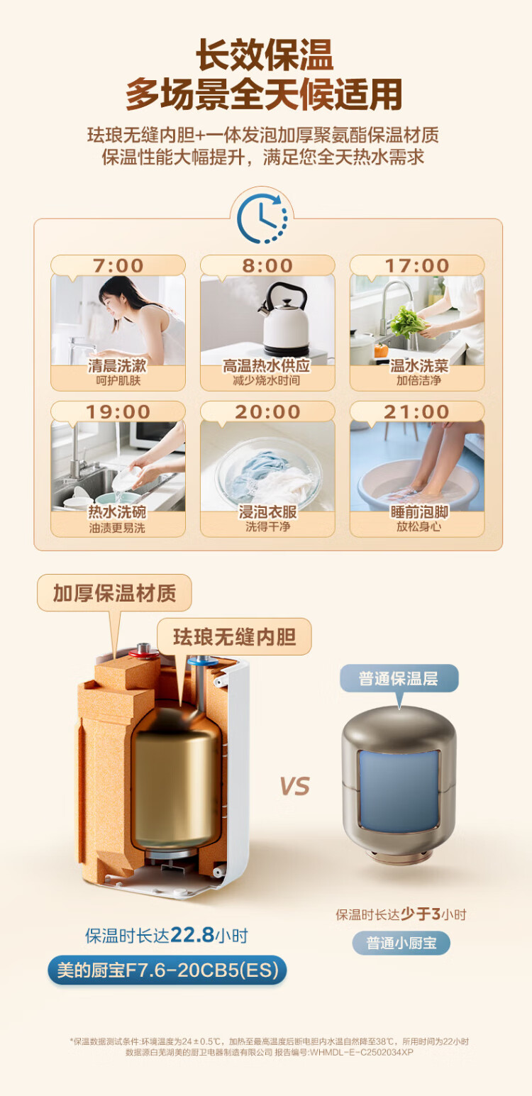 Midea 7.6-liter water storage type small kitchen treasure under-counter electric water heater household 45-liter first-class energy efficiency OCC2000W kitchen hot water treasure national subsidy F7.6-20CB5 (ES)