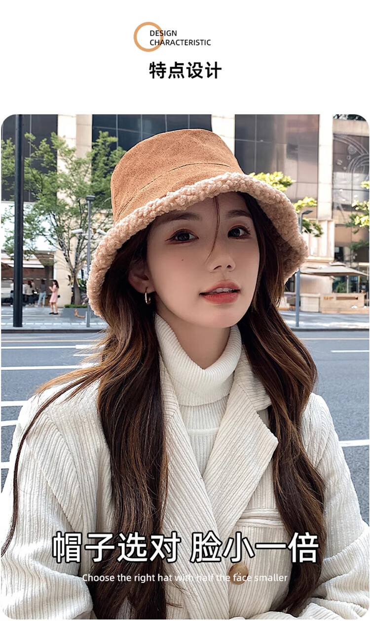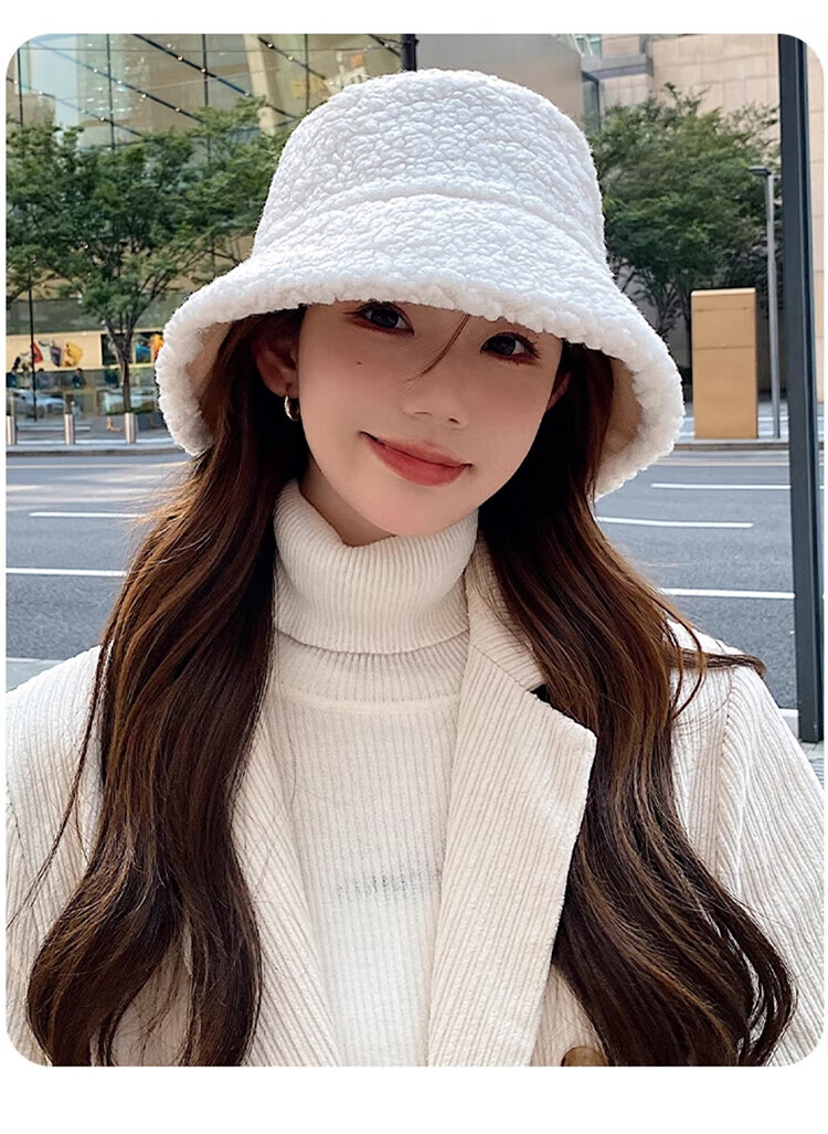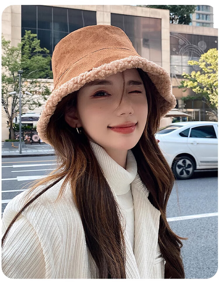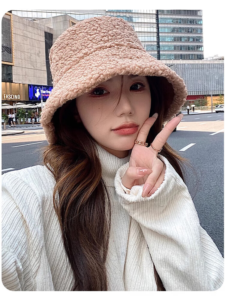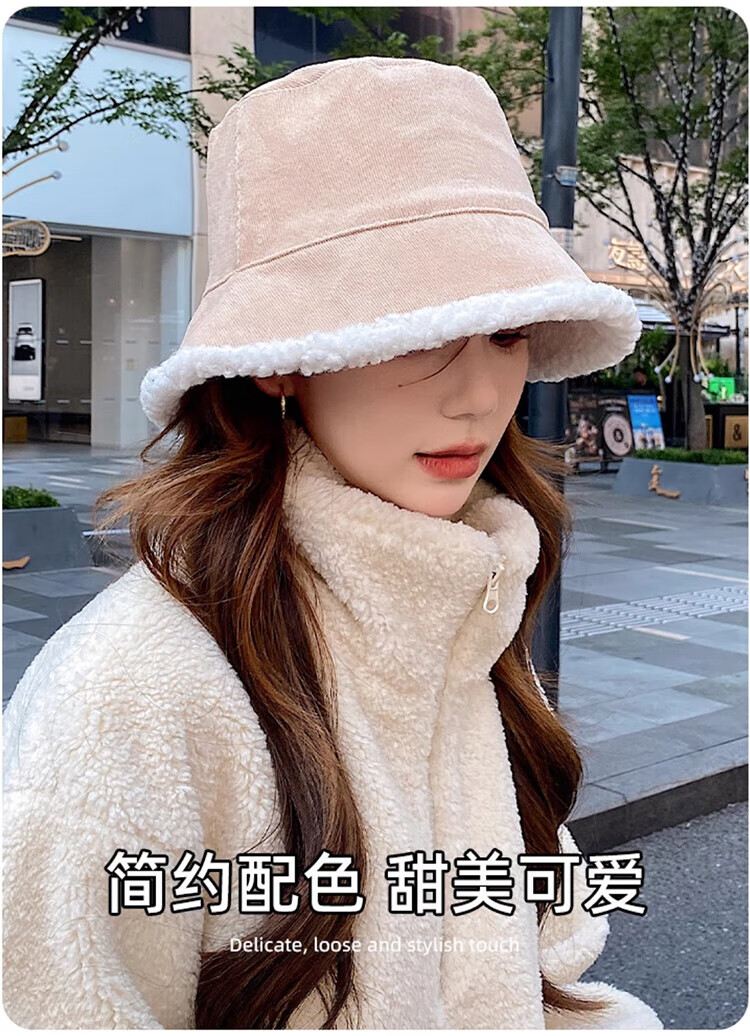 Yu Zhaolin double-sided fisherman's hat women's autumn and winter face-showing small bucket hat warm woolen hat lamb wool basin hat