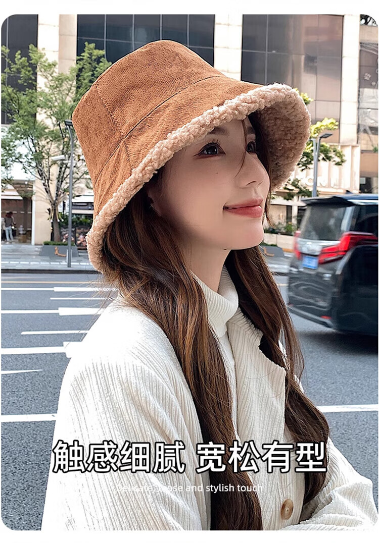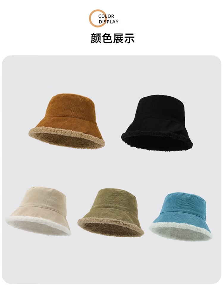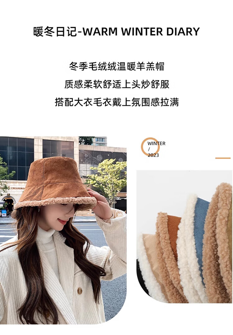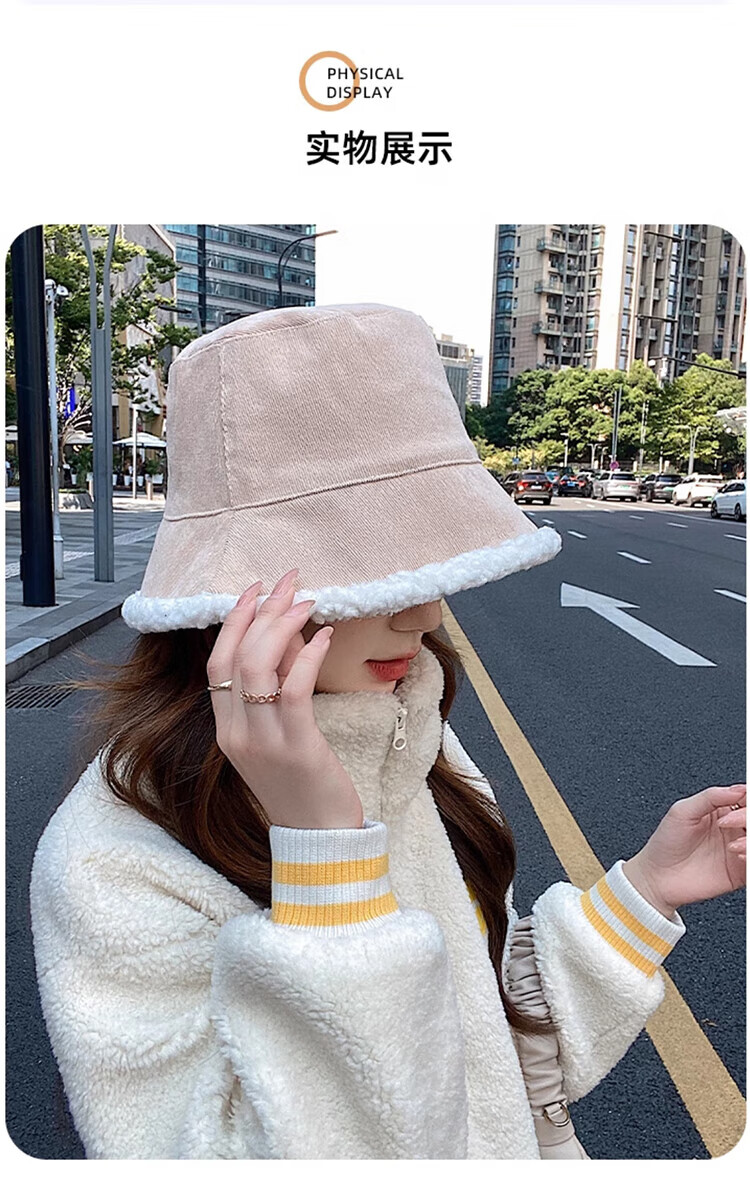 Yu Zhaolin double-sided fisherman's hat women's autumn and winter face-showing small bucket hat warm woolen hat lamb wool basin hat
